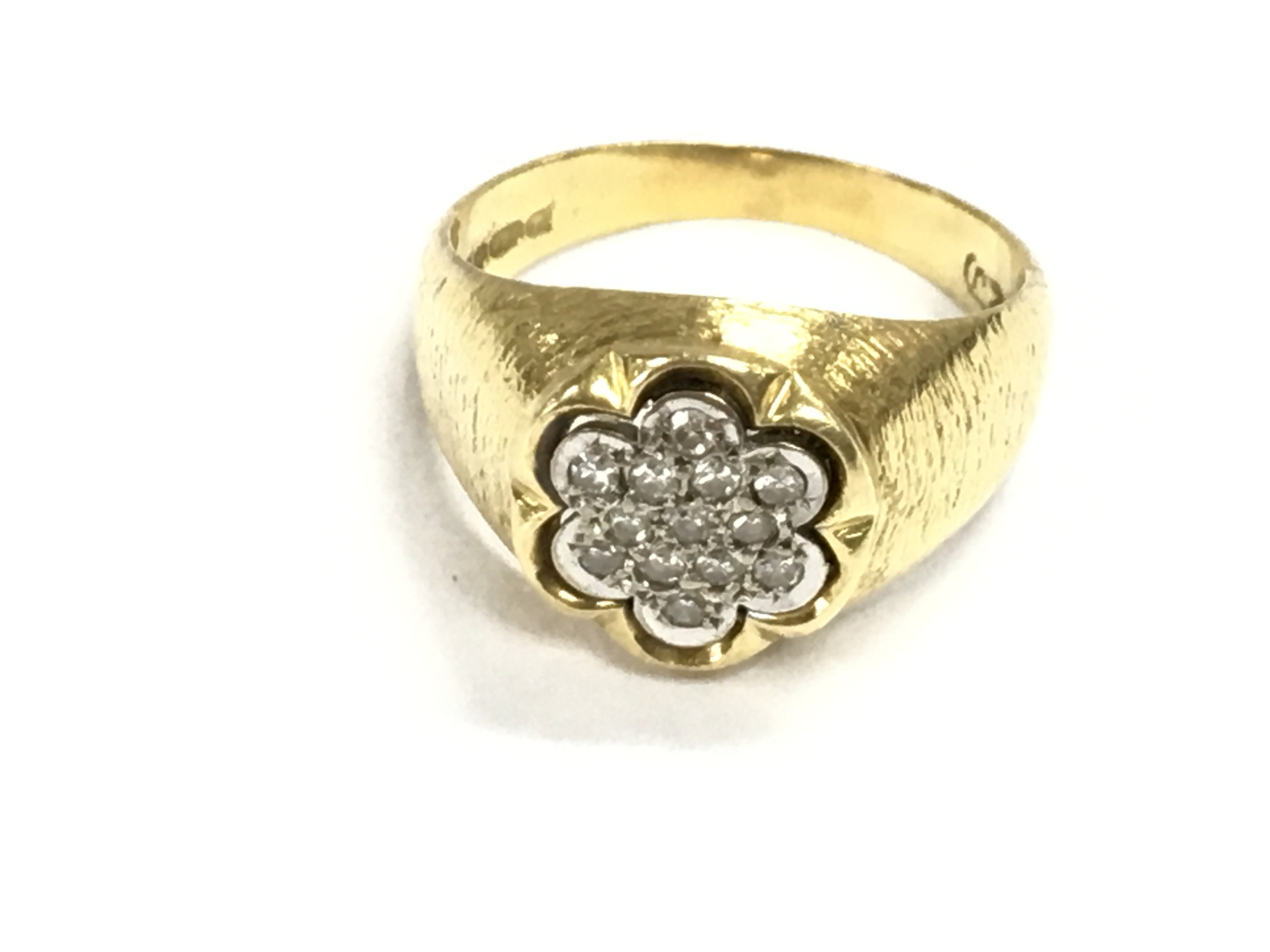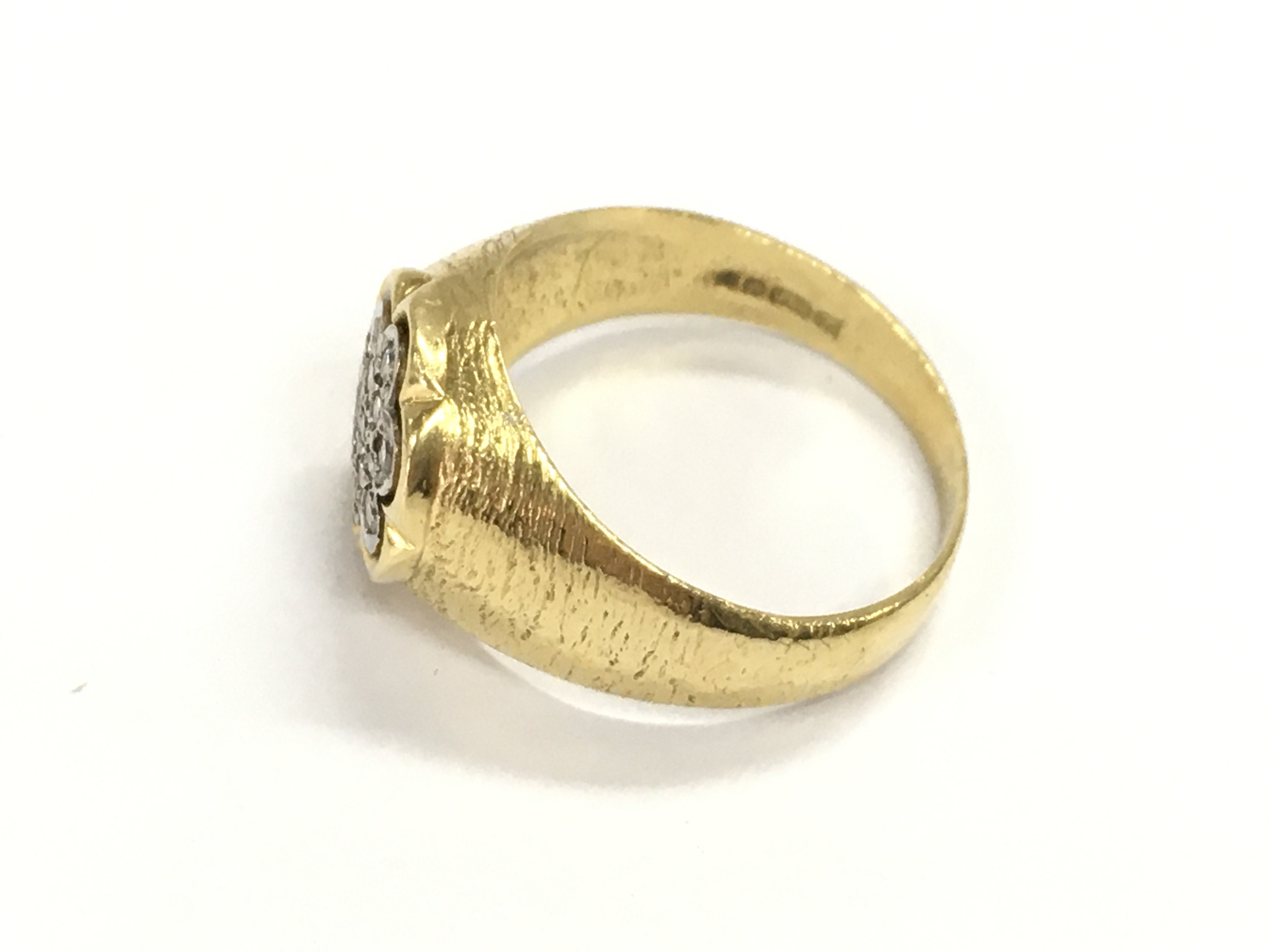 An 18ct gold ring set with diamonds. Size Q and 6.52g Postage A