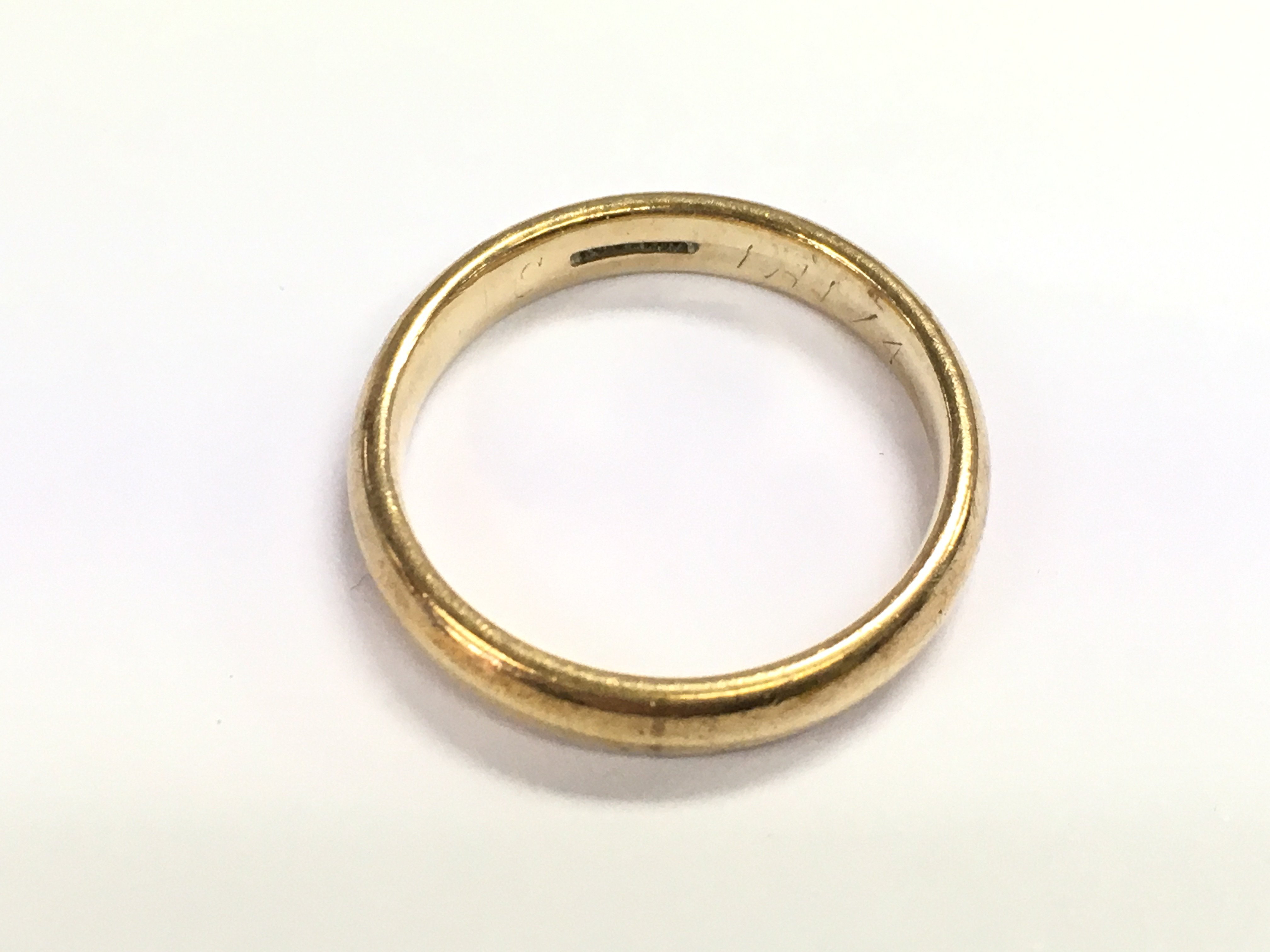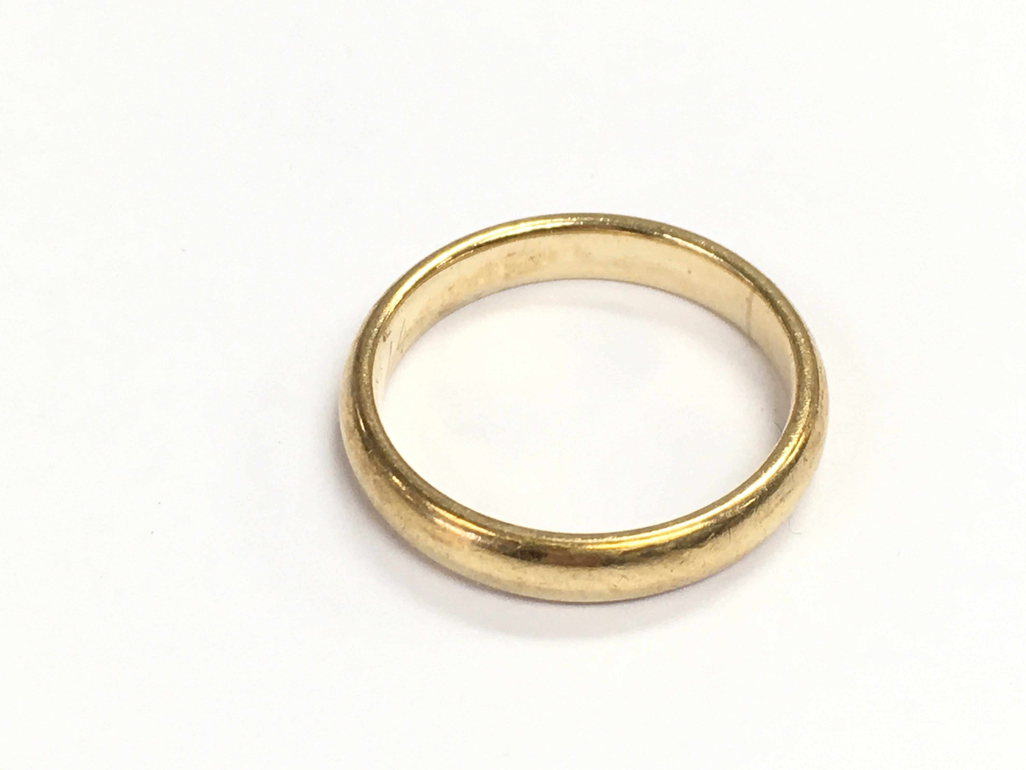 A gold wedding band. Size R 1/2 and 4.68g Postage A
