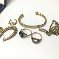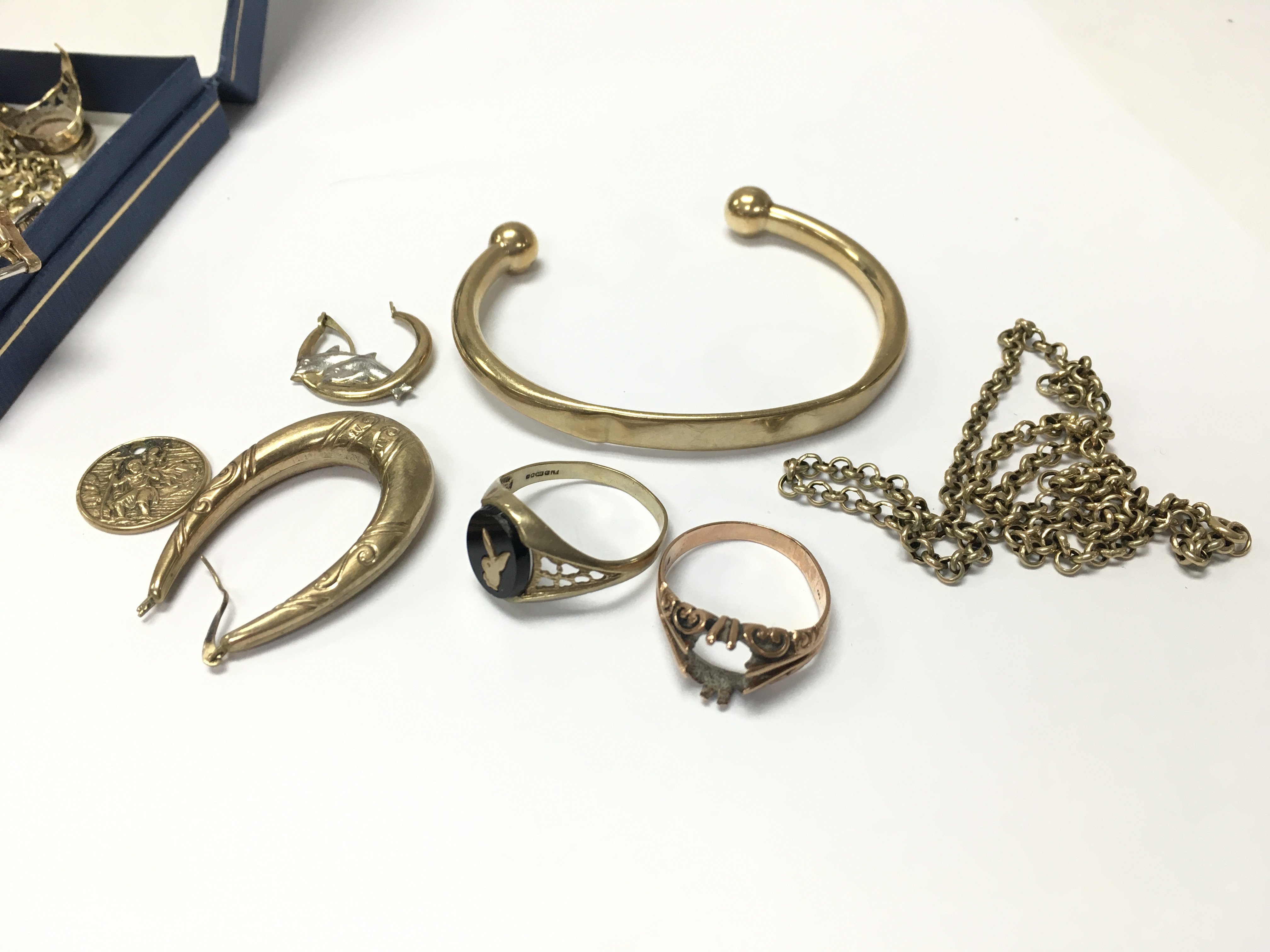 A collection of mixed gold jewellery including bangle, rings etc. total weight approximately 37g. Postage category A