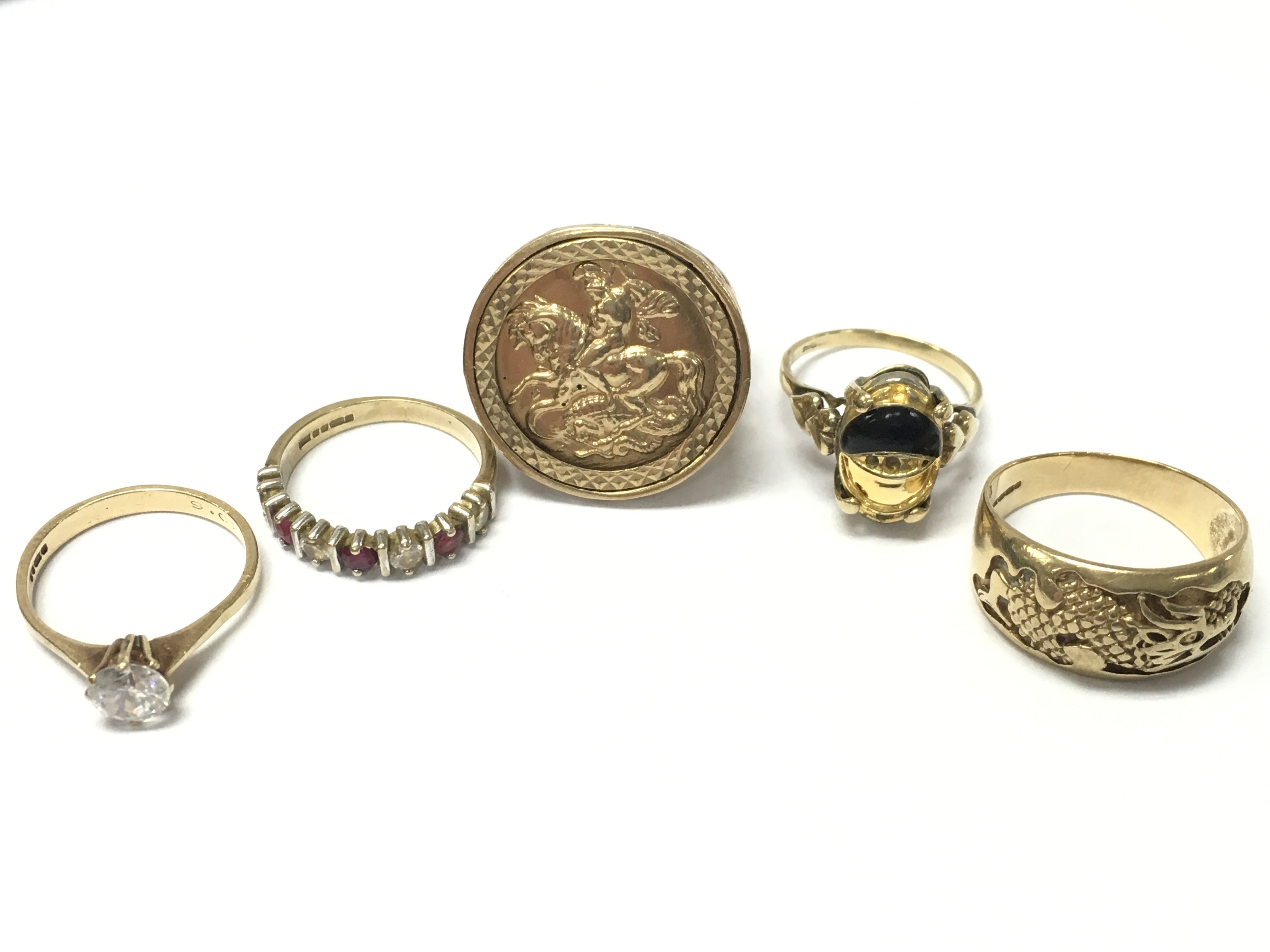 Five 9ct gold rings , total weight 24.5g. Postage cat A