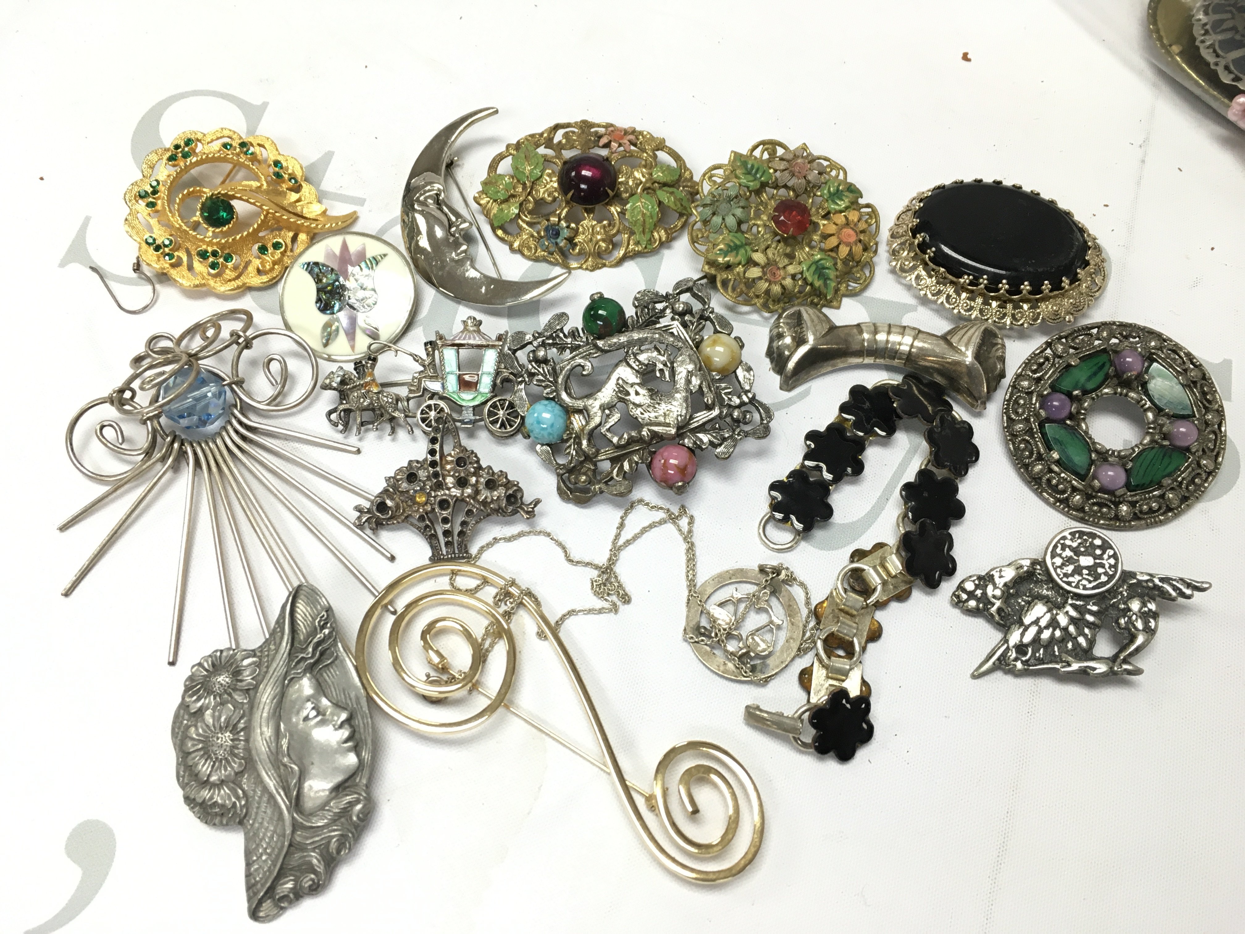 A collection of costume jewellery including necklaces, brooches. Postage category B