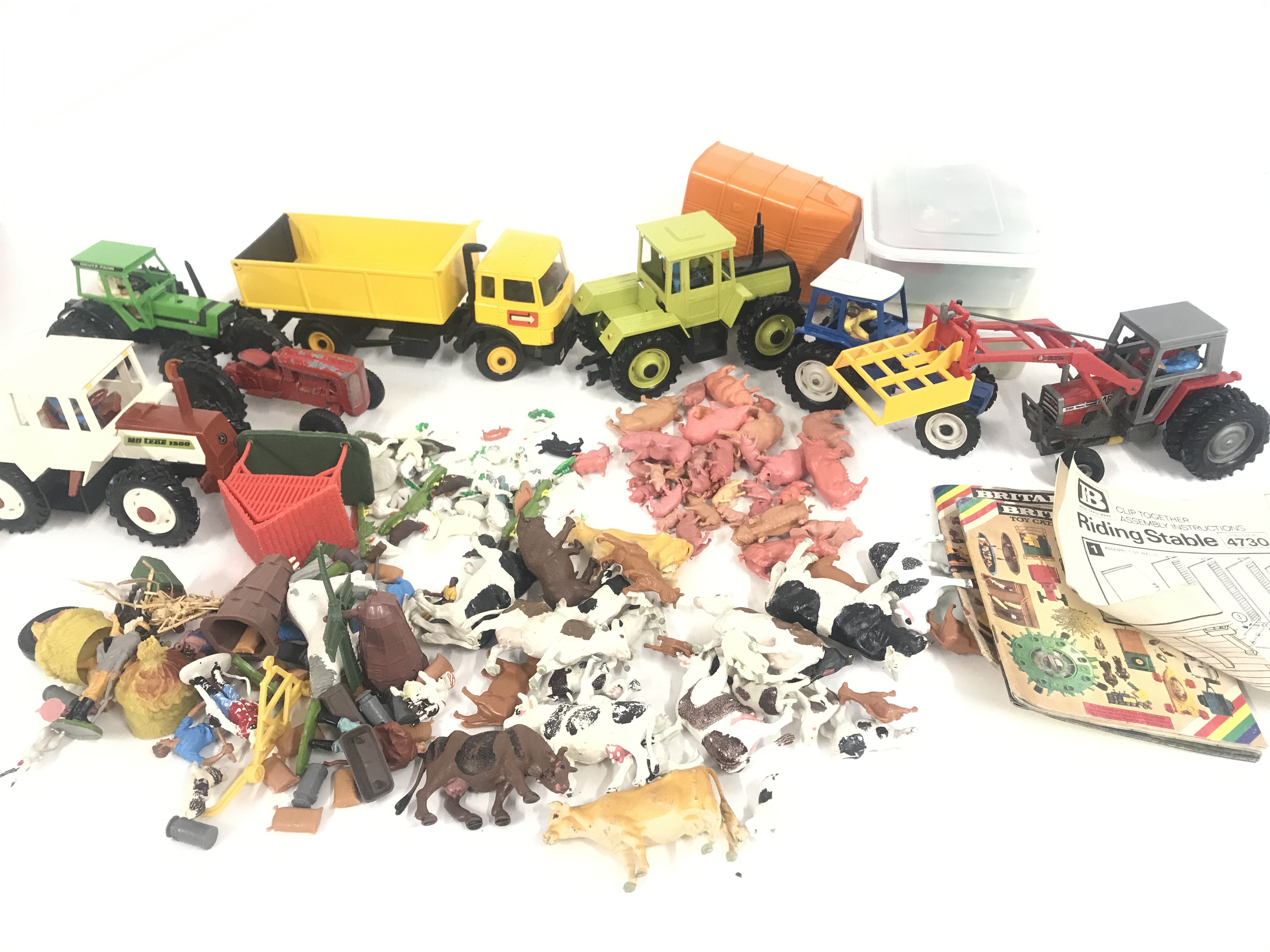 A Box Containing a Large Collection of Britains Farm Buildings. Vehicles. And accessories. No Reserve. (2).