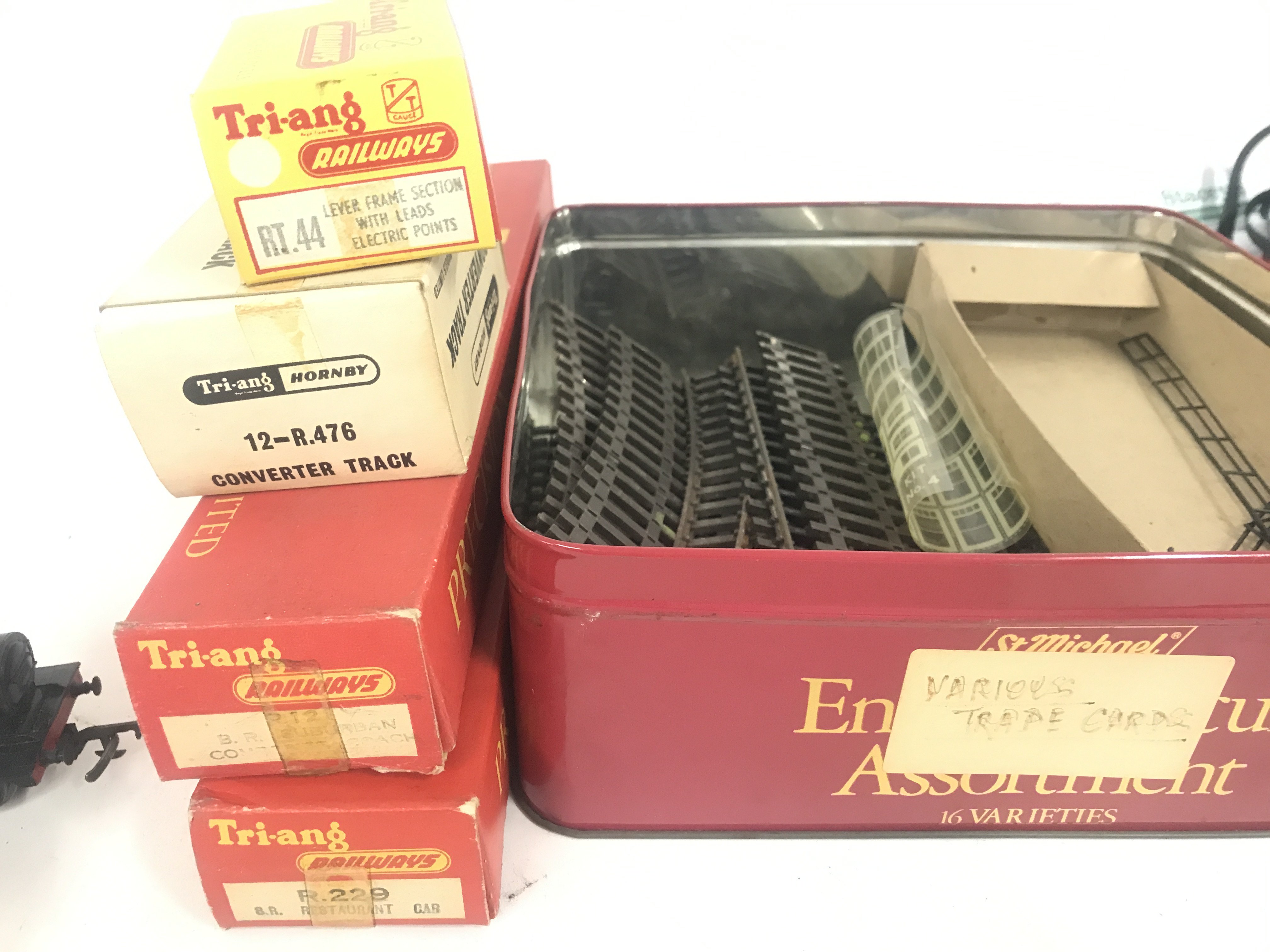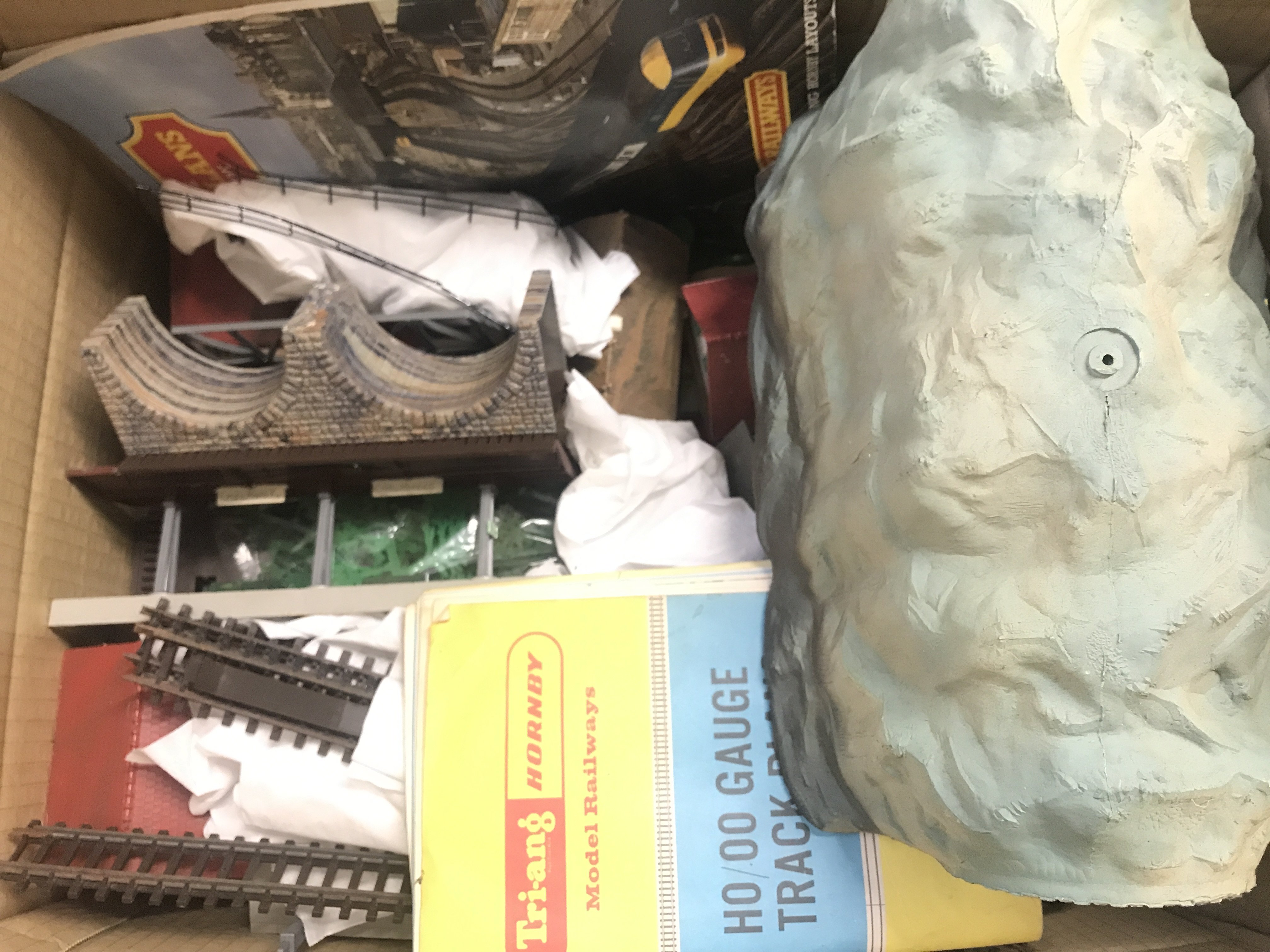 A Small Collection of 00 Gauge Track. Wagons. 2 Electric Locomotives a Clockwork Goods Train A/F. Buildings Accessories Etc.(2).