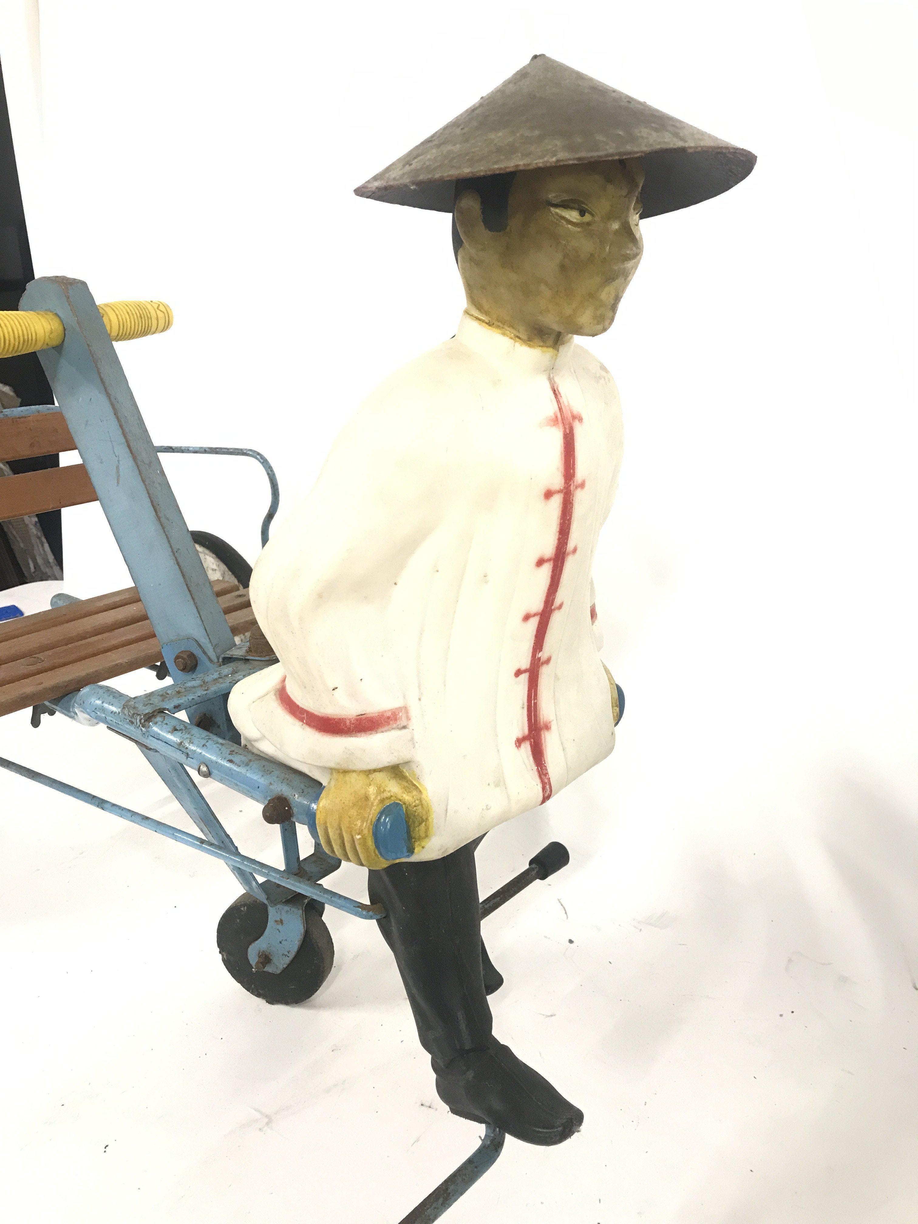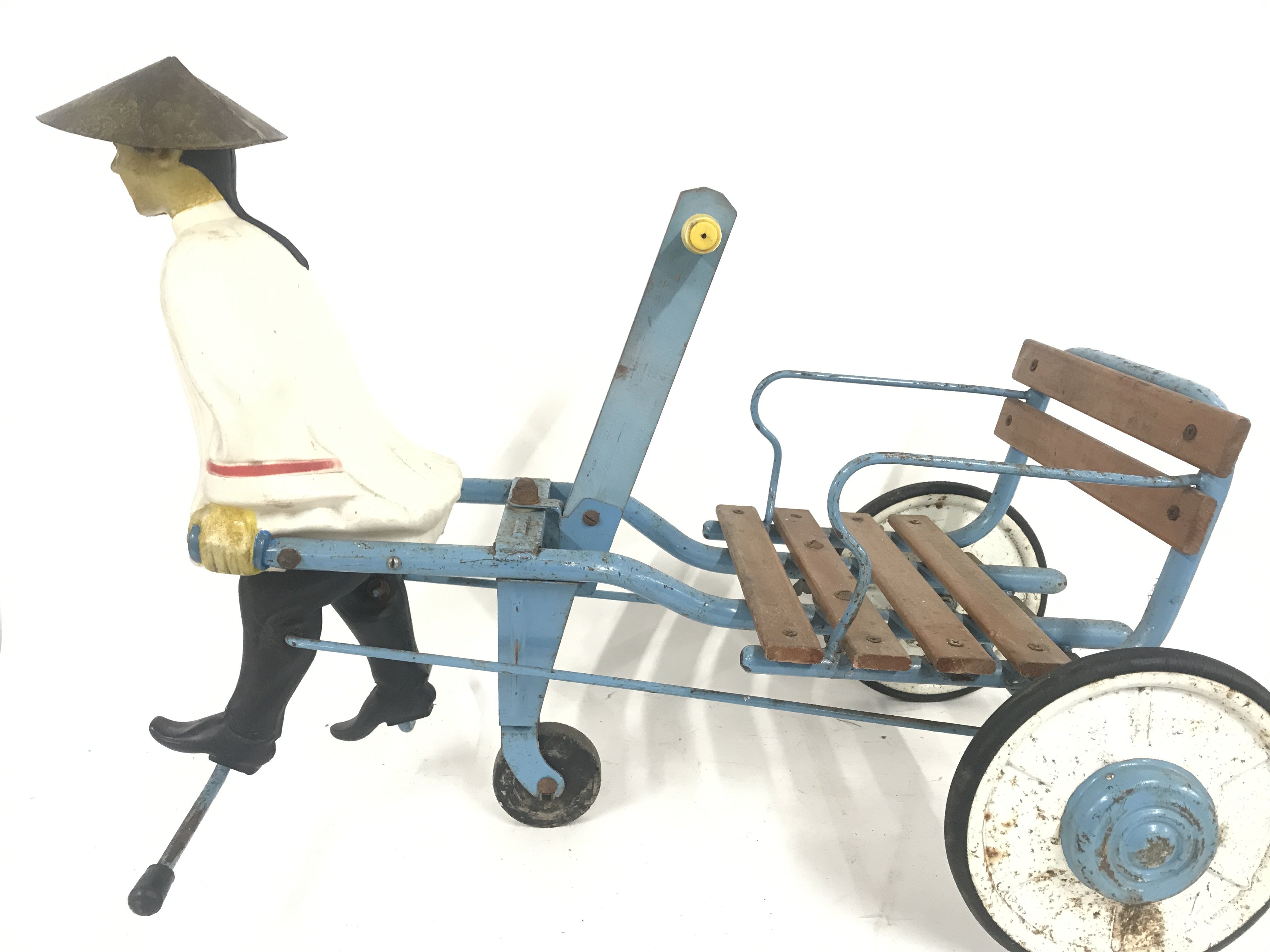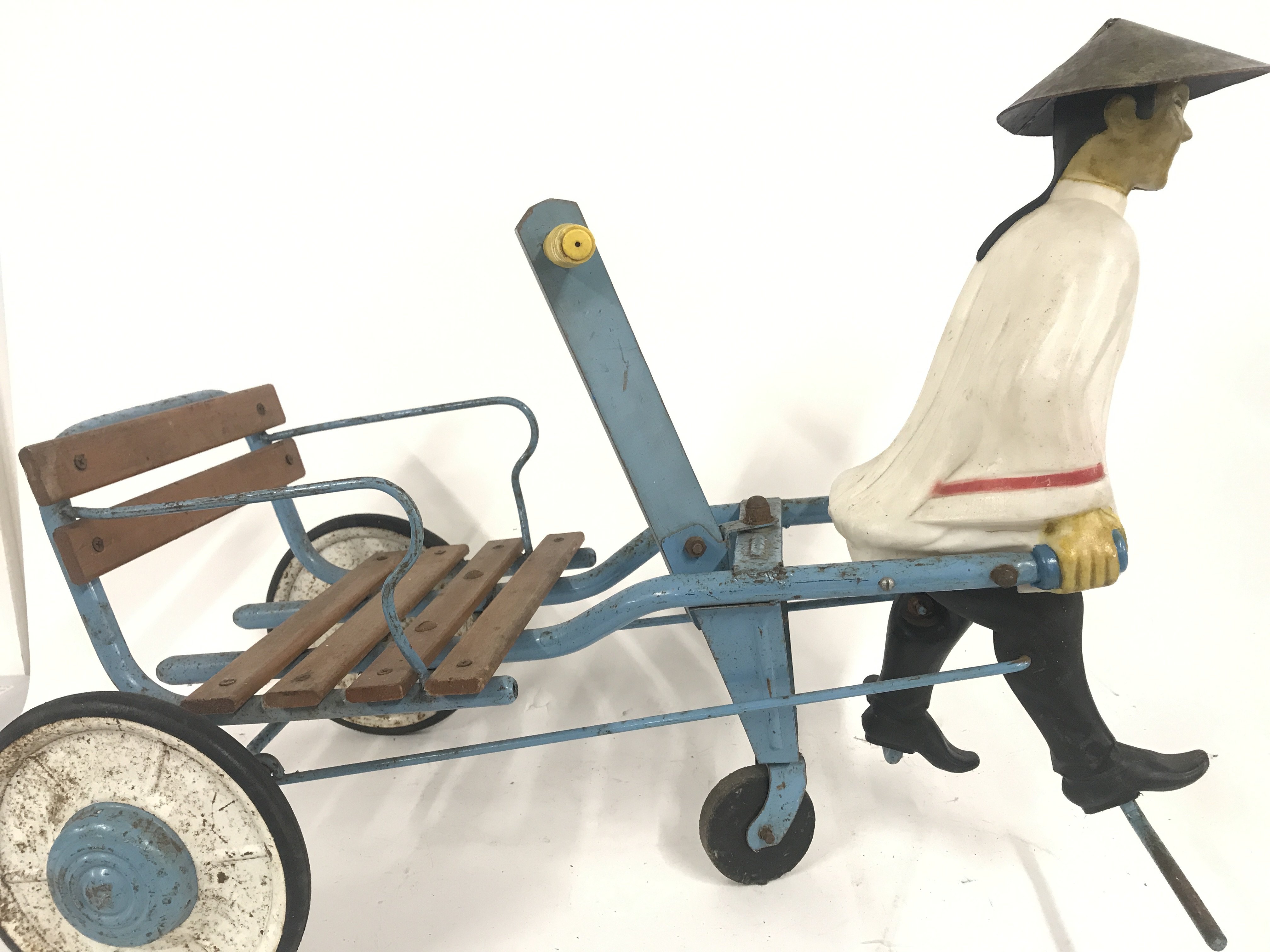 A Rare 1950s Childs Ride On Chinese Rickshaw. With Walking Chinese Figure.