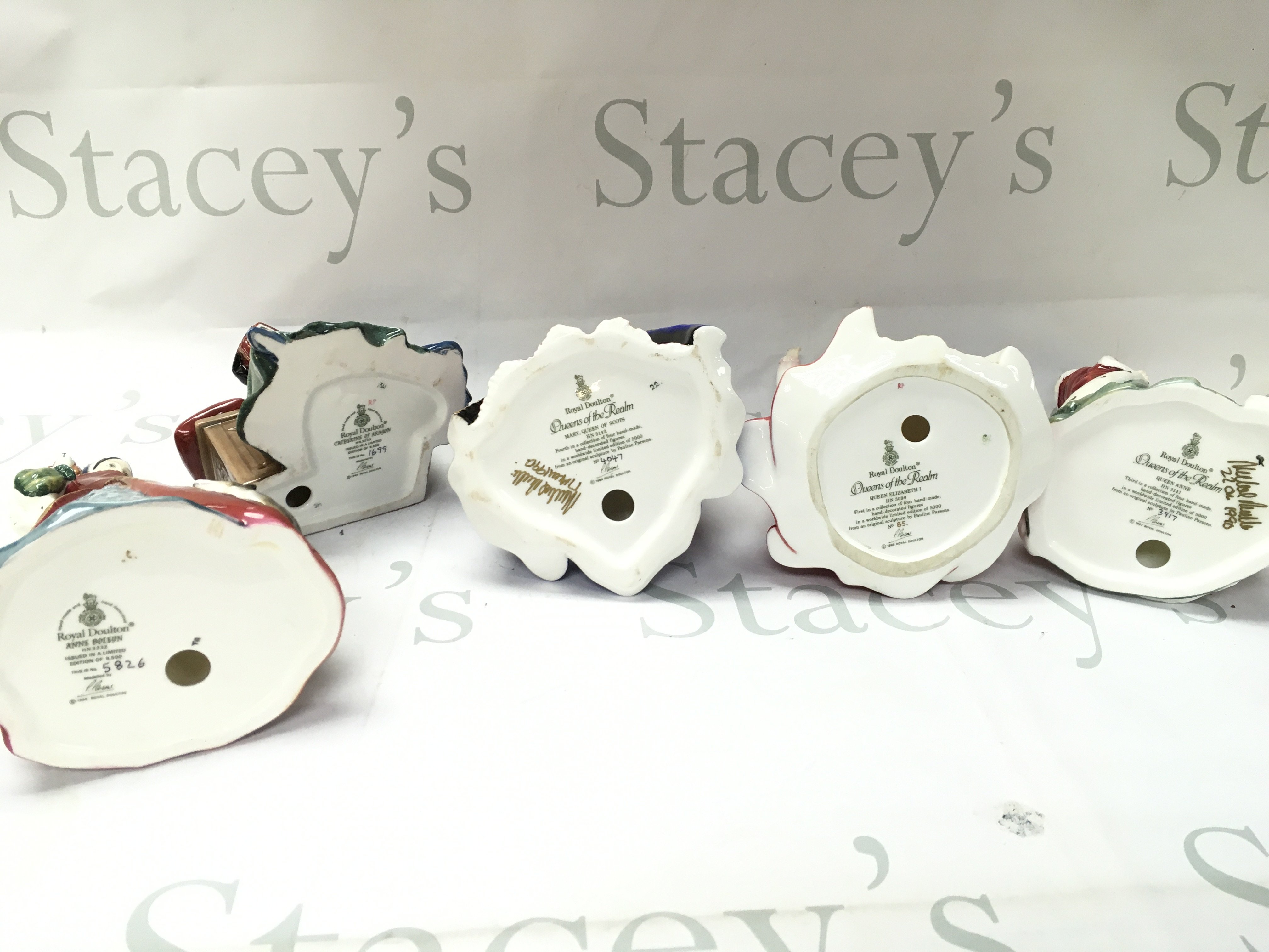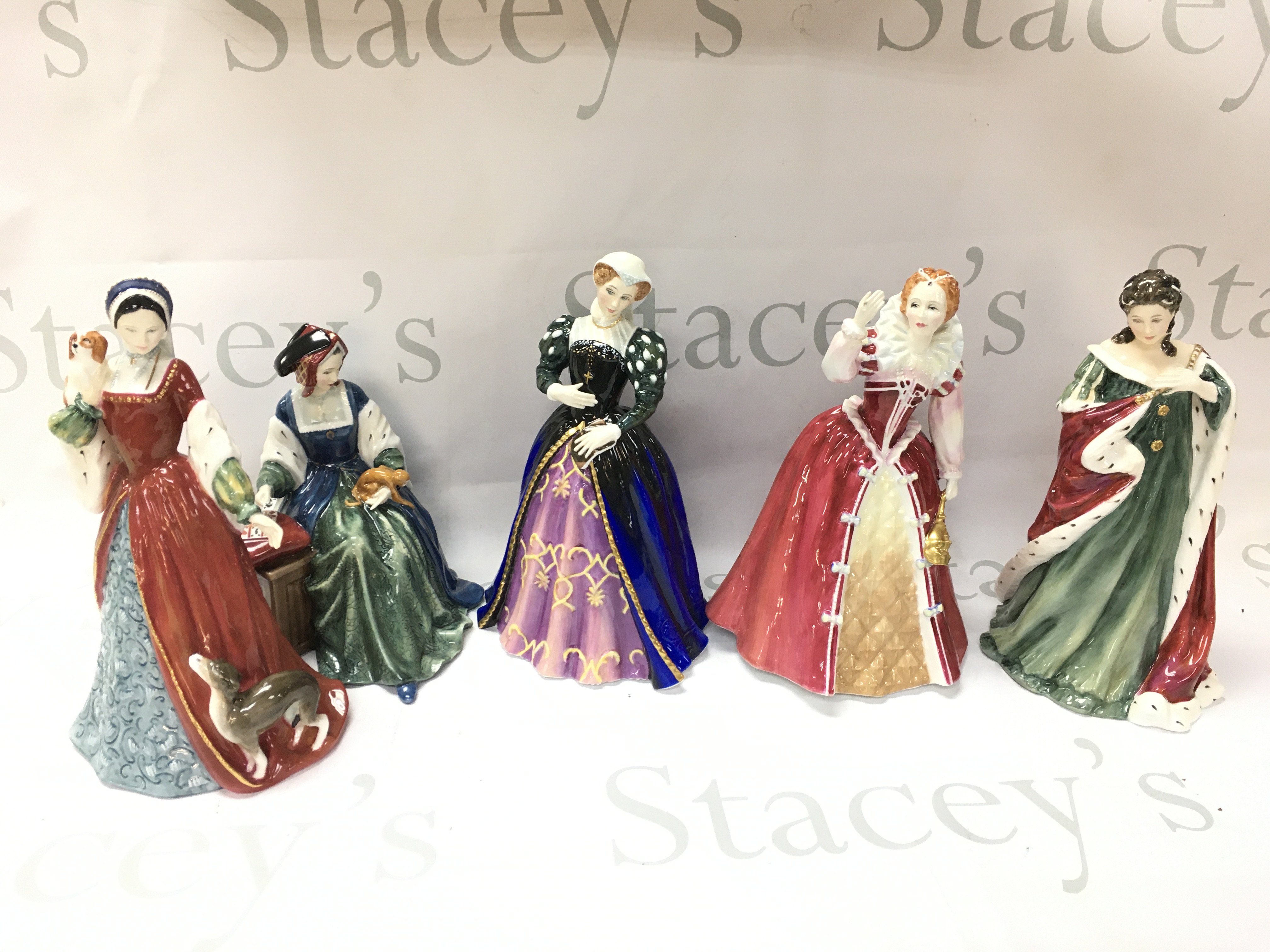 Royal Doulton porcelain figures including Queens of the realm Mary Queens of scots, Queen Elizabeth I, Queen Anne etc. no obvious damage or restoration.This is lot cannot be posted