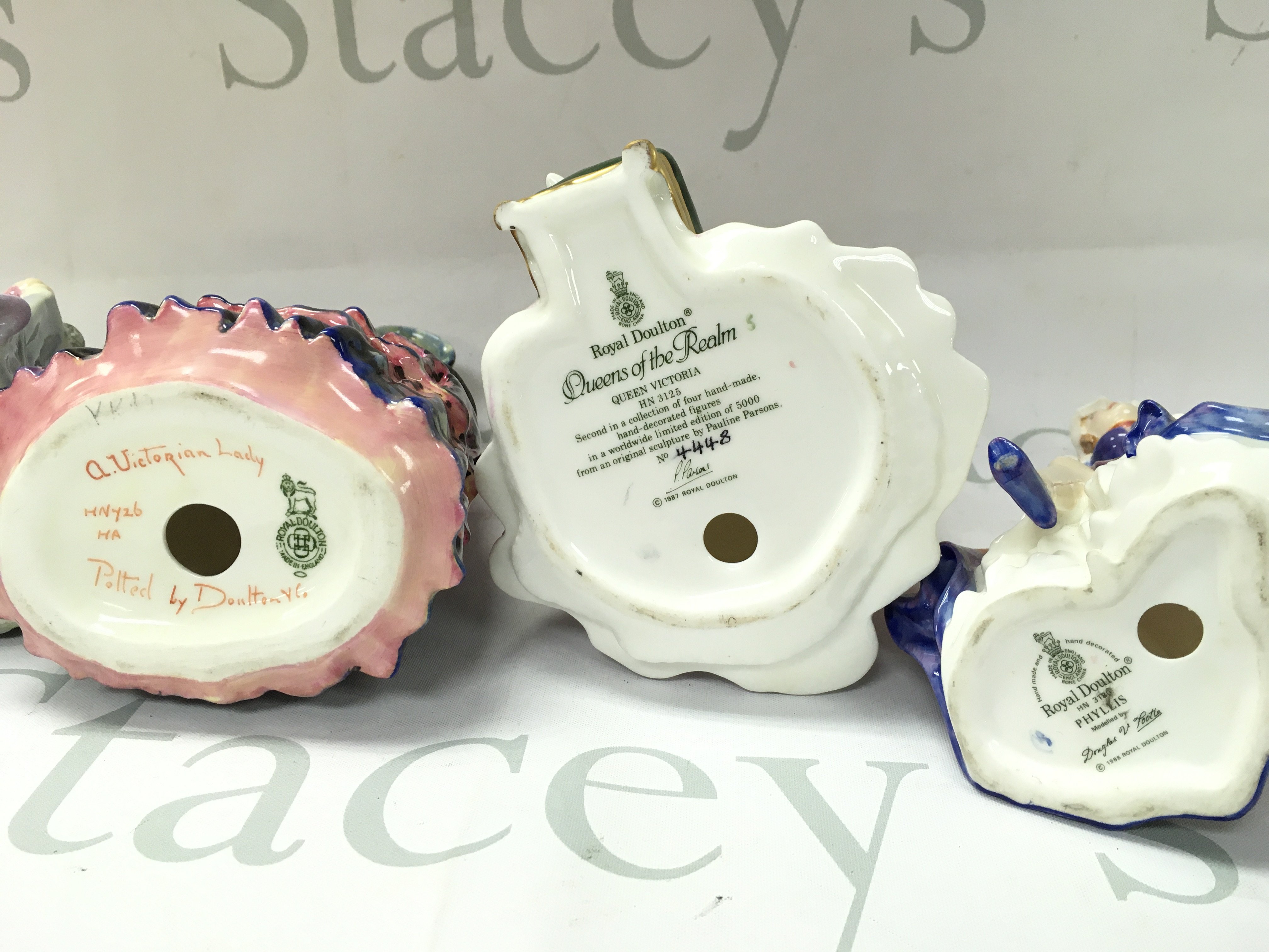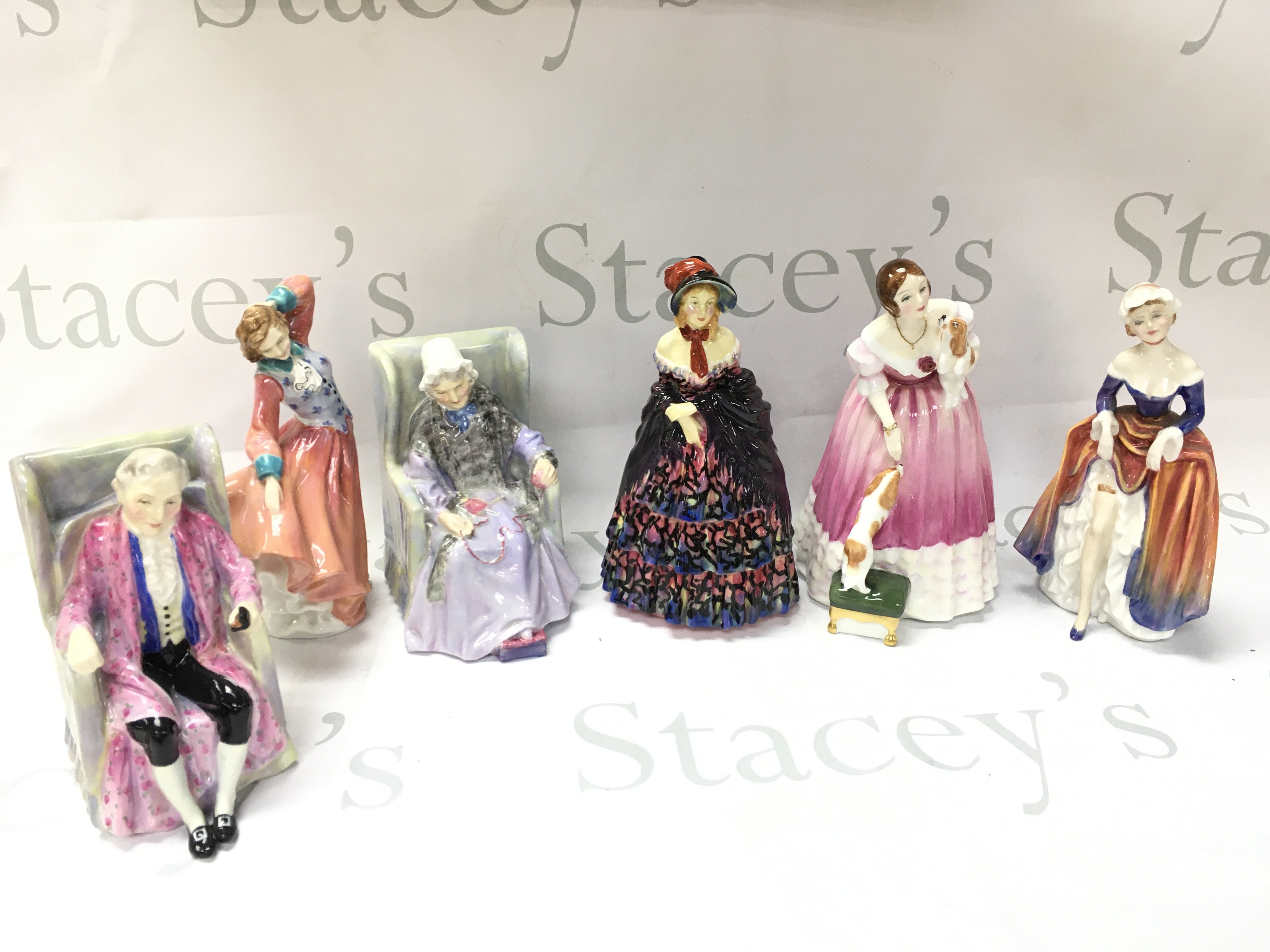 Royal Doulton porcelain figures including Queen Victoria, Victorian lady, Joan, Judith etc . This lot cannot be posted. No obvious damage or restoration