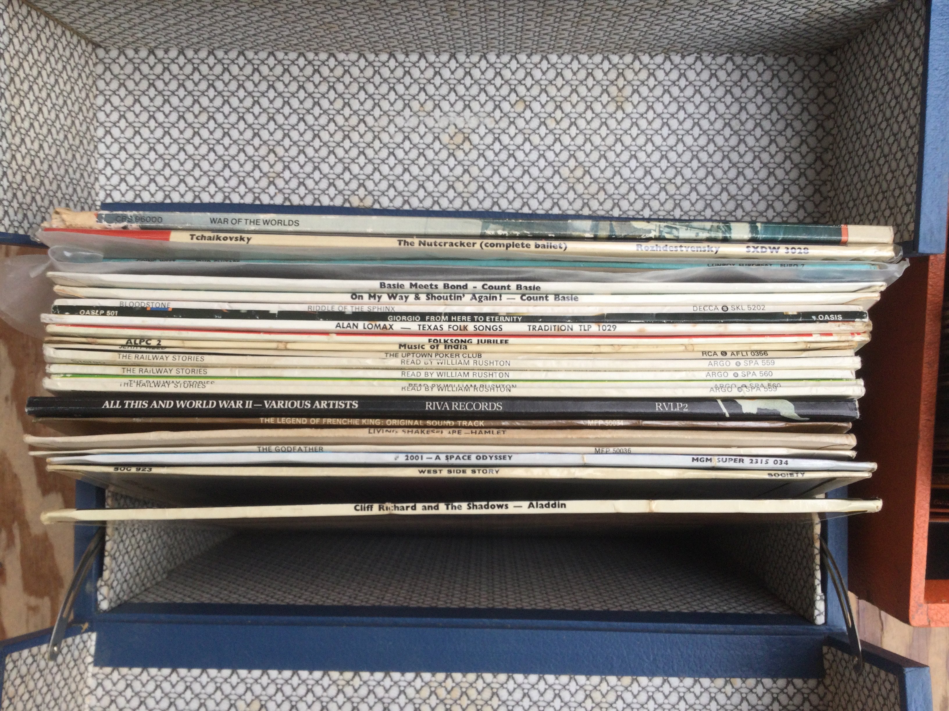 Two record cases of LPs by various artists including Elvis Presley, Oscar Peterson and others.