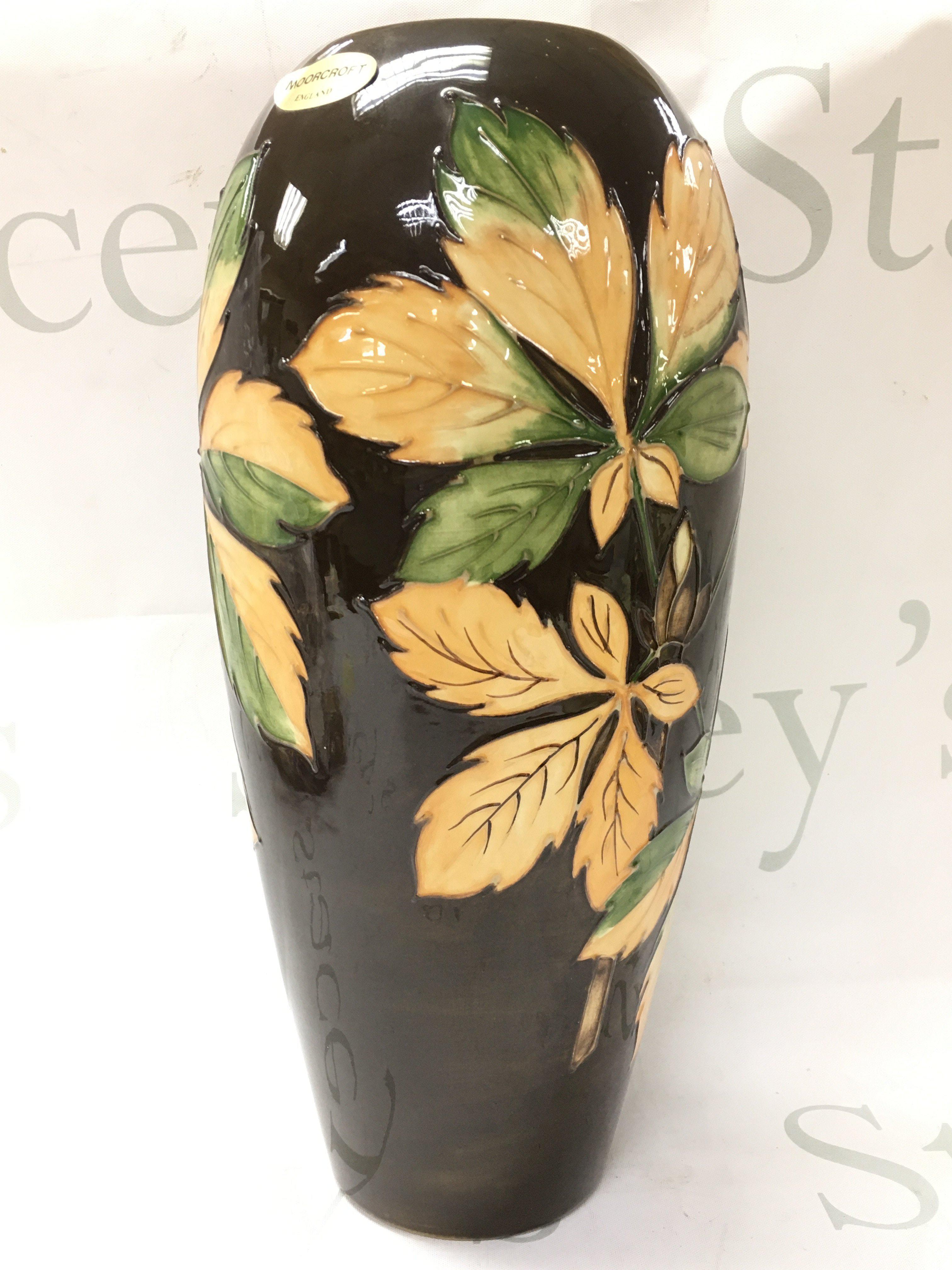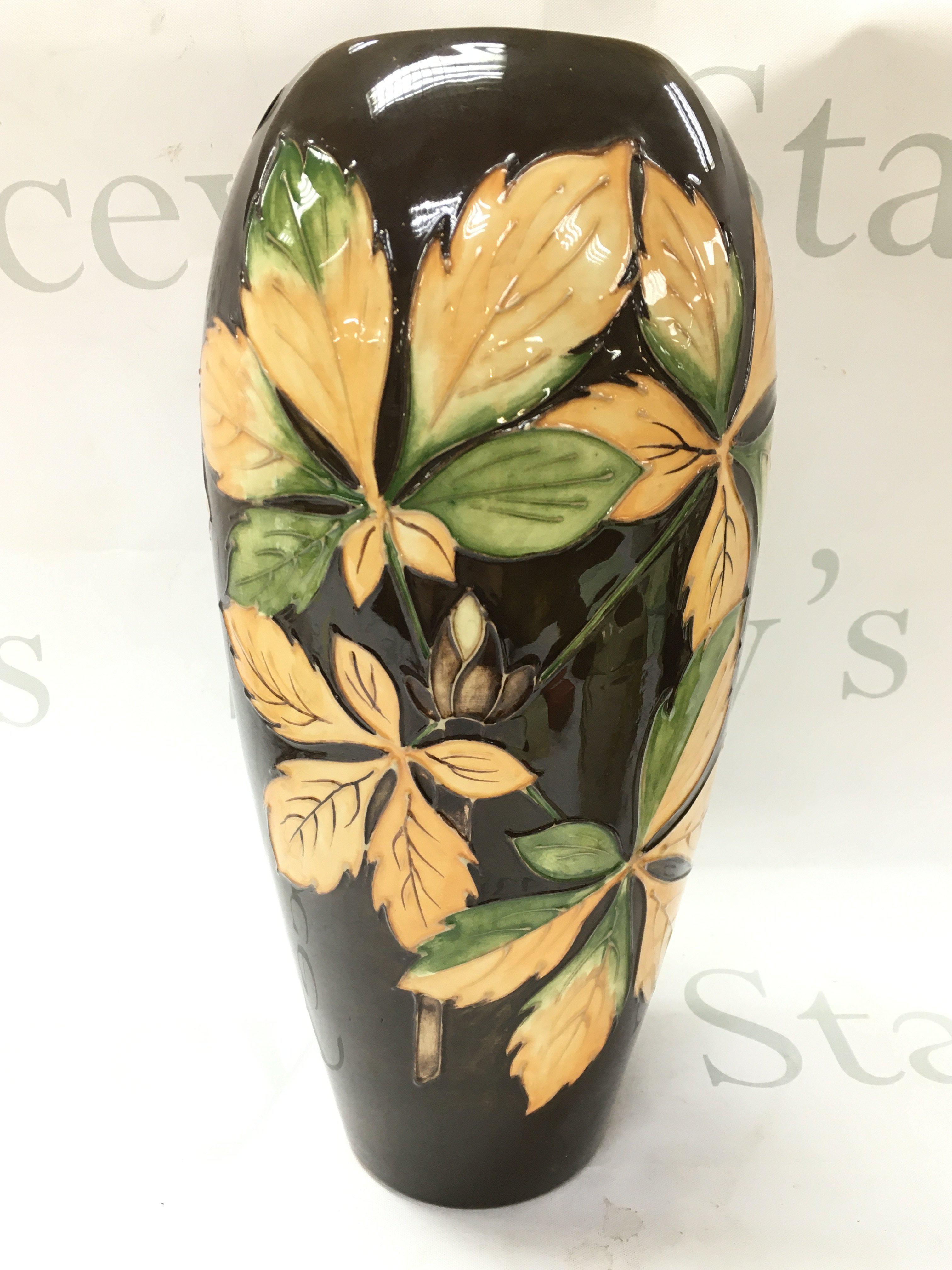 A Moorcroft chestnut leaves vase , 31cm tall. This lot cannot be posted, no obvious damage or restoration