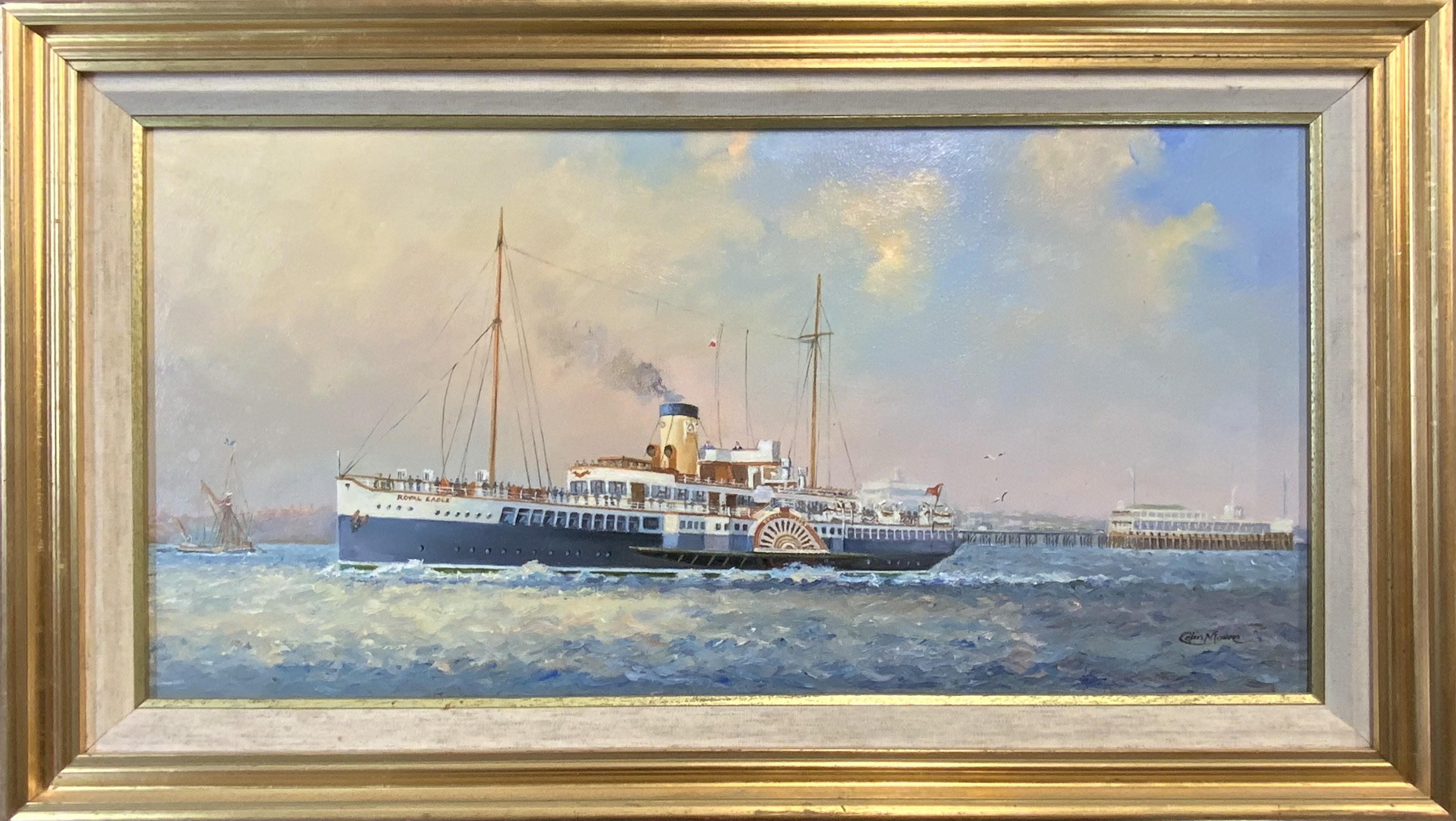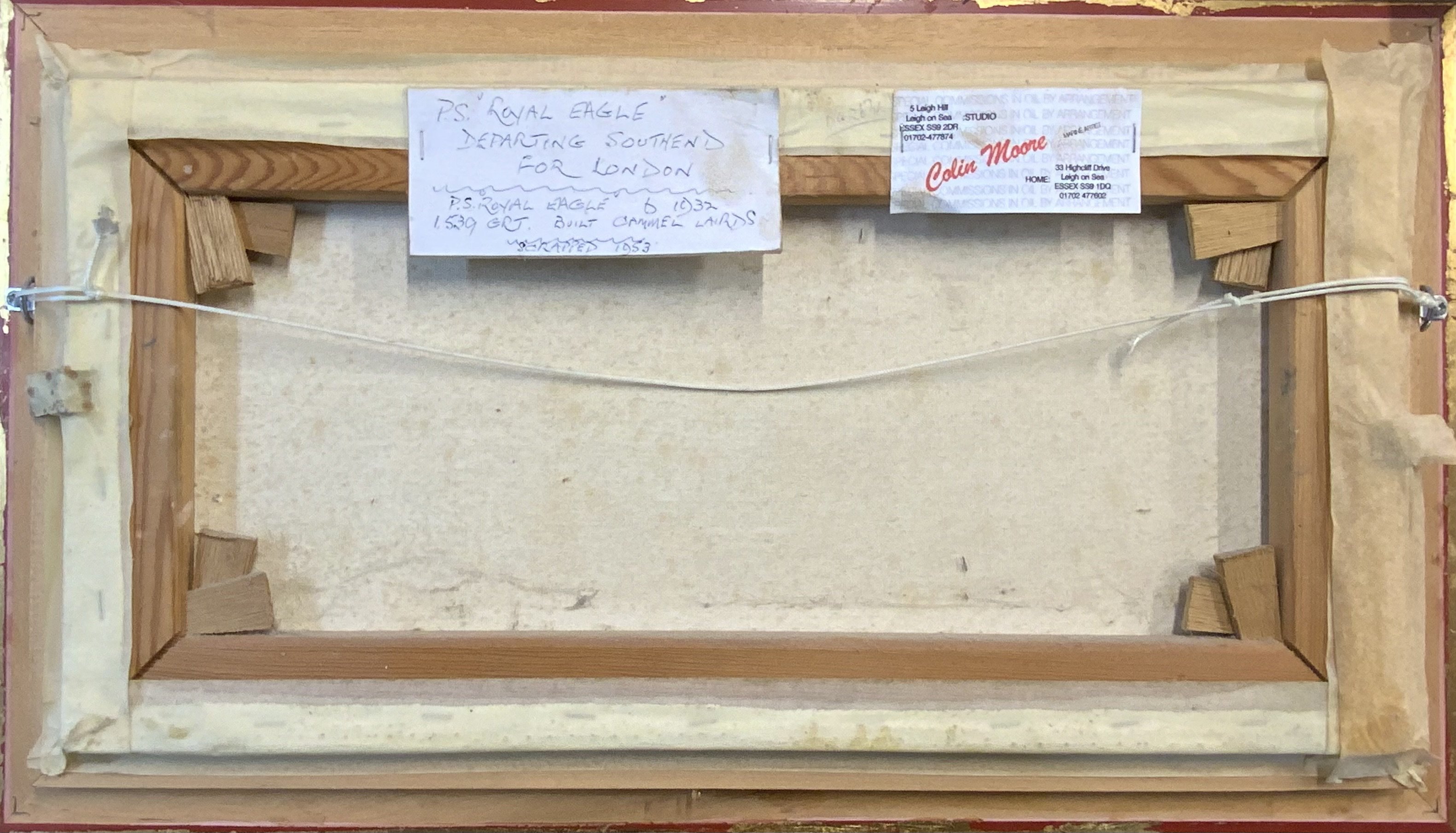 Colin Moore, oil on canvas titled Royal Eagle, Departing Southend for London. 60cm x 34.5cm (D)