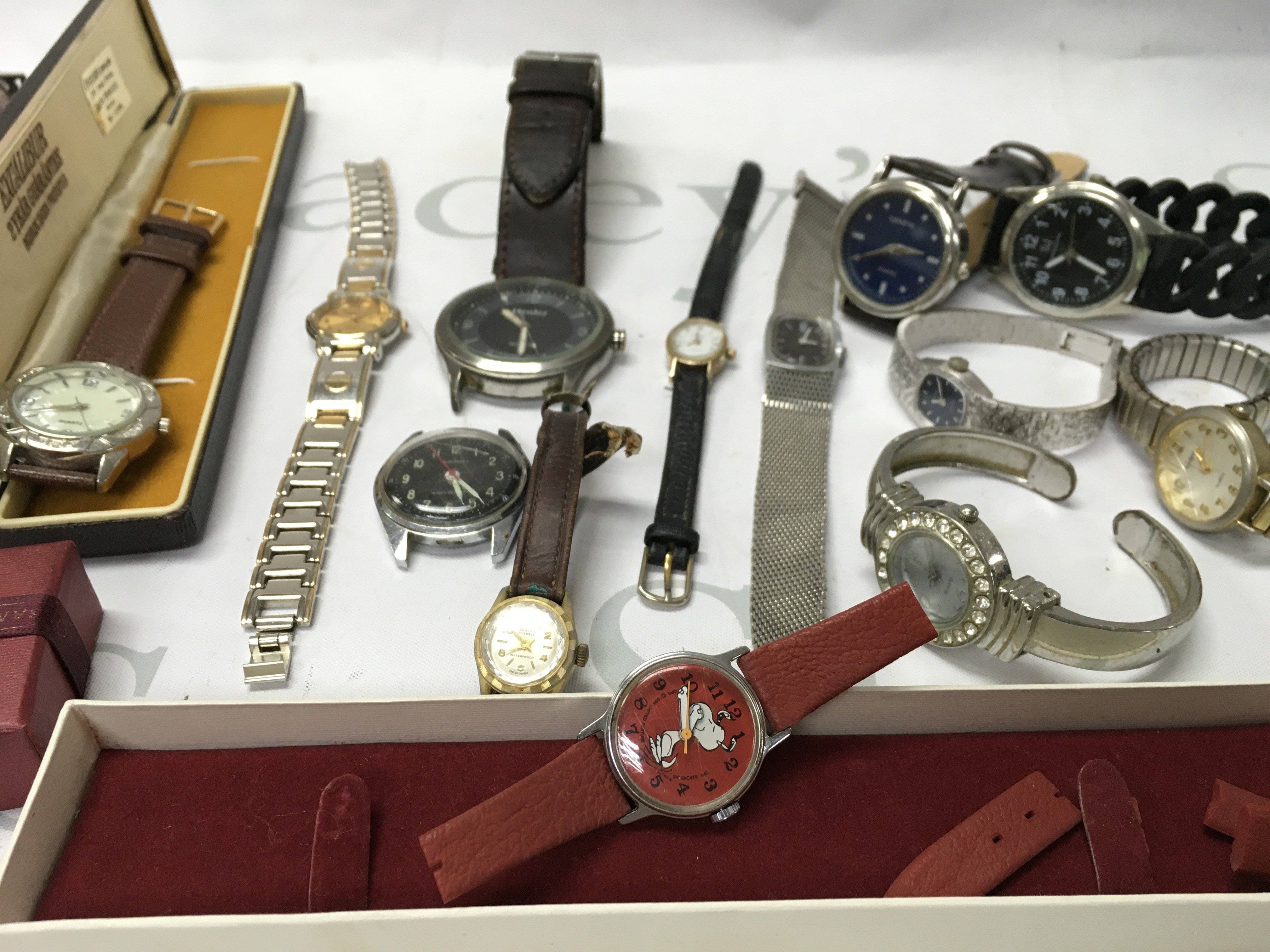 A collection of watches including Accurist, Citizen, Lorus, Ingersoll, Rotary, Vintage Wind Up Snoopy 1958 United Feature Syndicate Watch. Postage category B