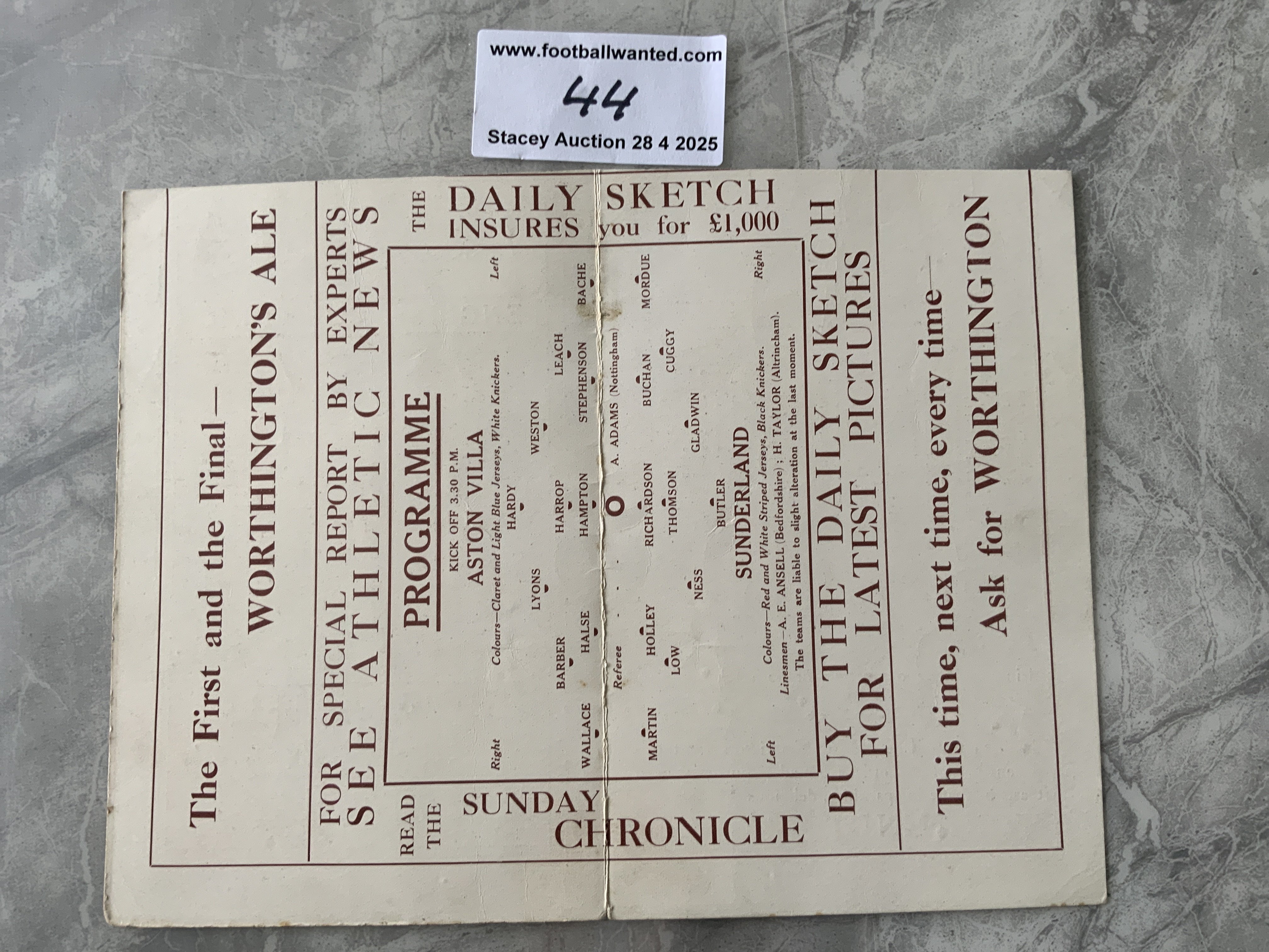 1913 FA Cup Final Football Programme: Aston Villa v Sunderland played at Crystal Palace. Four page one penny card has no team changes and is in good condition. Possible slight trim at top border. Please note there are two versions of this FA Cup final and this is the one produced by WH Smith.
