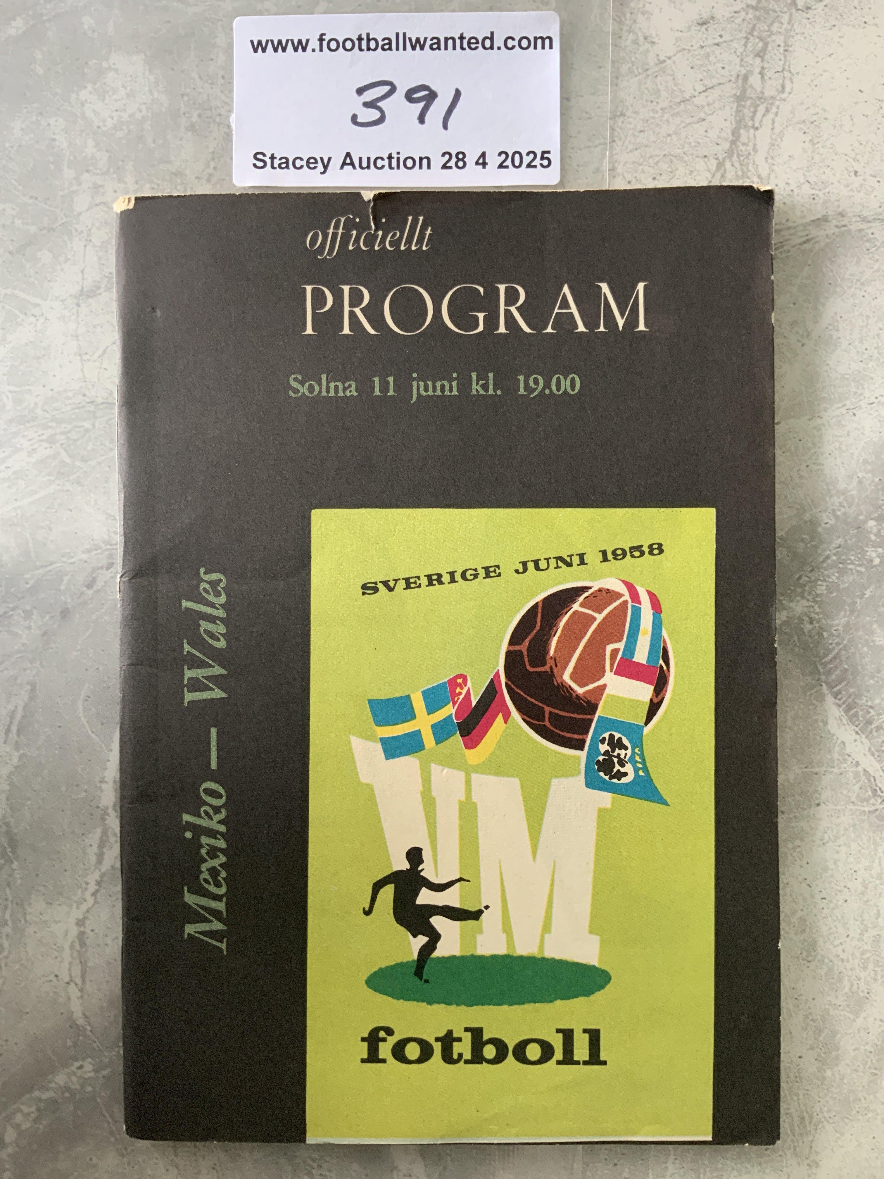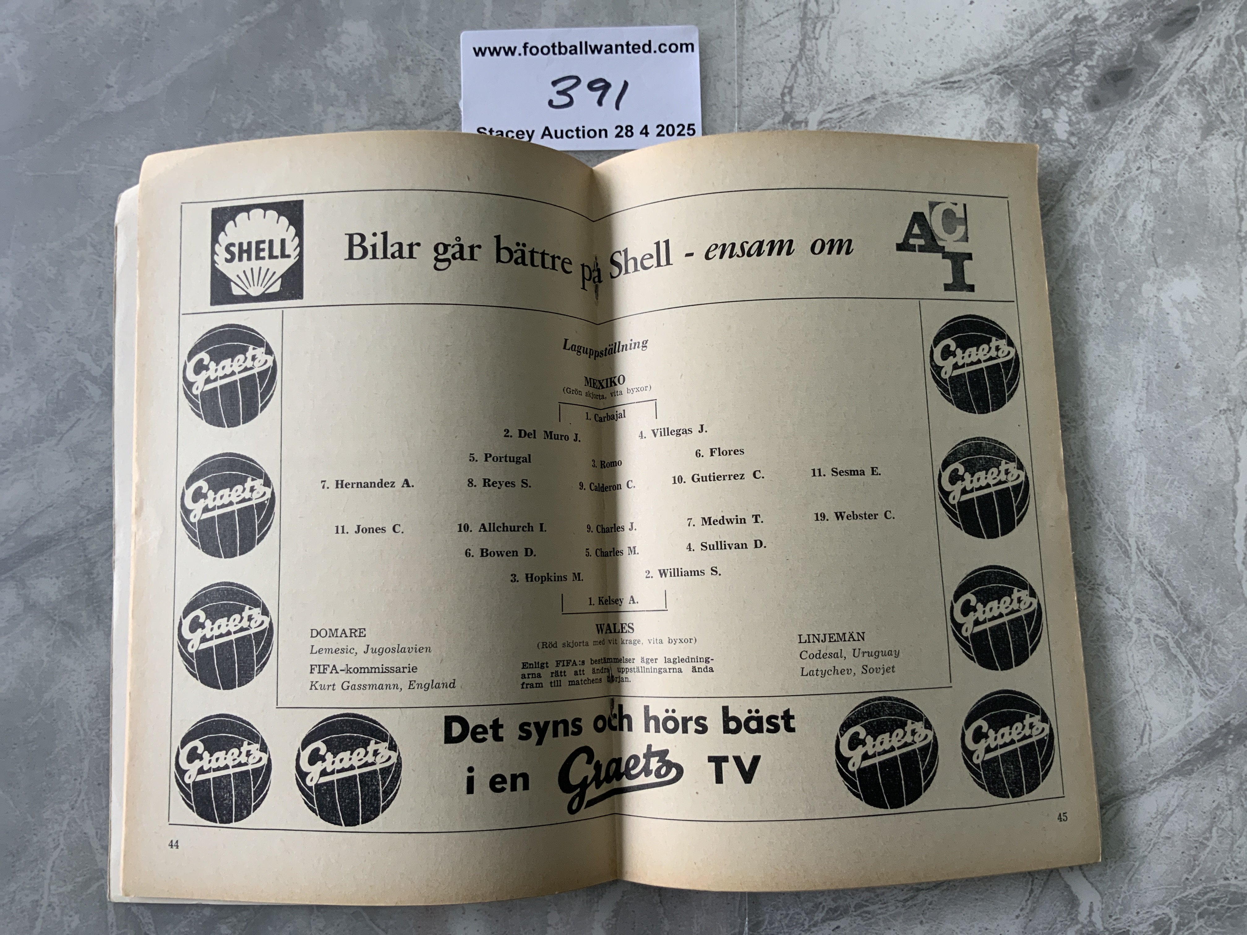 1958 Wales v Mexico World Cup Football Programme: Fair condition 88 page programme with no team changes. Tiny tear and scuff.
