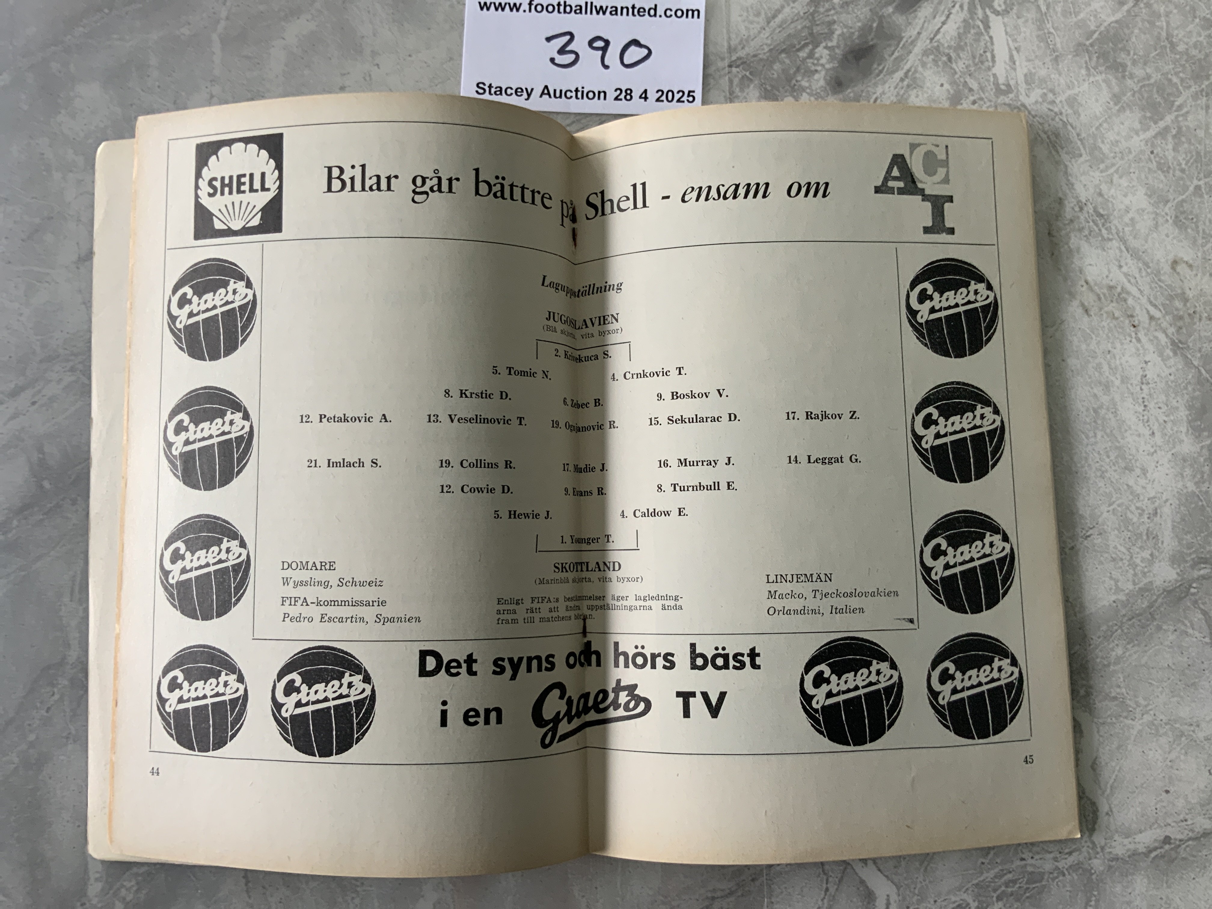 1958 Yugoslavia v Scotland World Cup Football Programme: Excellent condition 88 page programme with no team changes.