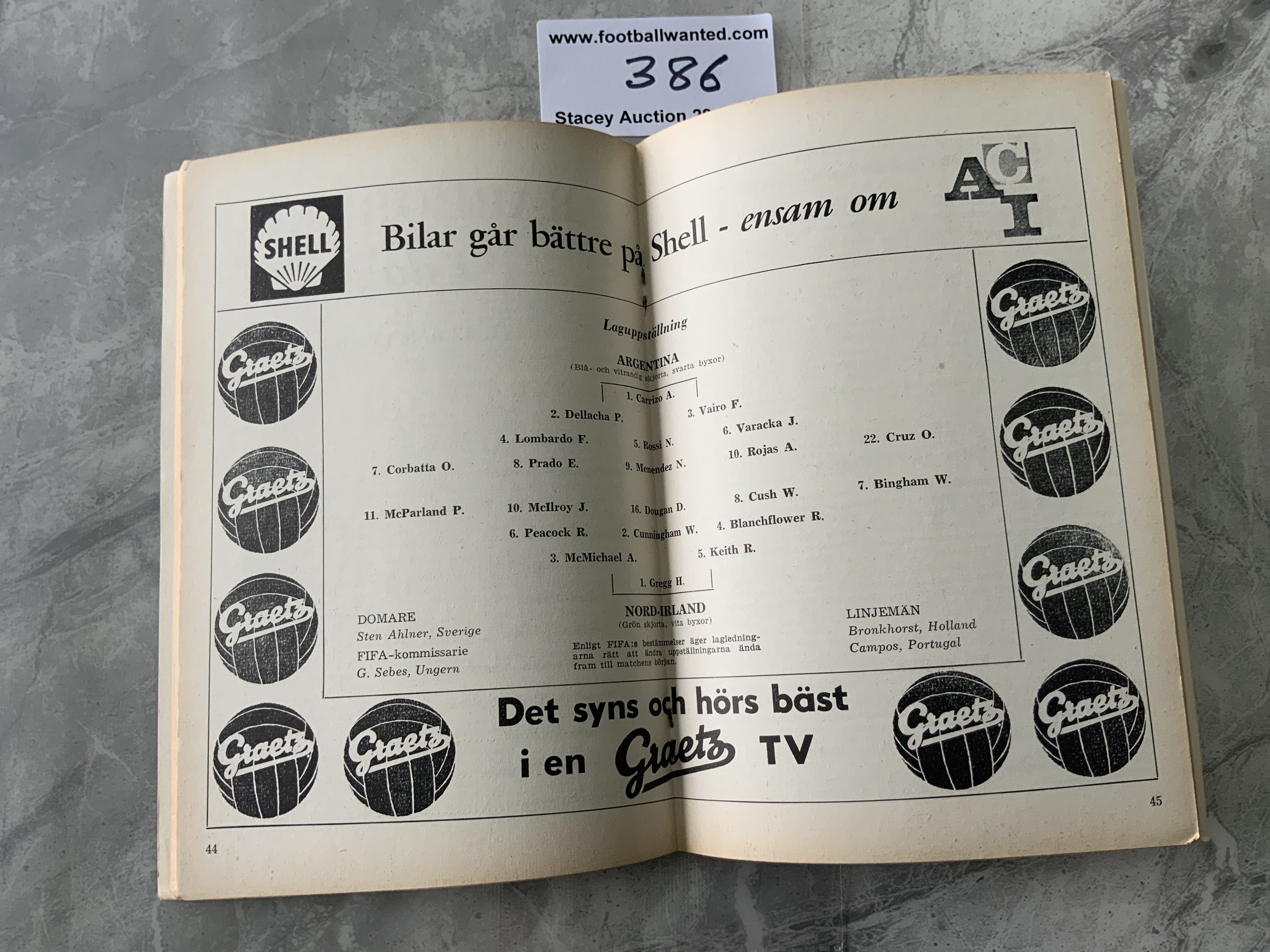 1958 Argentina v Northern Ireland World Cup Football Programme: Excellent condition 88 page programme with no team changes.
