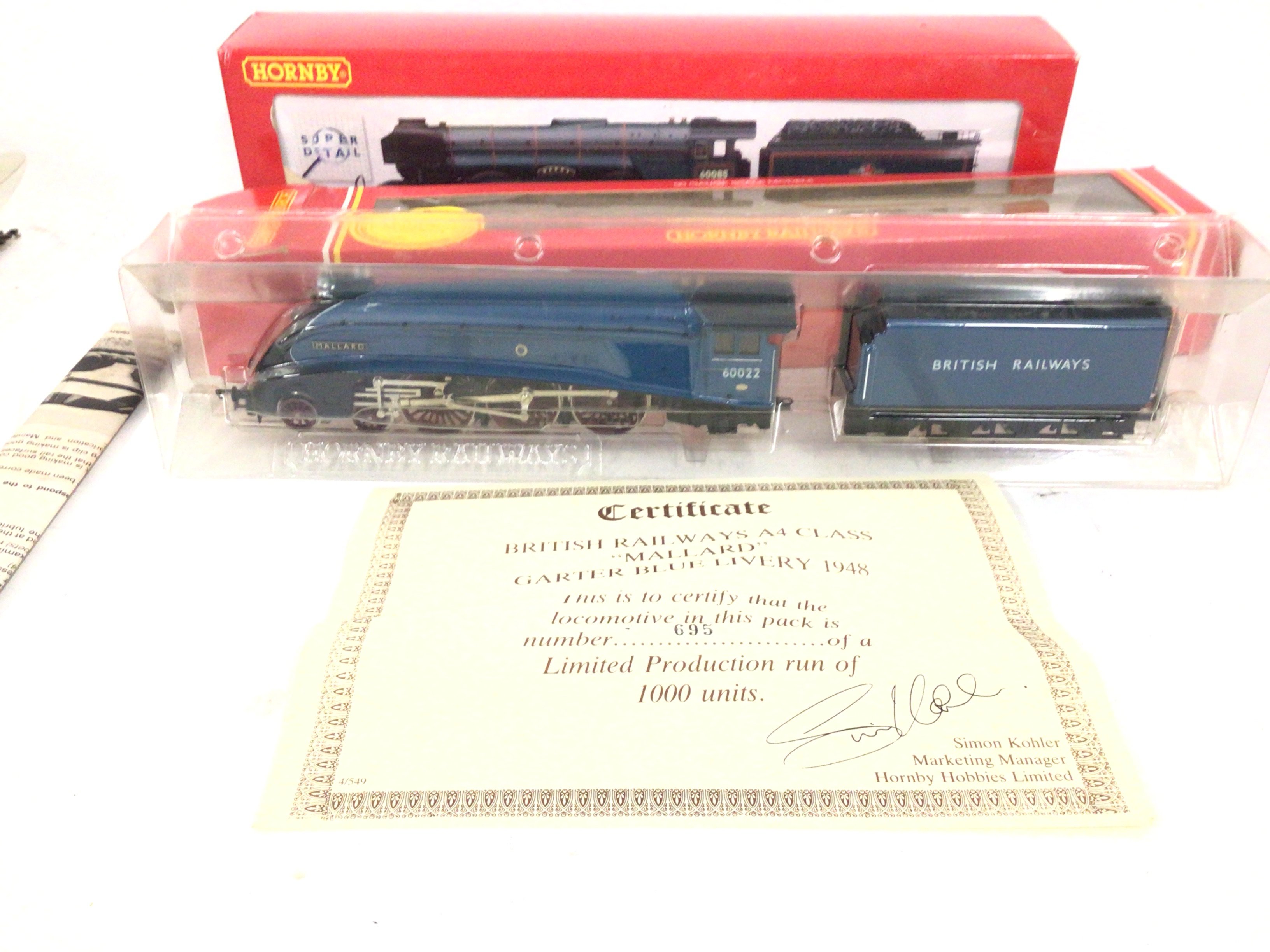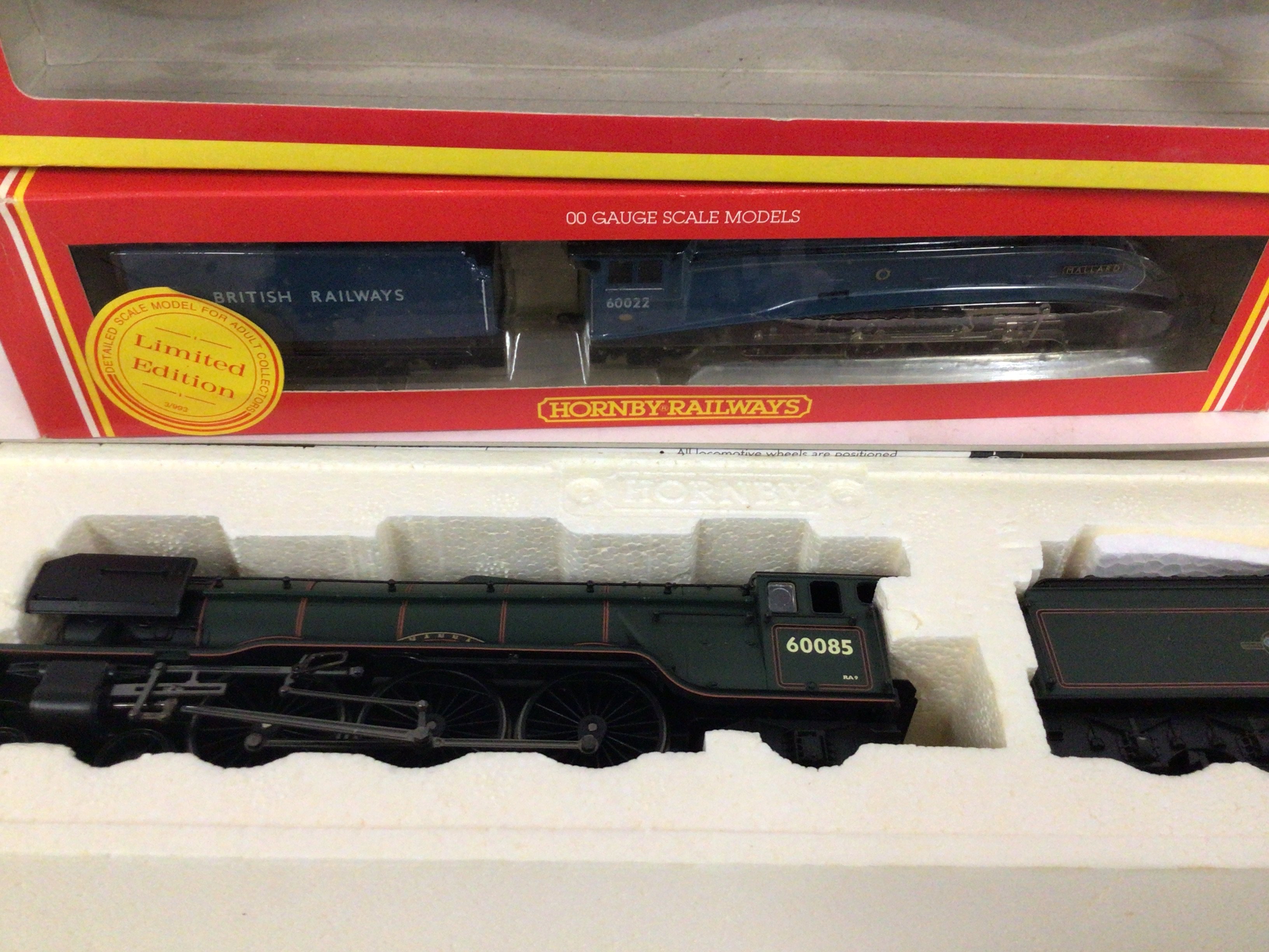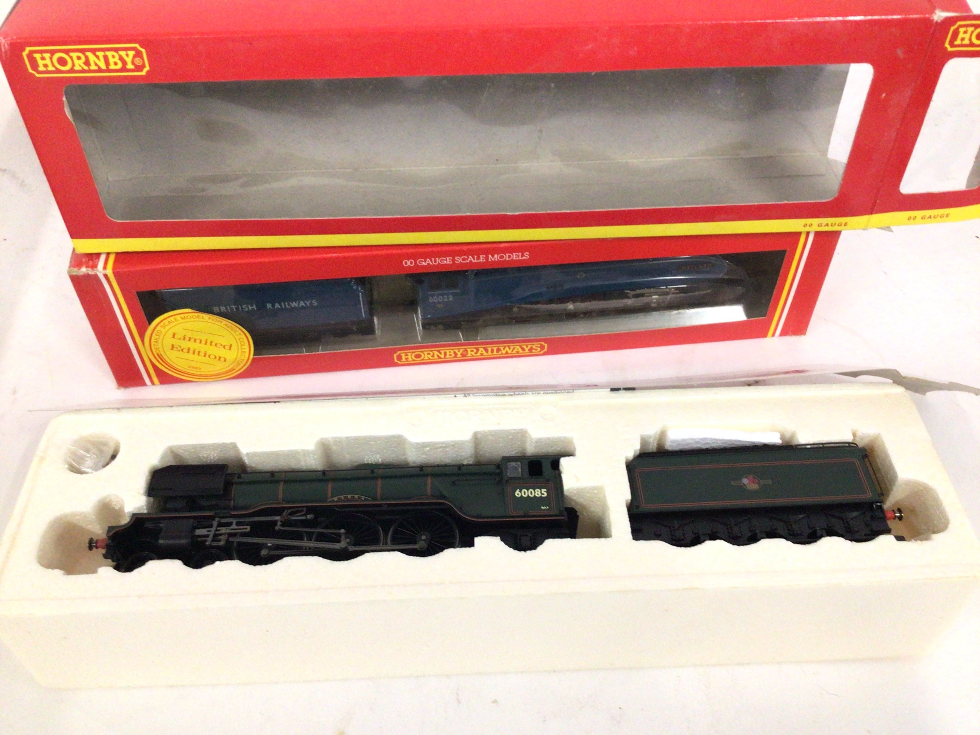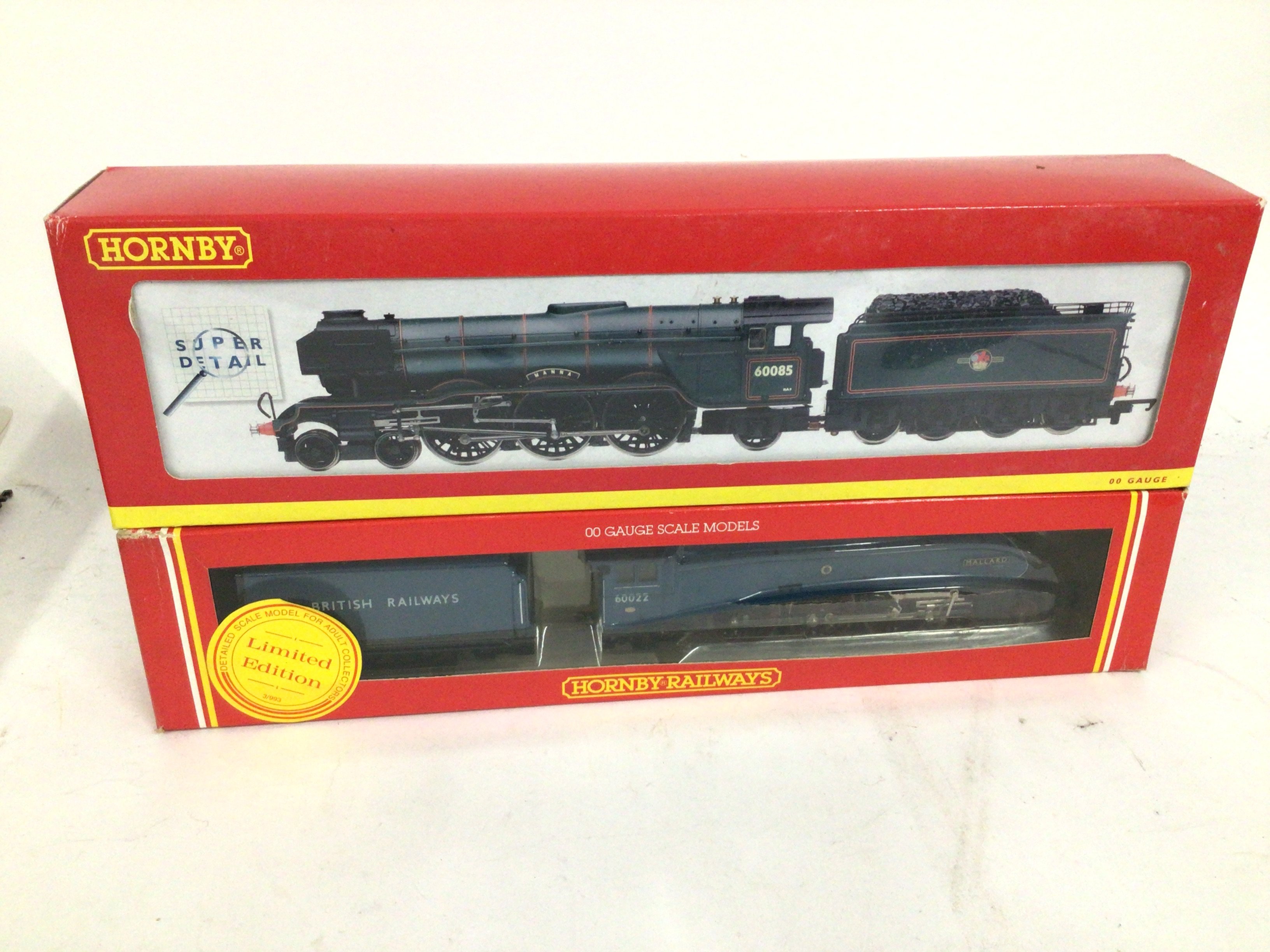 2x boxed Hornby model 00 gauge locomotives with tenders includes R2152 class A3 60085 Manna. Also a limited edition Mallard