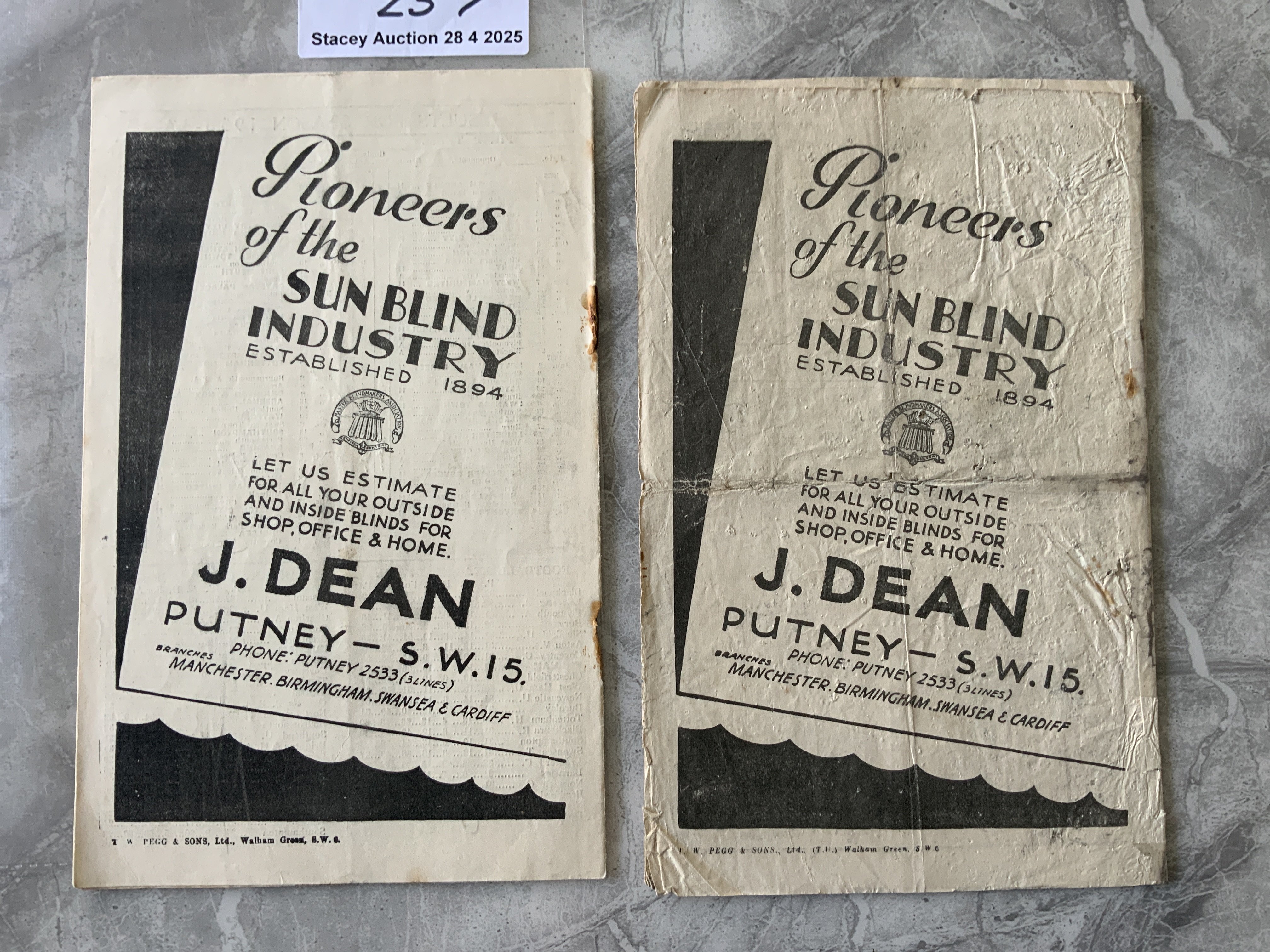 1930s Fulham v Leicester City Home Football Programmes: 36/37 Division Two and 38/39 London Combination. Poor/fair. (2)