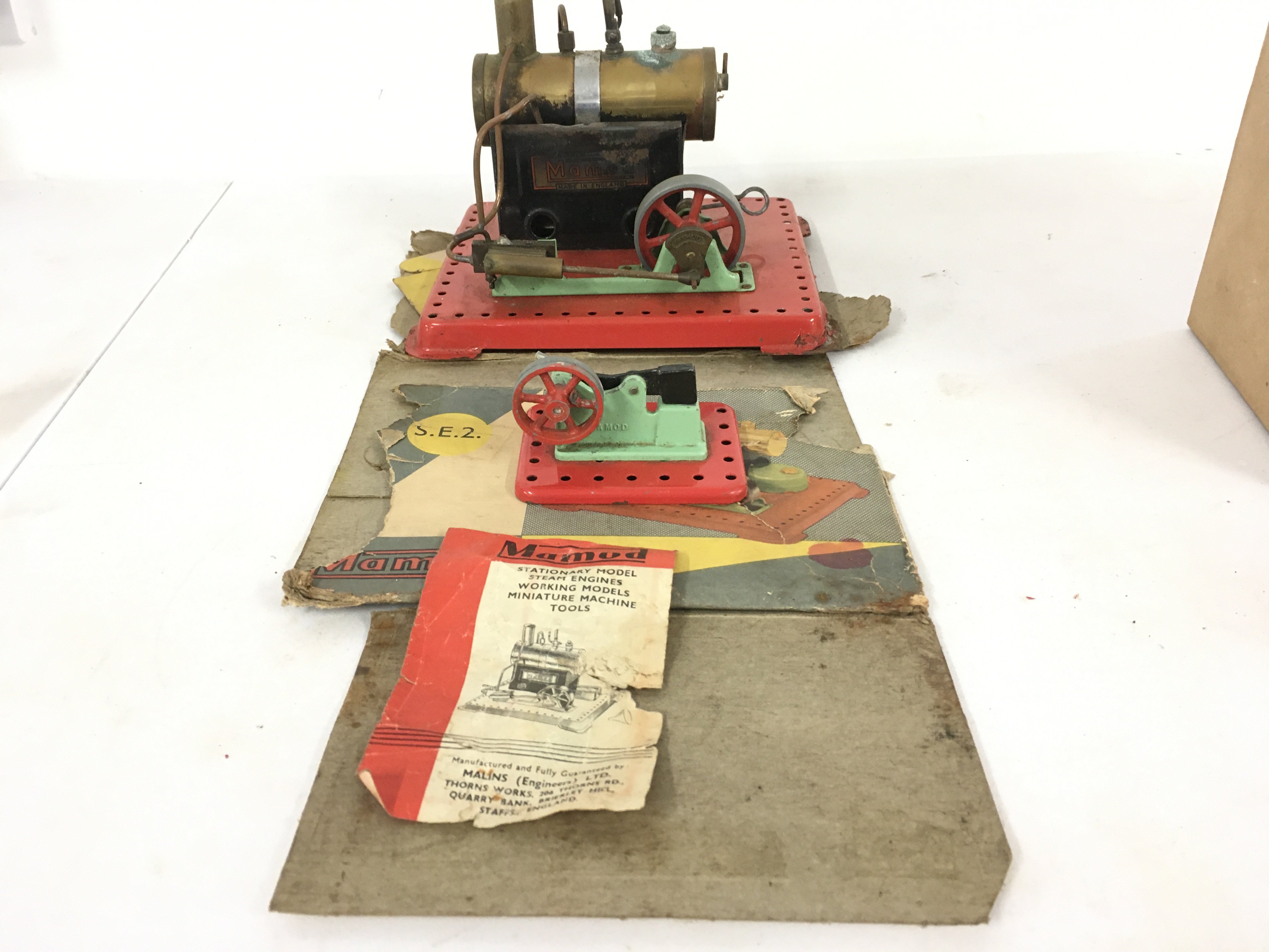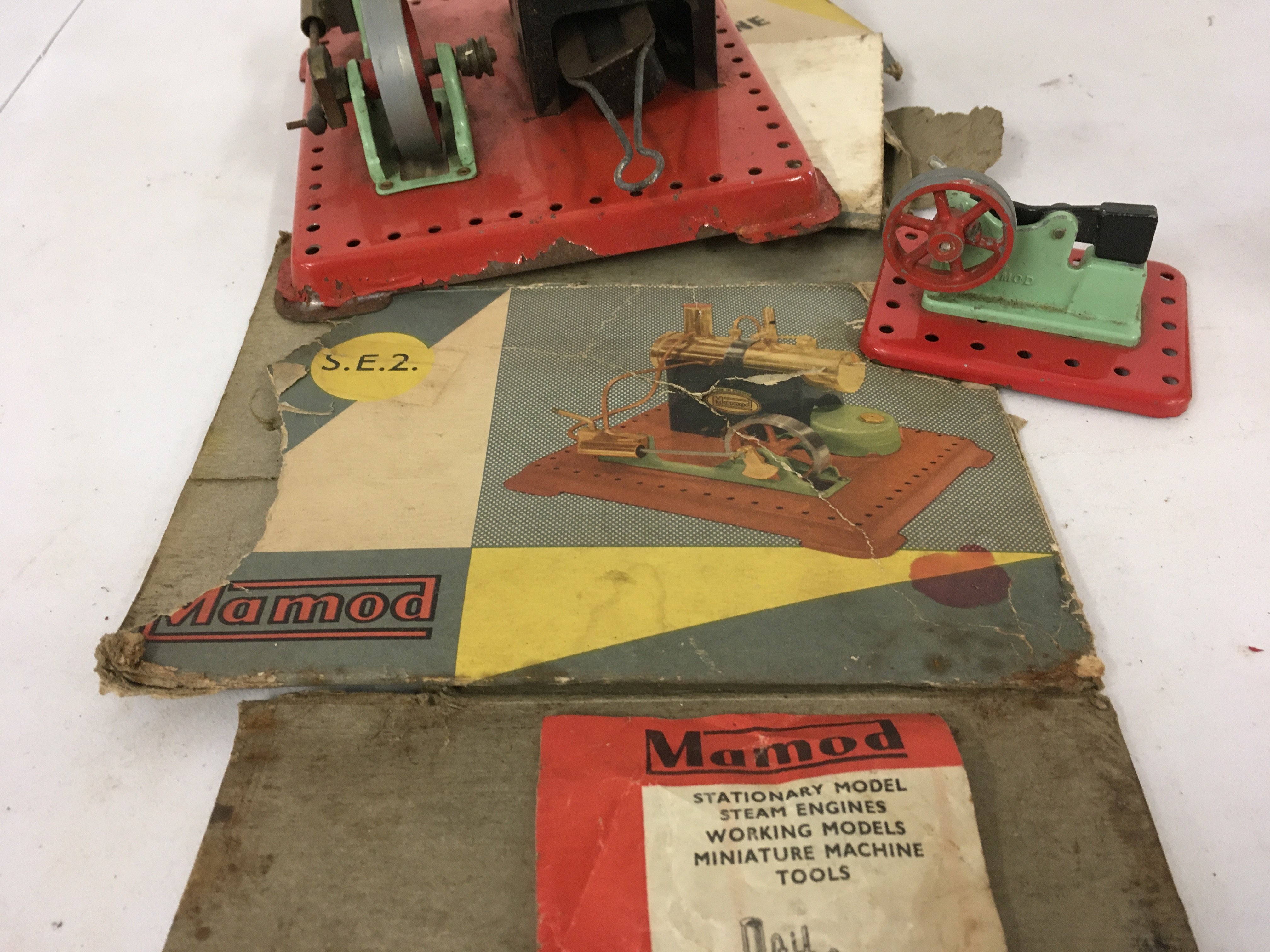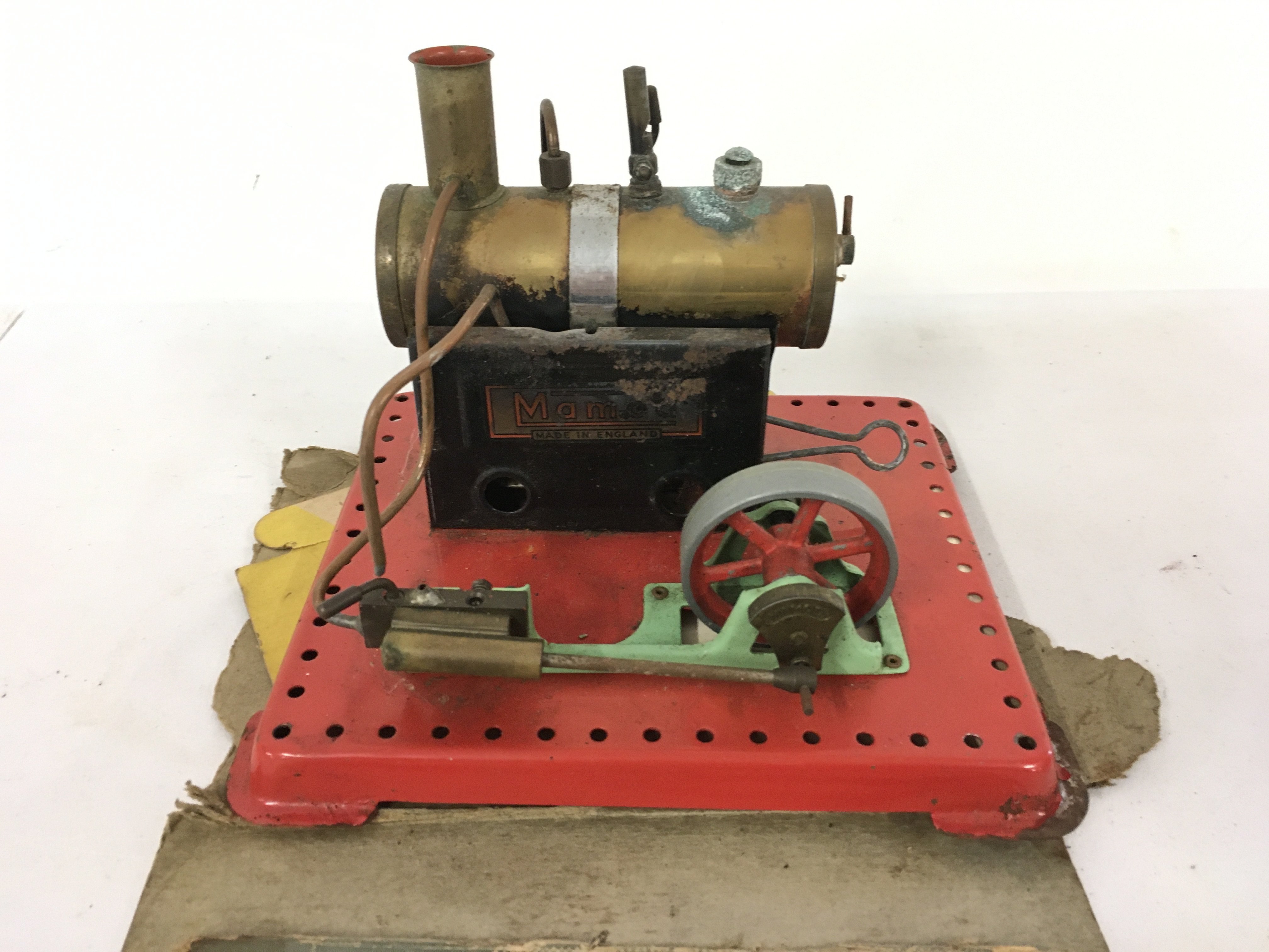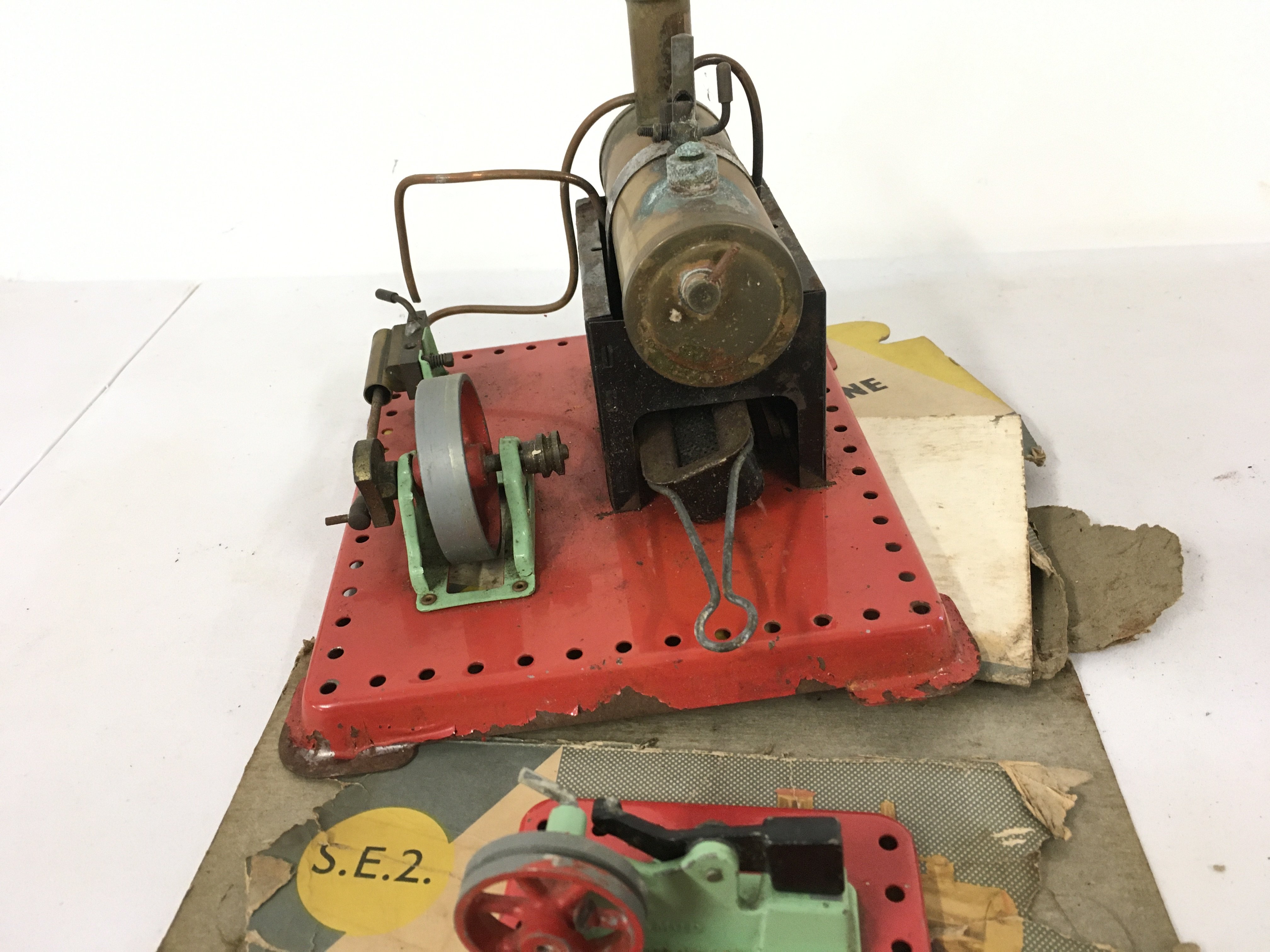 A Mamod model static live steam engine with A Minature machines tool steam hammer.No reserve with original box in poor condition.