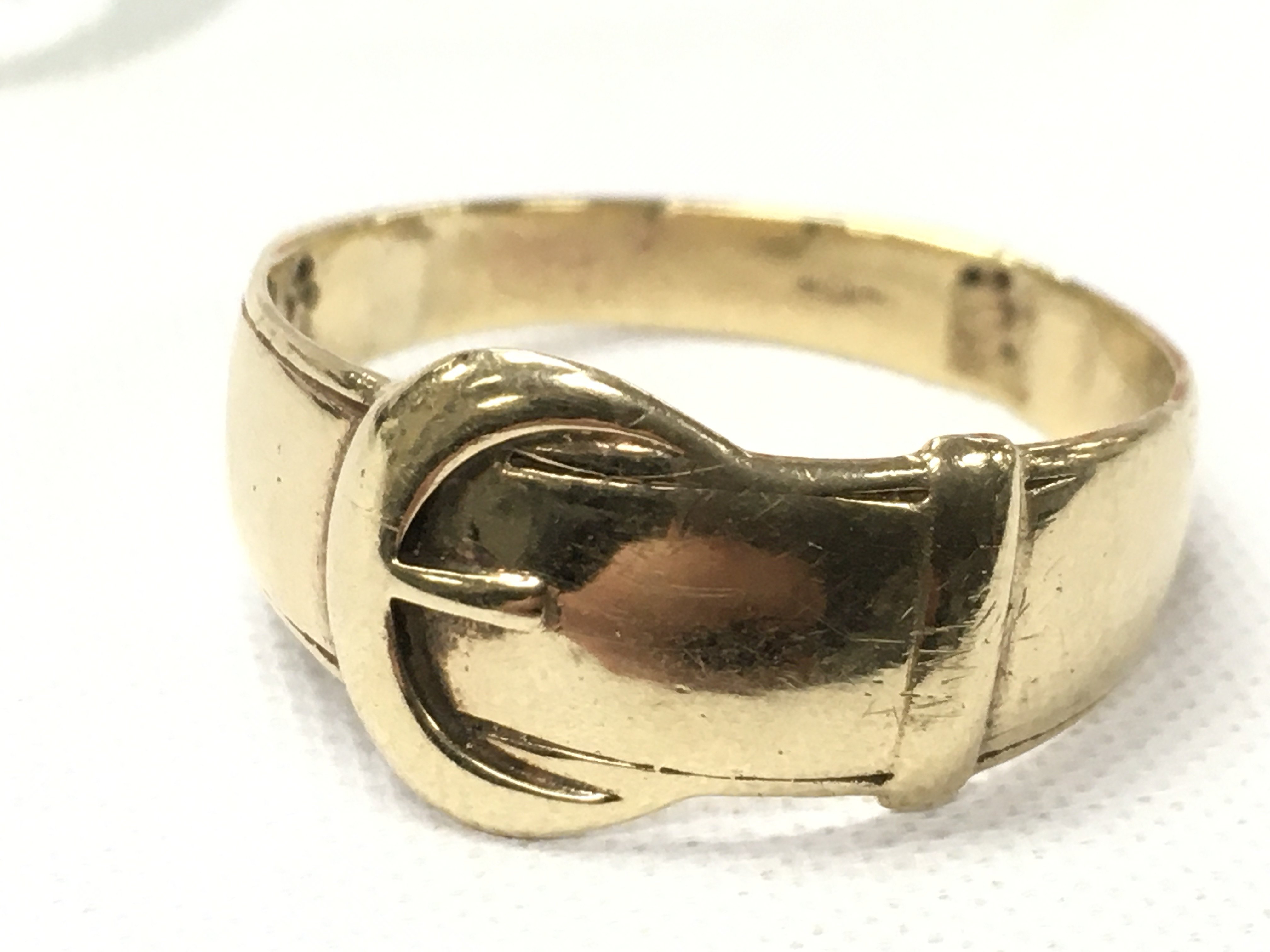 A 9ct gold belt buckle ring , size W. 3.7g Postage category A