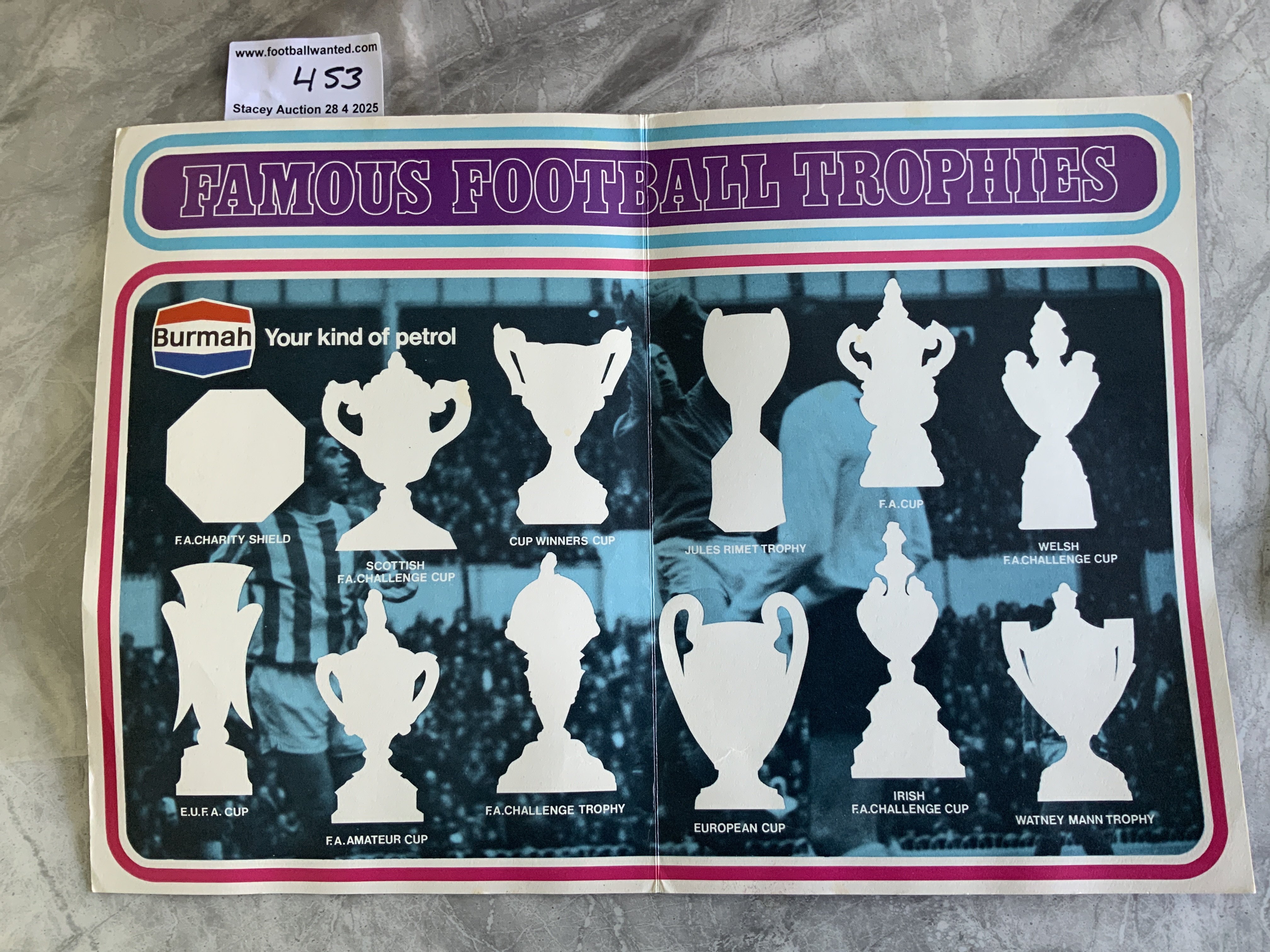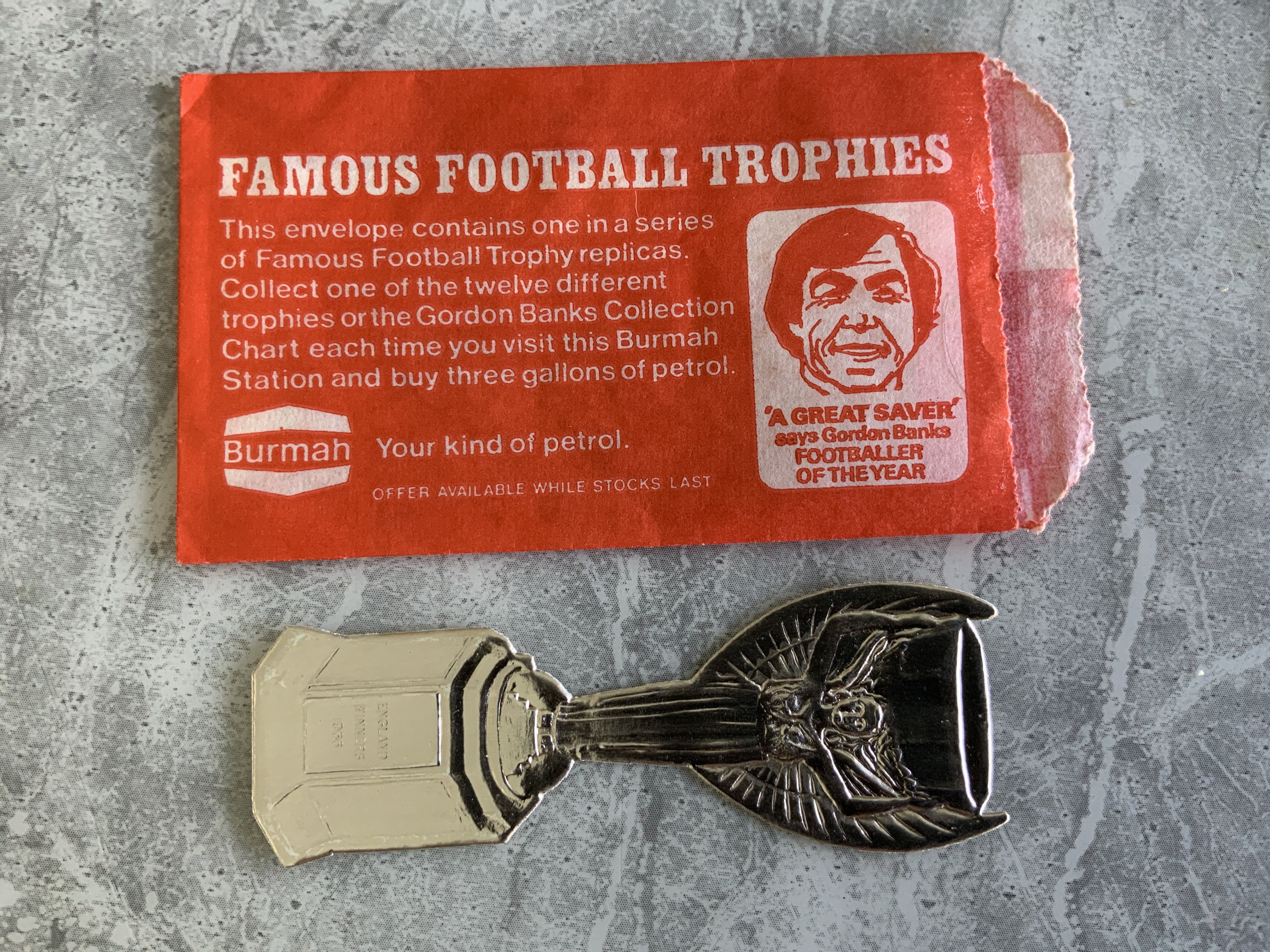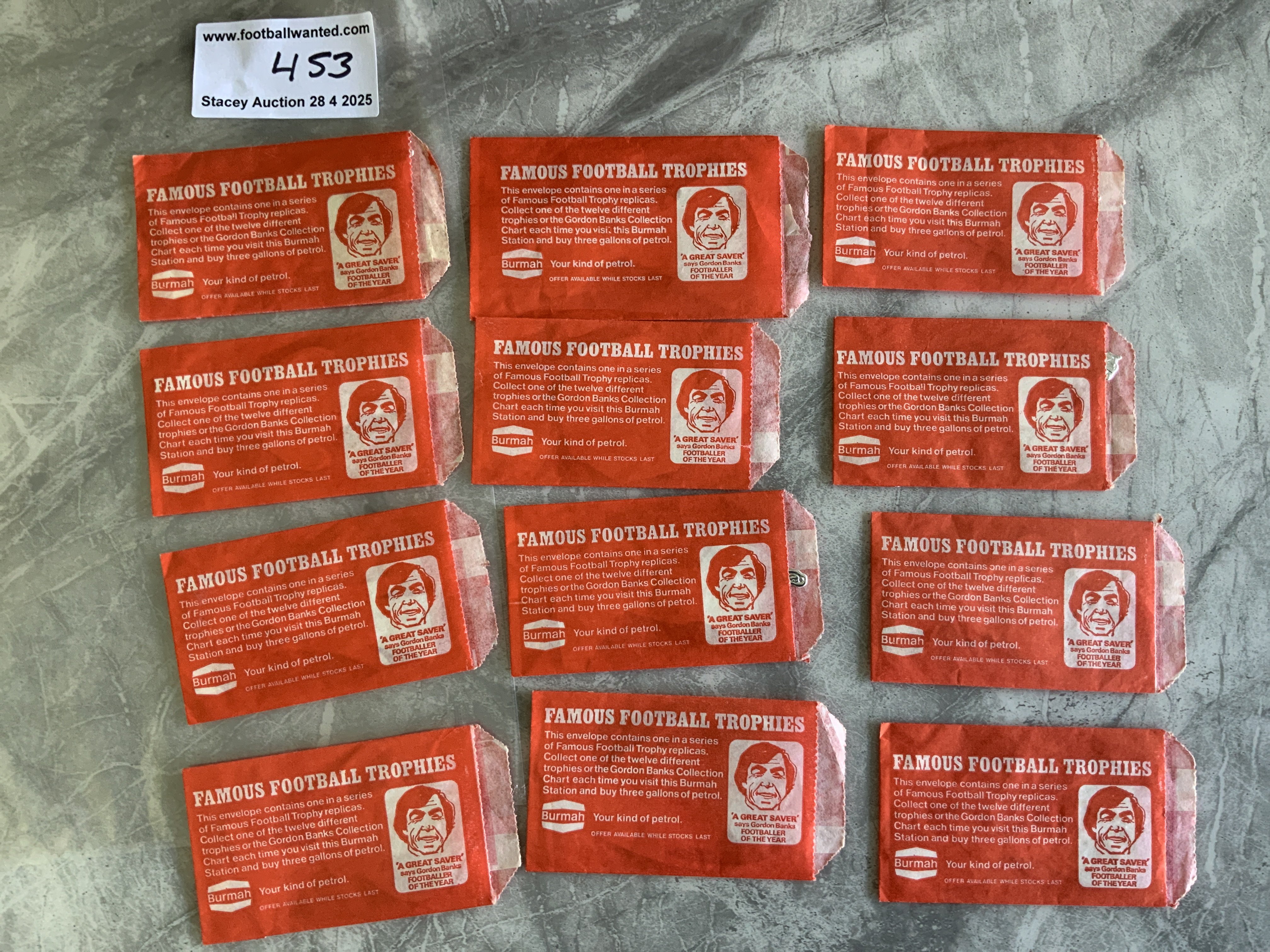 Burmah Oil Famous Football Trophies: Rare set featuring Gordon Banks holding the World Cup to cover of empty album. In each original packet is a full set of the 12 trophies which are not stuck into album.