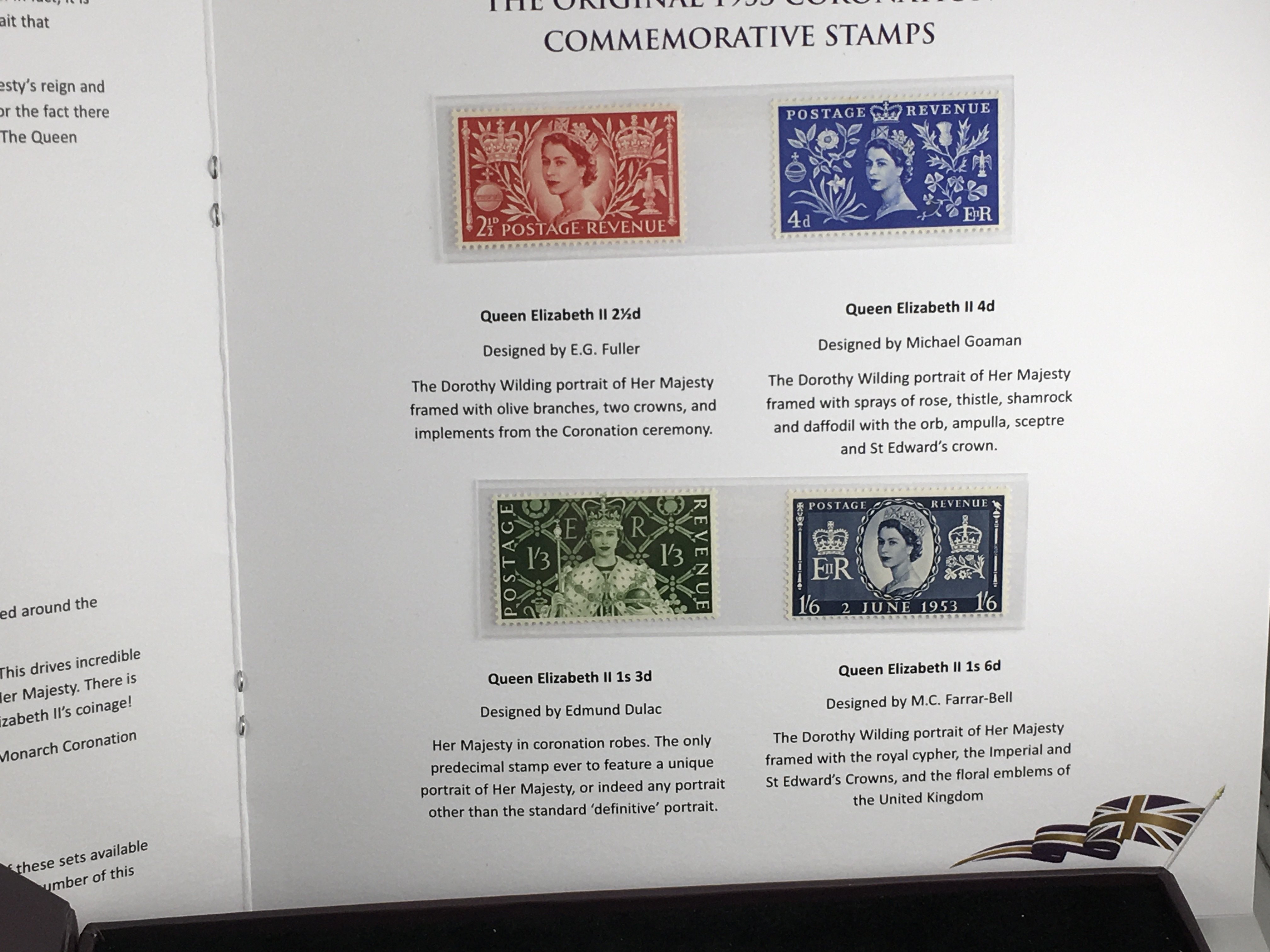 Queen Elizabeth II longest reigning monarch coronation coin and stamp set. Postage B.