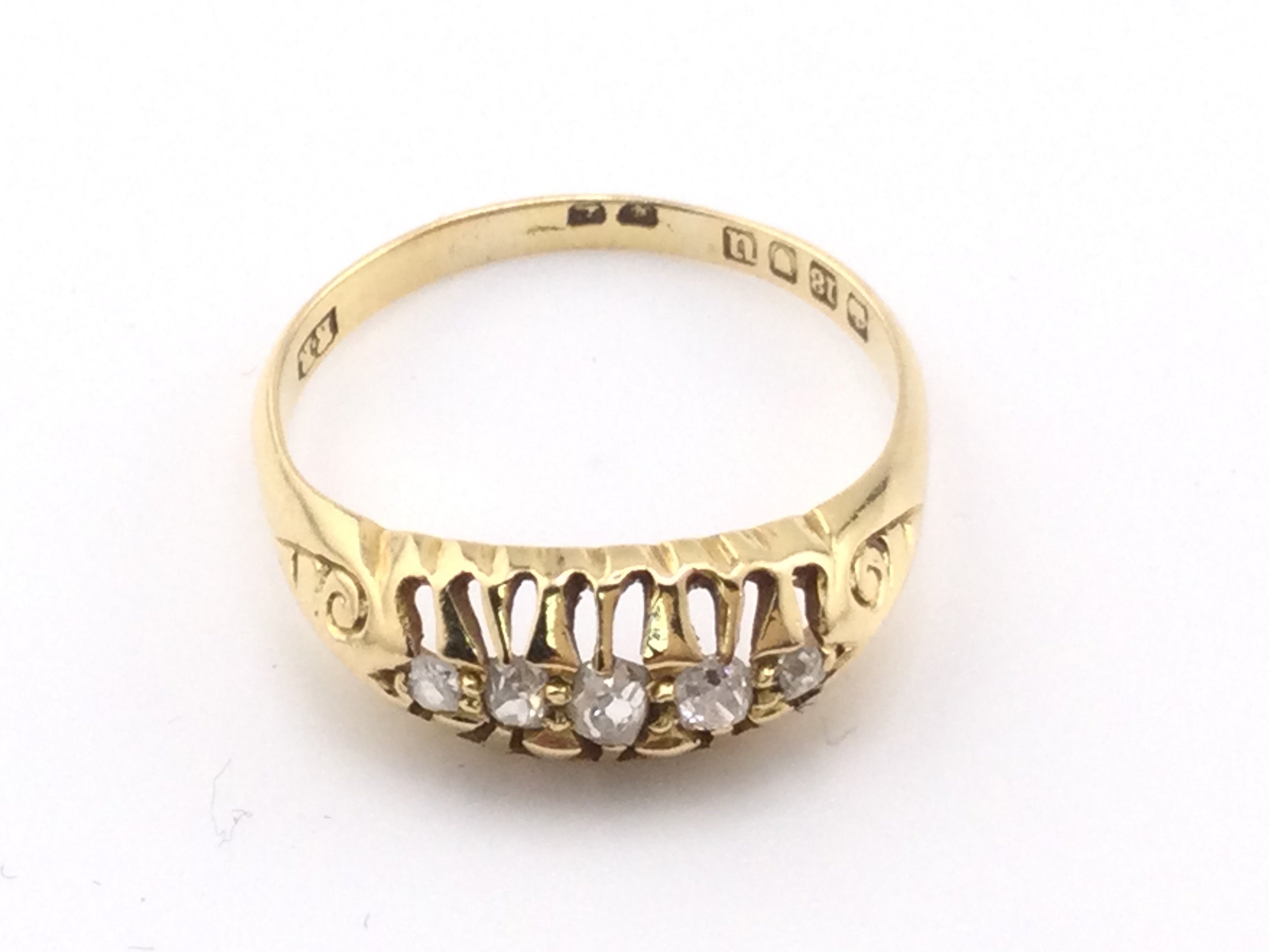 An 18ct gold diamond set ring. Size O and 3.21g Postage A