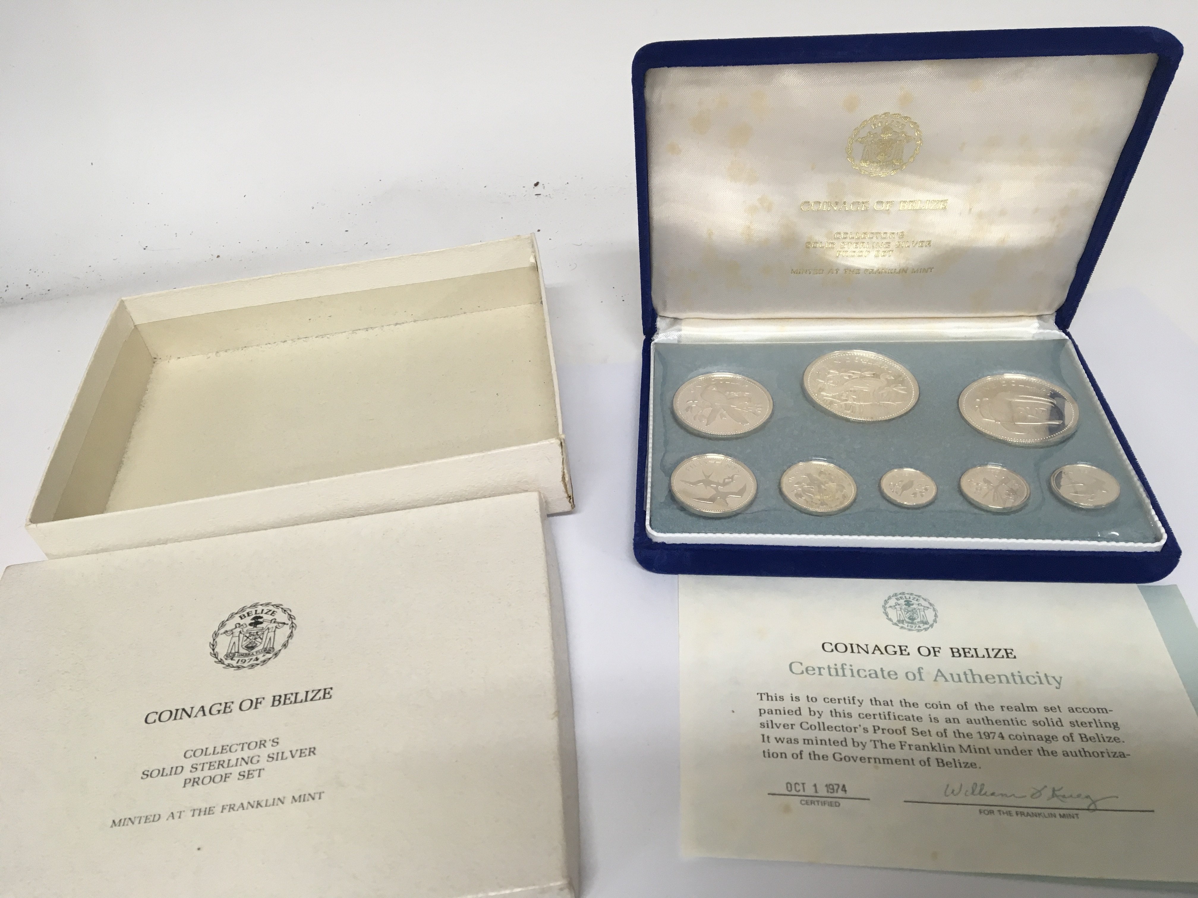 A 1974 silver coin set The coinage of Belize with certificate of Authenticity and boxed.