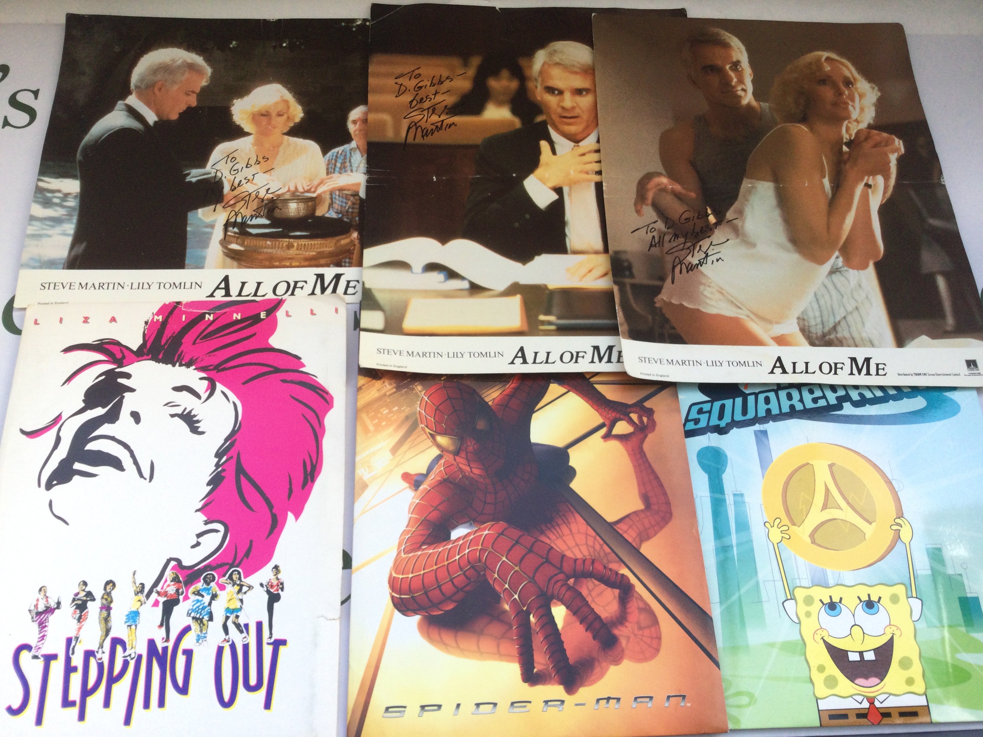 A collection of film related memorabilia comprising some Steve Martin signed lobby cards for 'All Of Me', movie press packs, Star Trek poster etc.