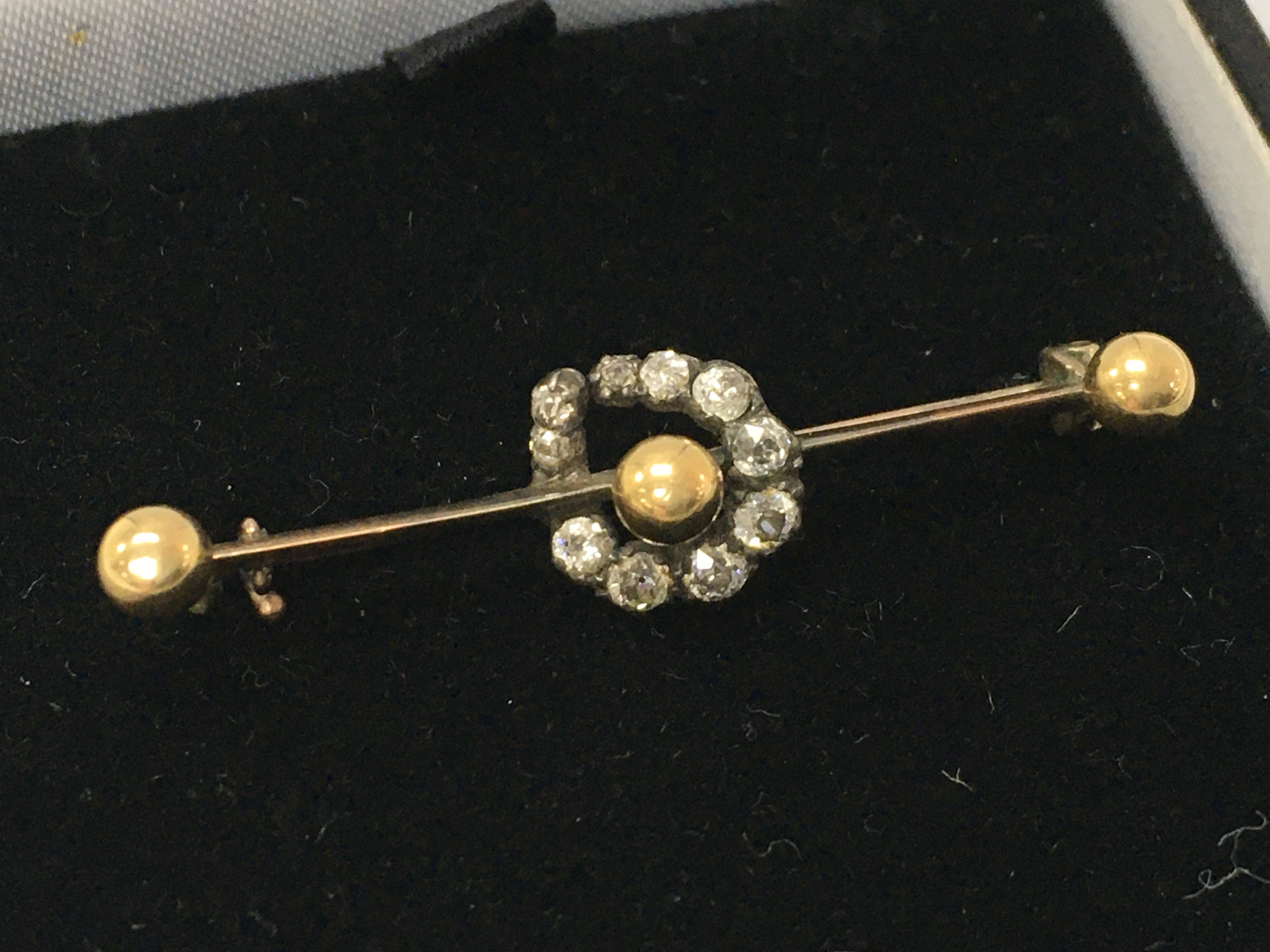 A gold brooch with old cut diamonds , 2.5g total weight. Postage category A