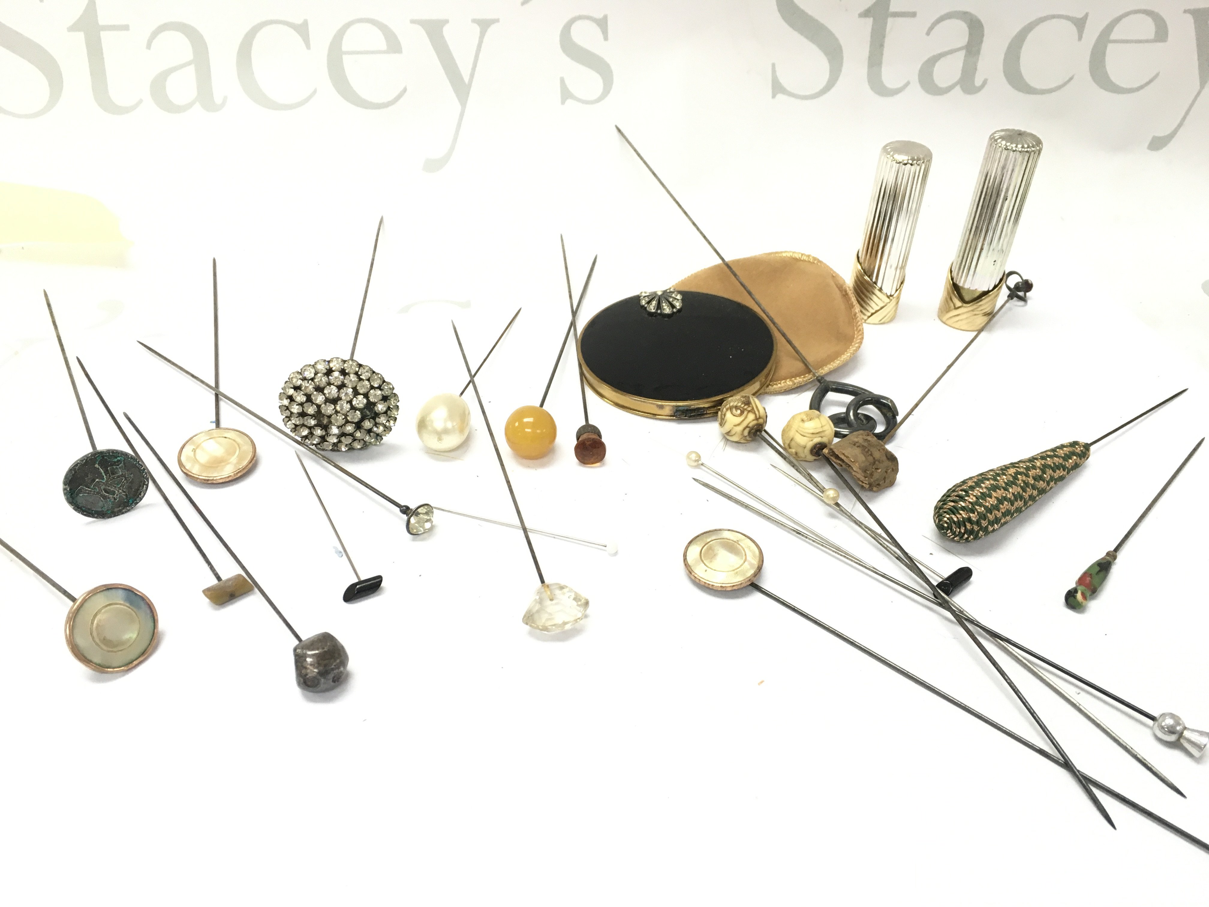 A collection of mainly hatpins to include silver examples, one by Charles Horner. Postage category b