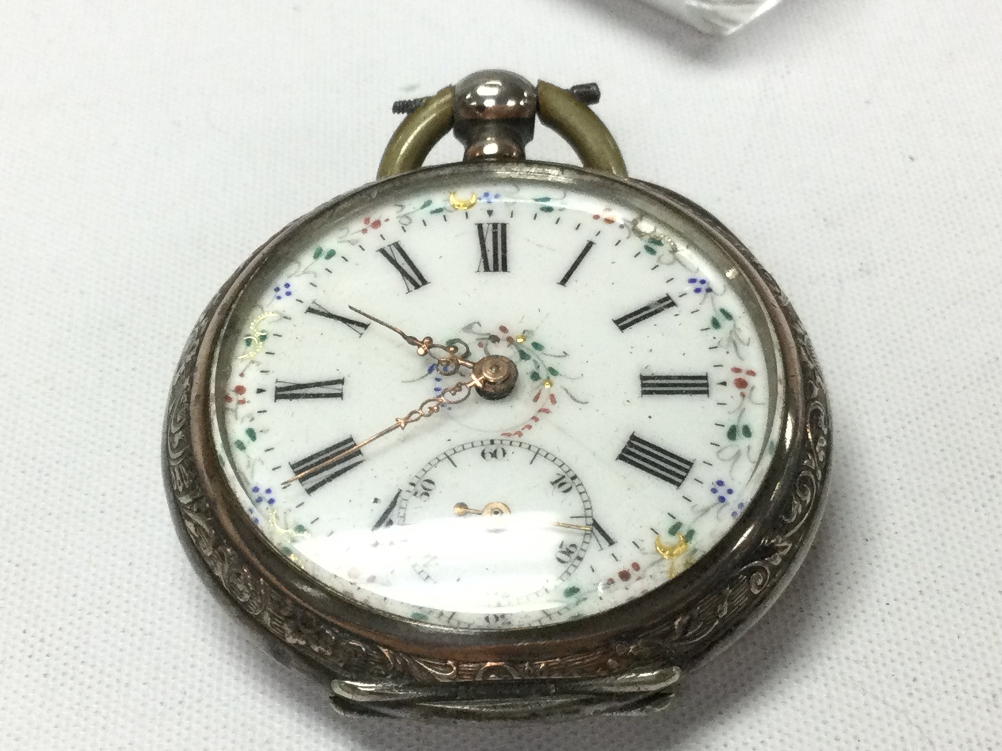 A French .800 silver and enamel pocket watch. 60g and approx 44mm case. Not running NO RESERVE