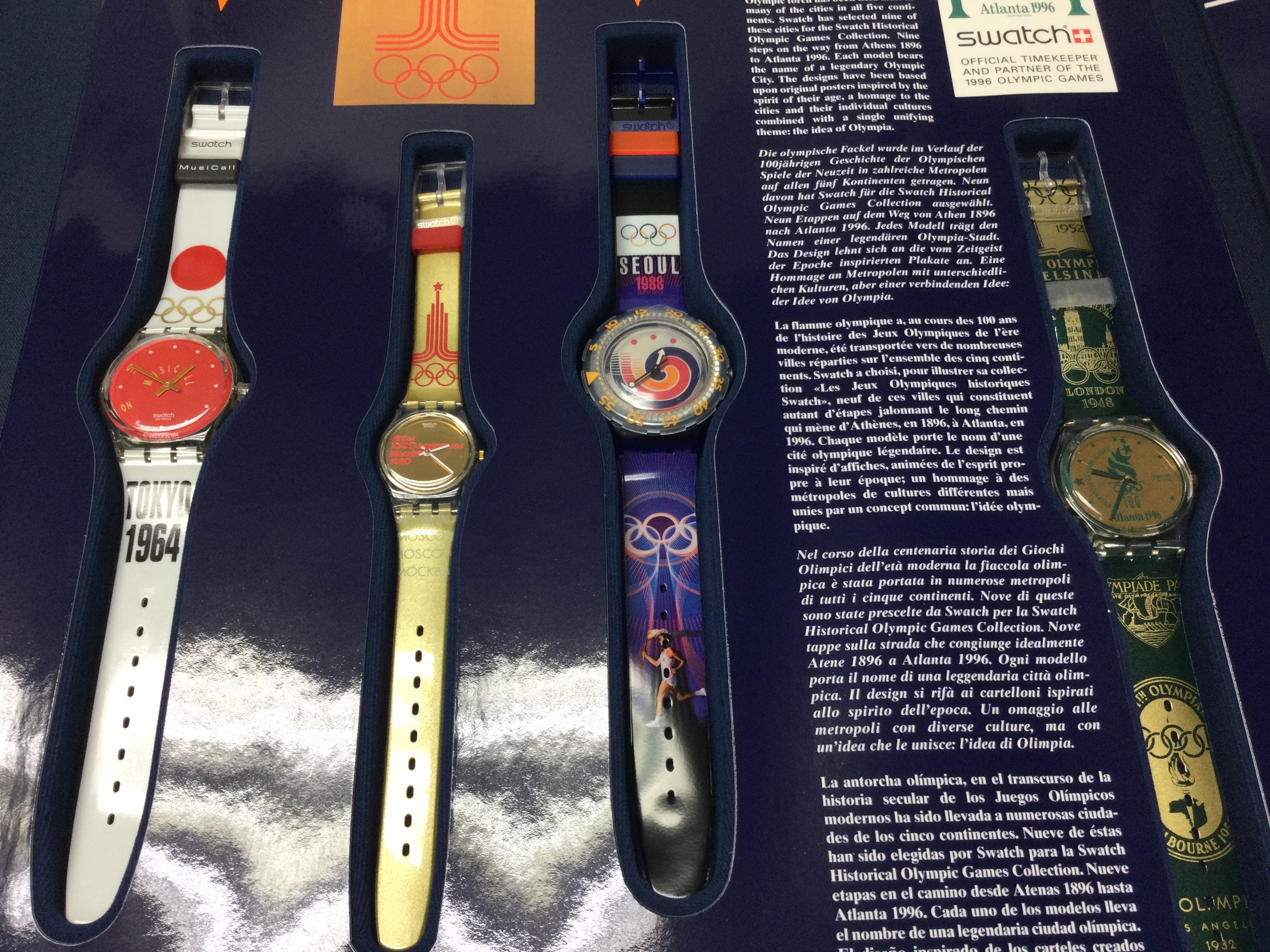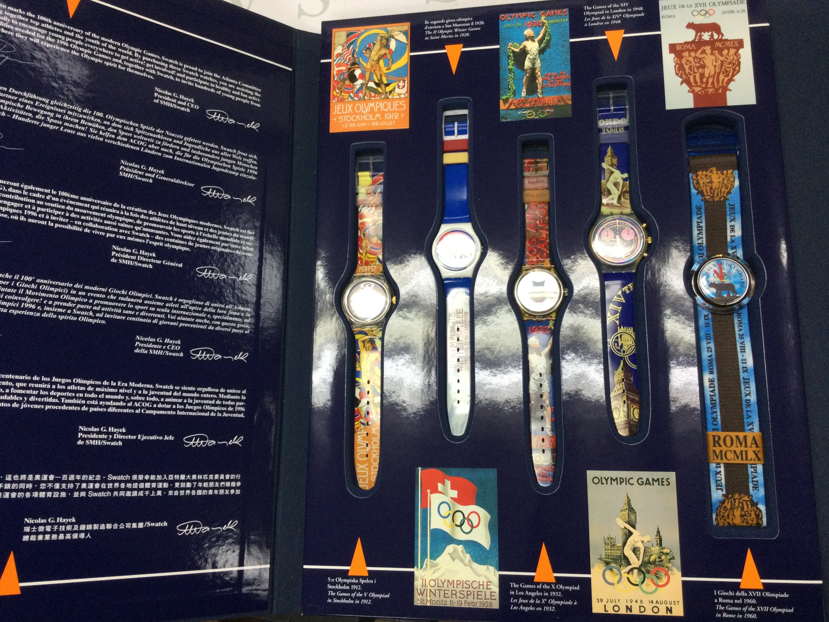 A limited edition swatch historical Olympic Games collection box set circa 1996. Postage B