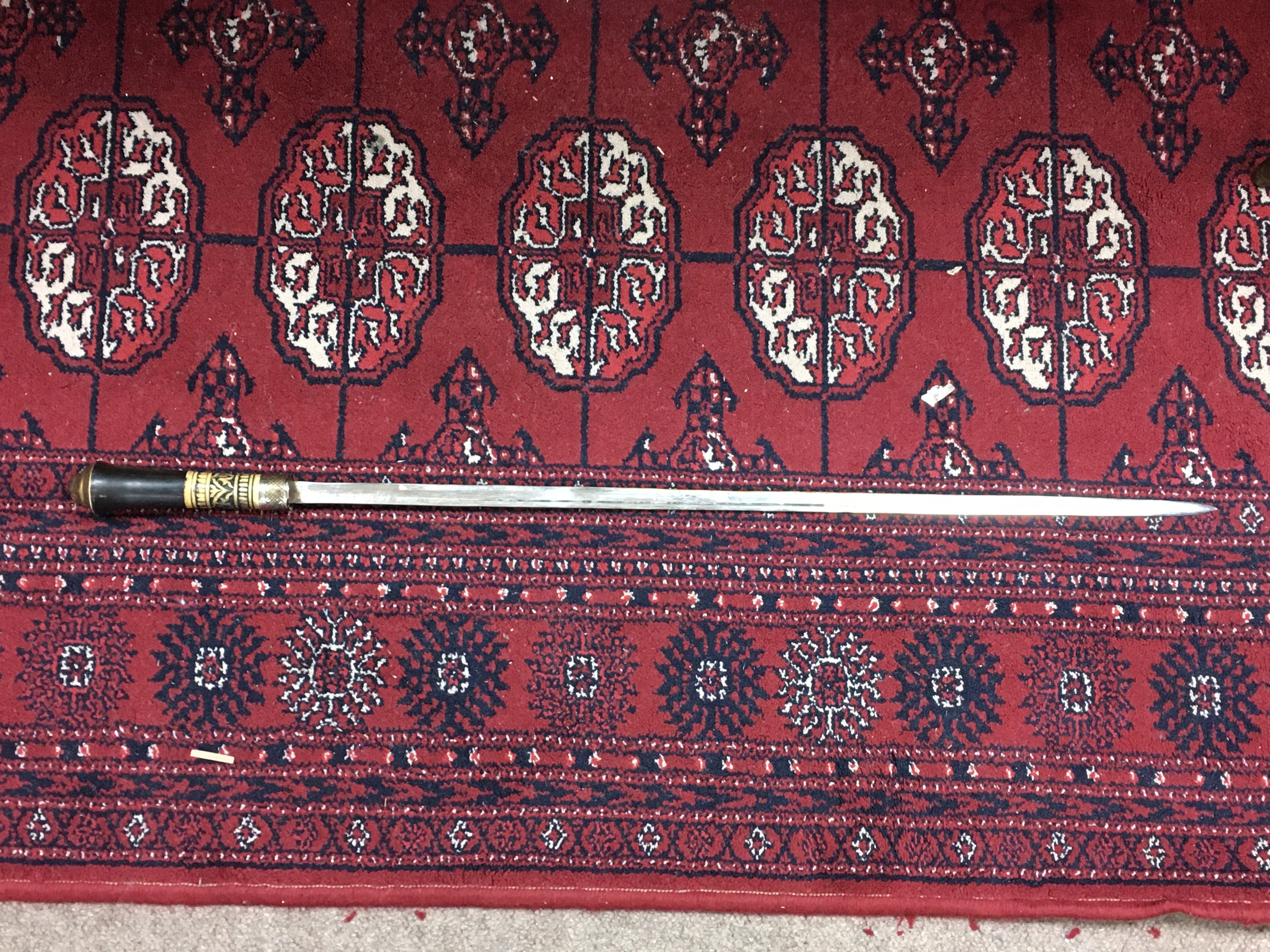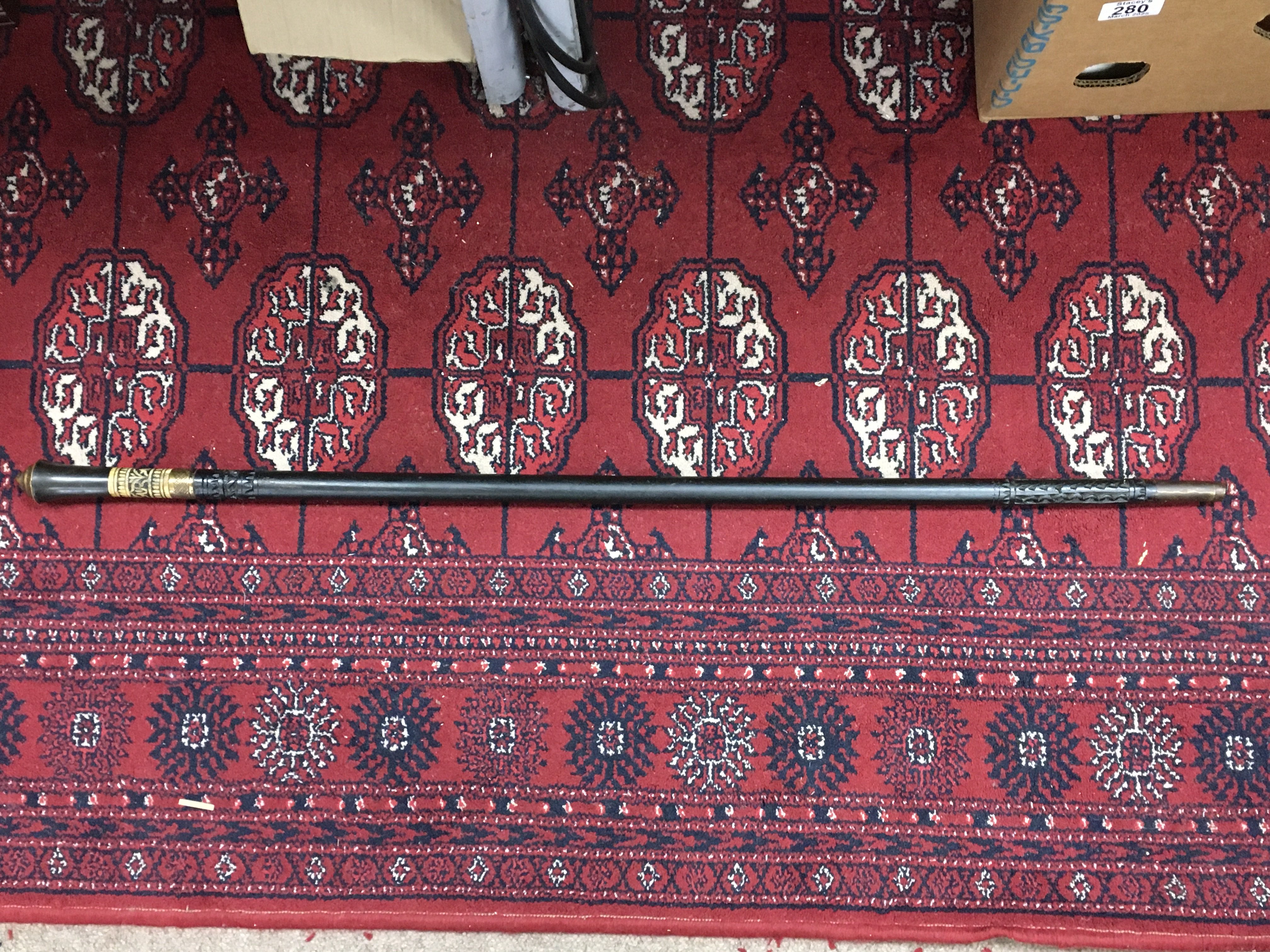 An ebonised sword stick blade approximately 60cm long , total length 74cm. The collar works as a lock function, twisting to release the blade section of the stick. This lot cannot be posted