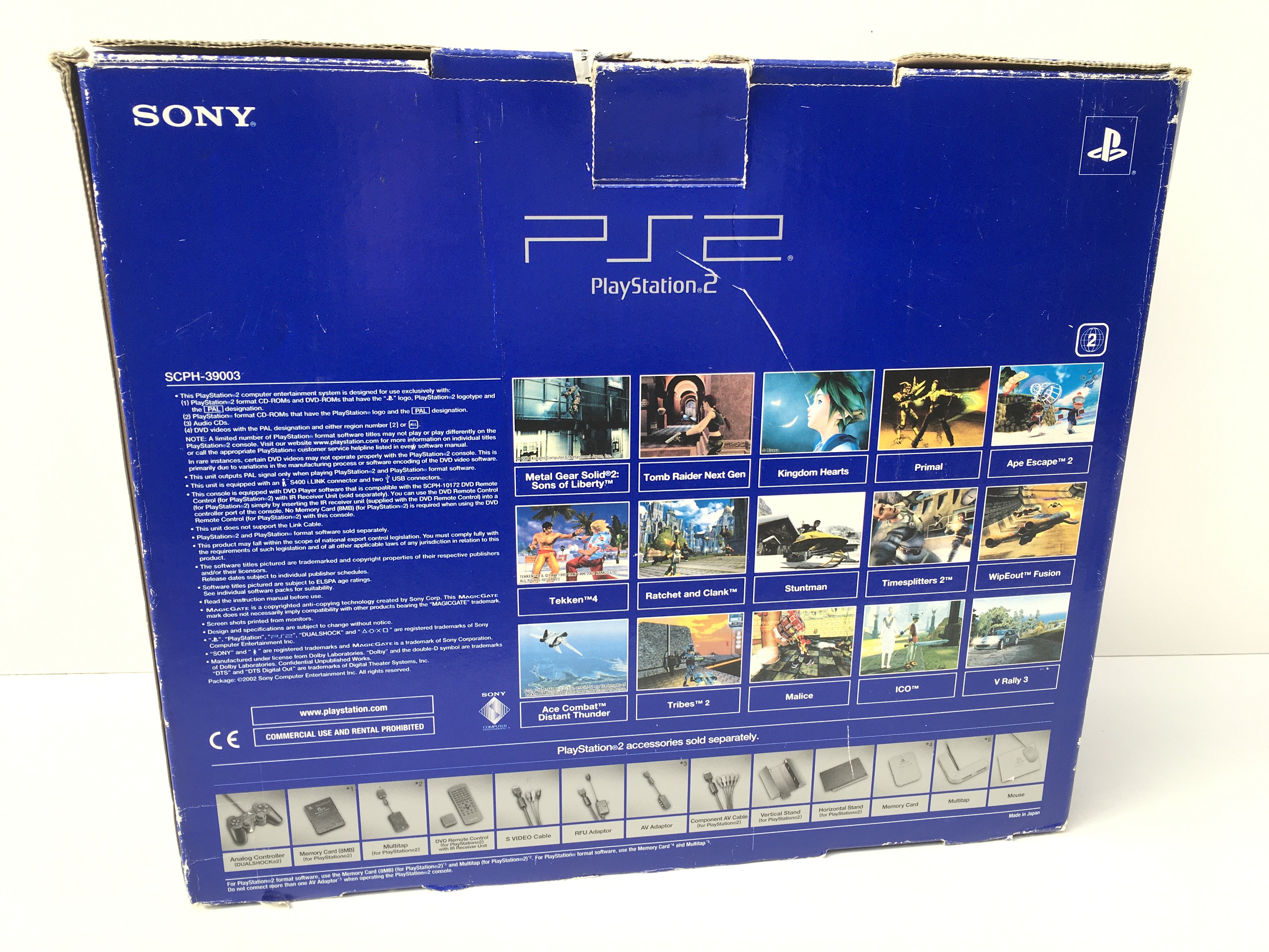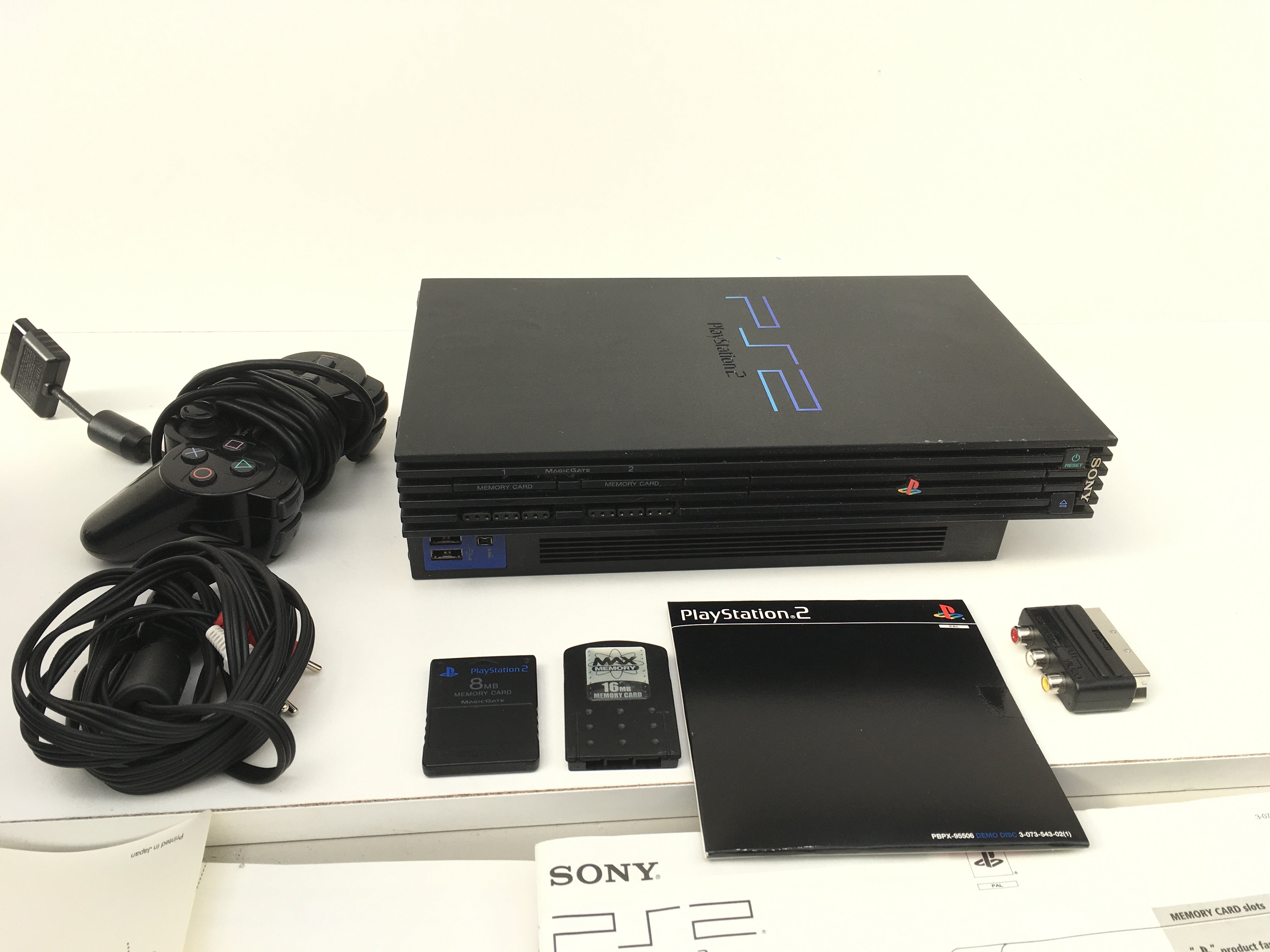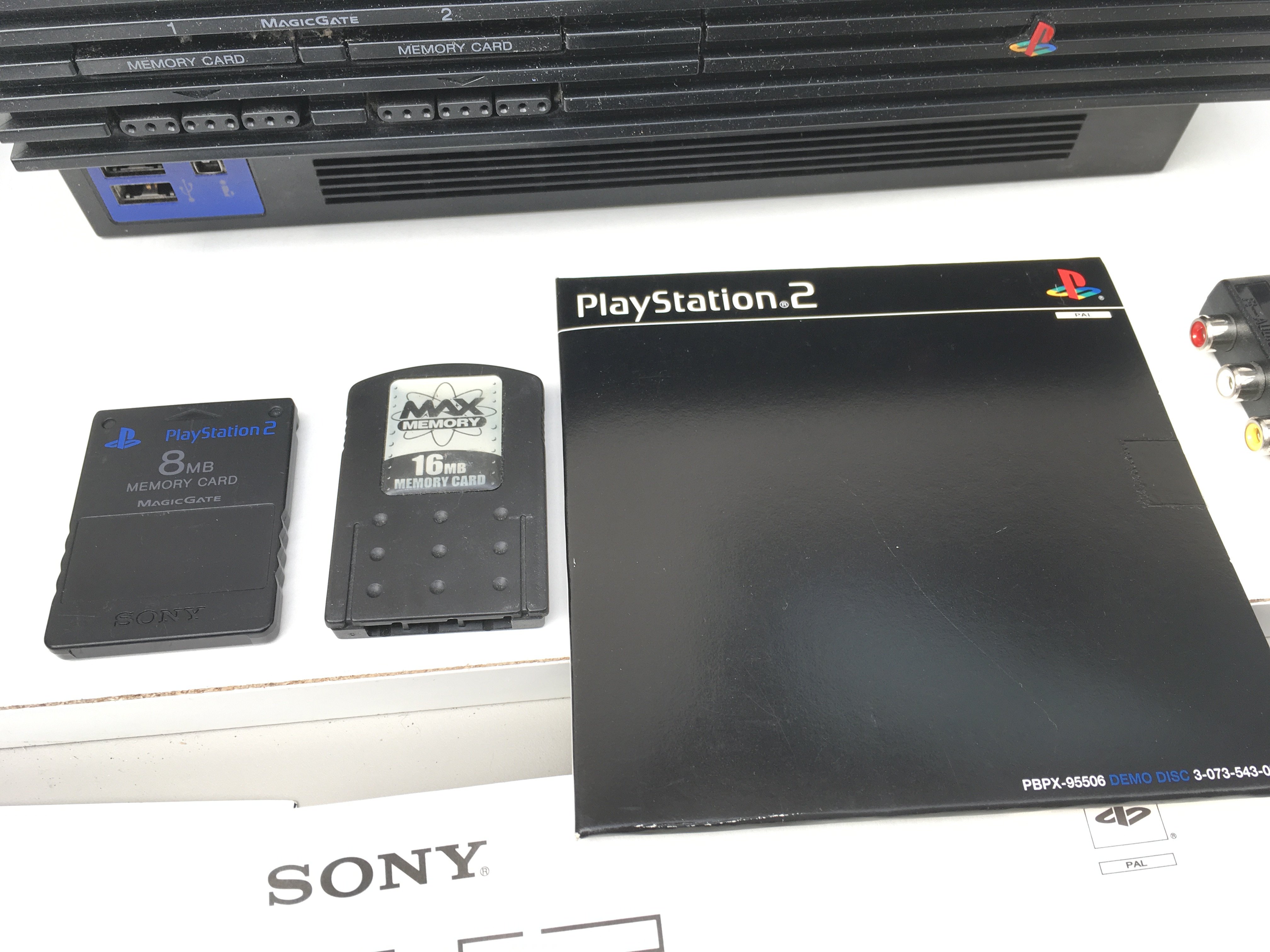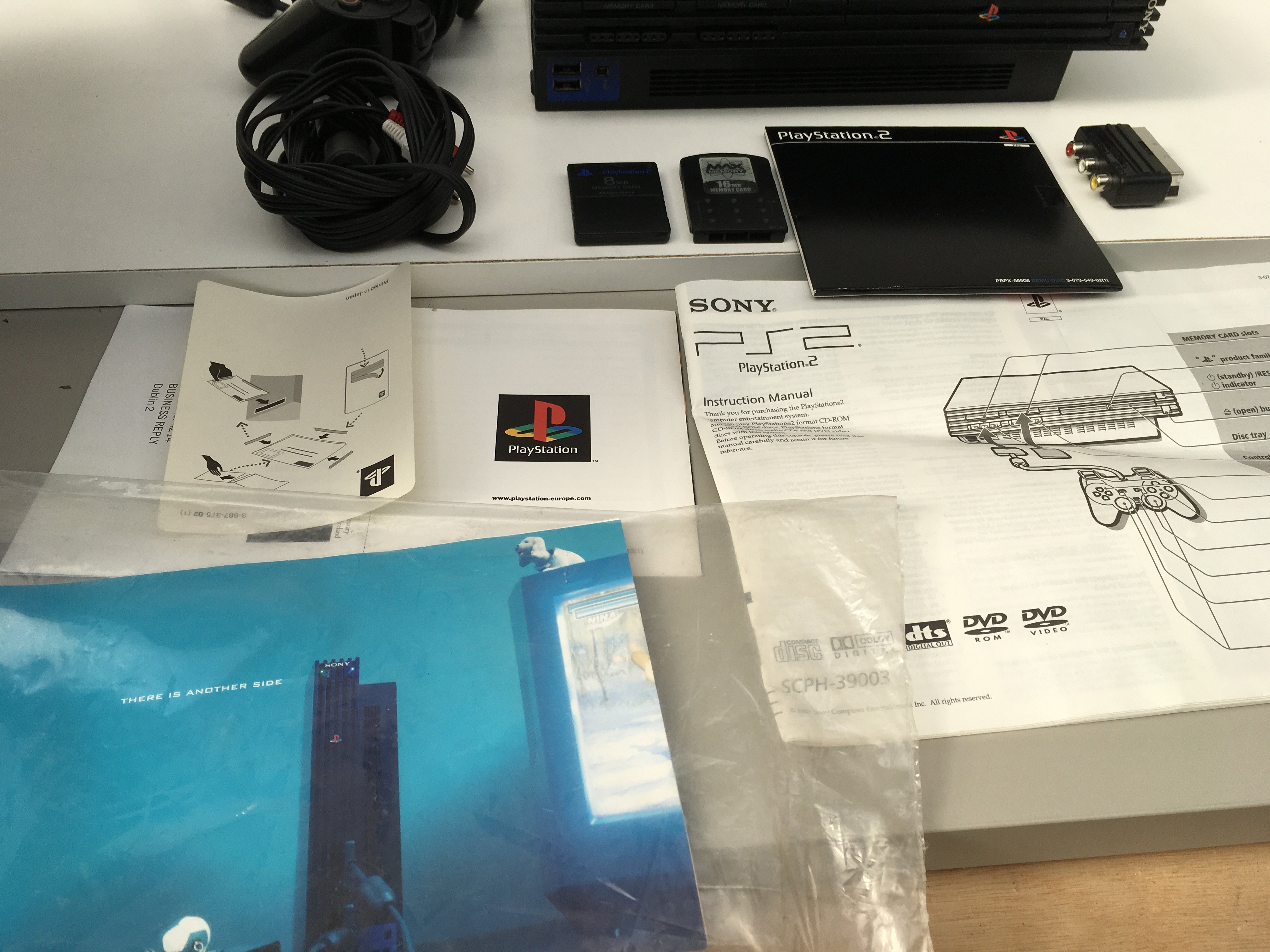A boxed PlayStation 2. PS2. Includes controller..manuals..cable..memory cards and demo disc. No reserve