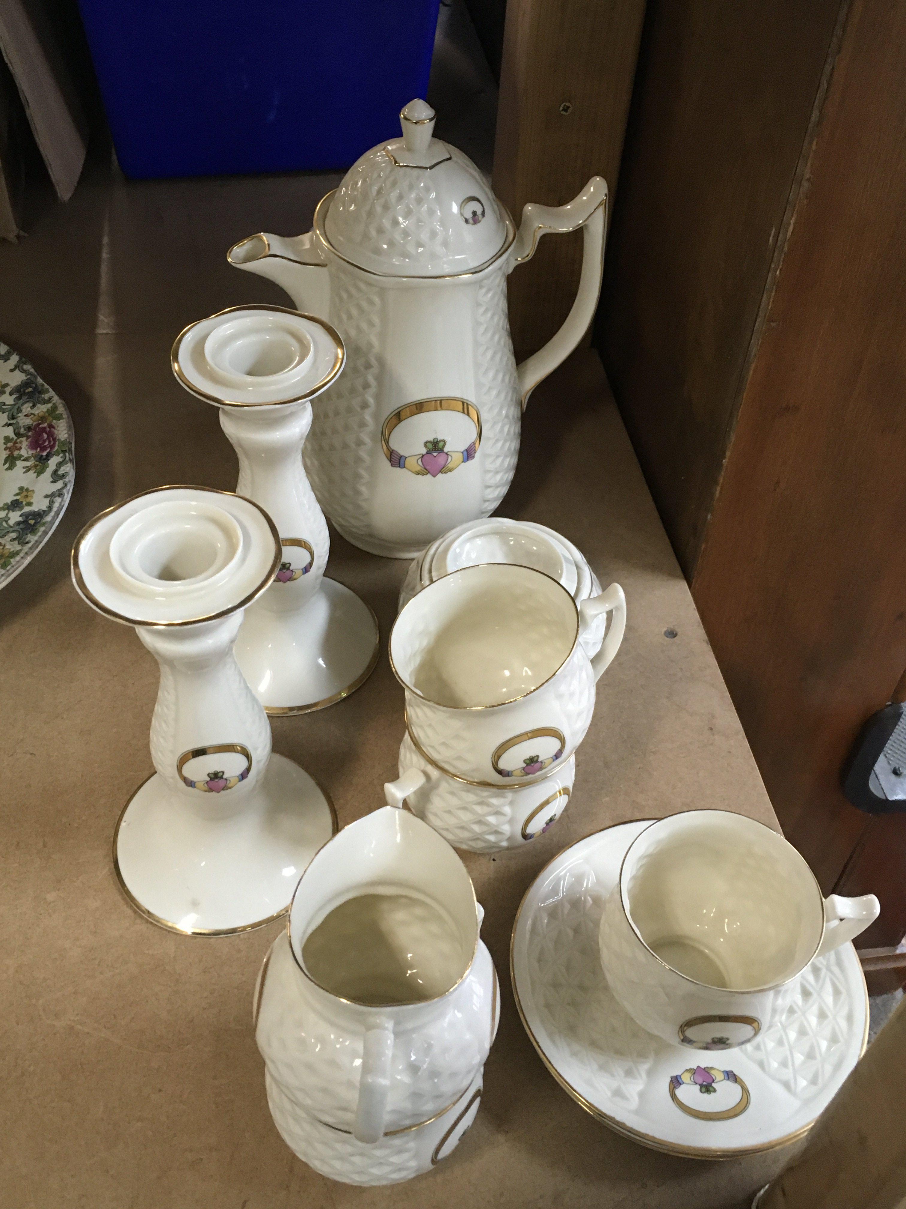 Irish Parian including cups, saucers, candlesticks . This lot cannot be posted. NO RESERVE