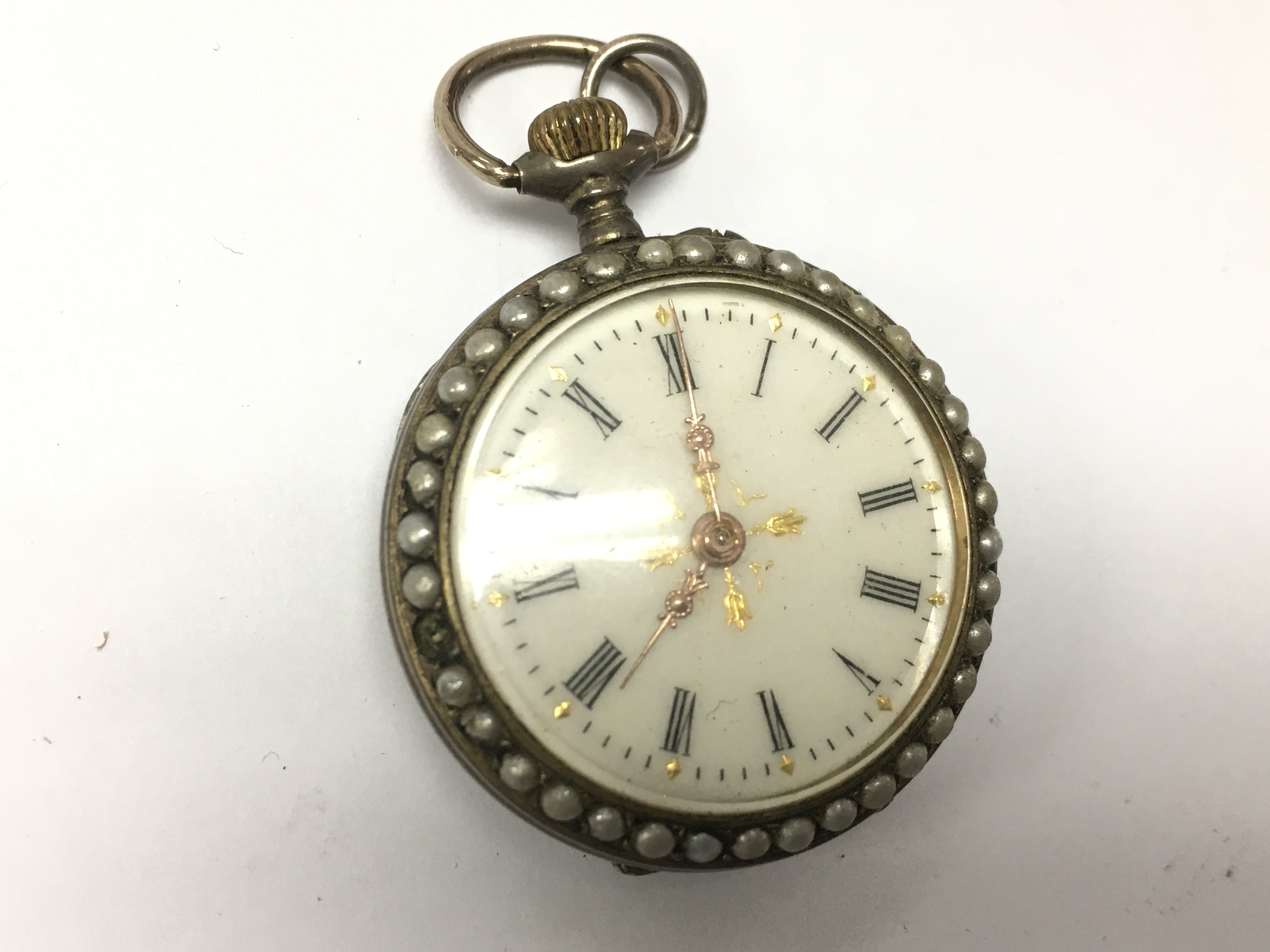A collection of wrist watches, pocket watches including a small silver cased pocket watch with seed pearl design, cufflinks etc