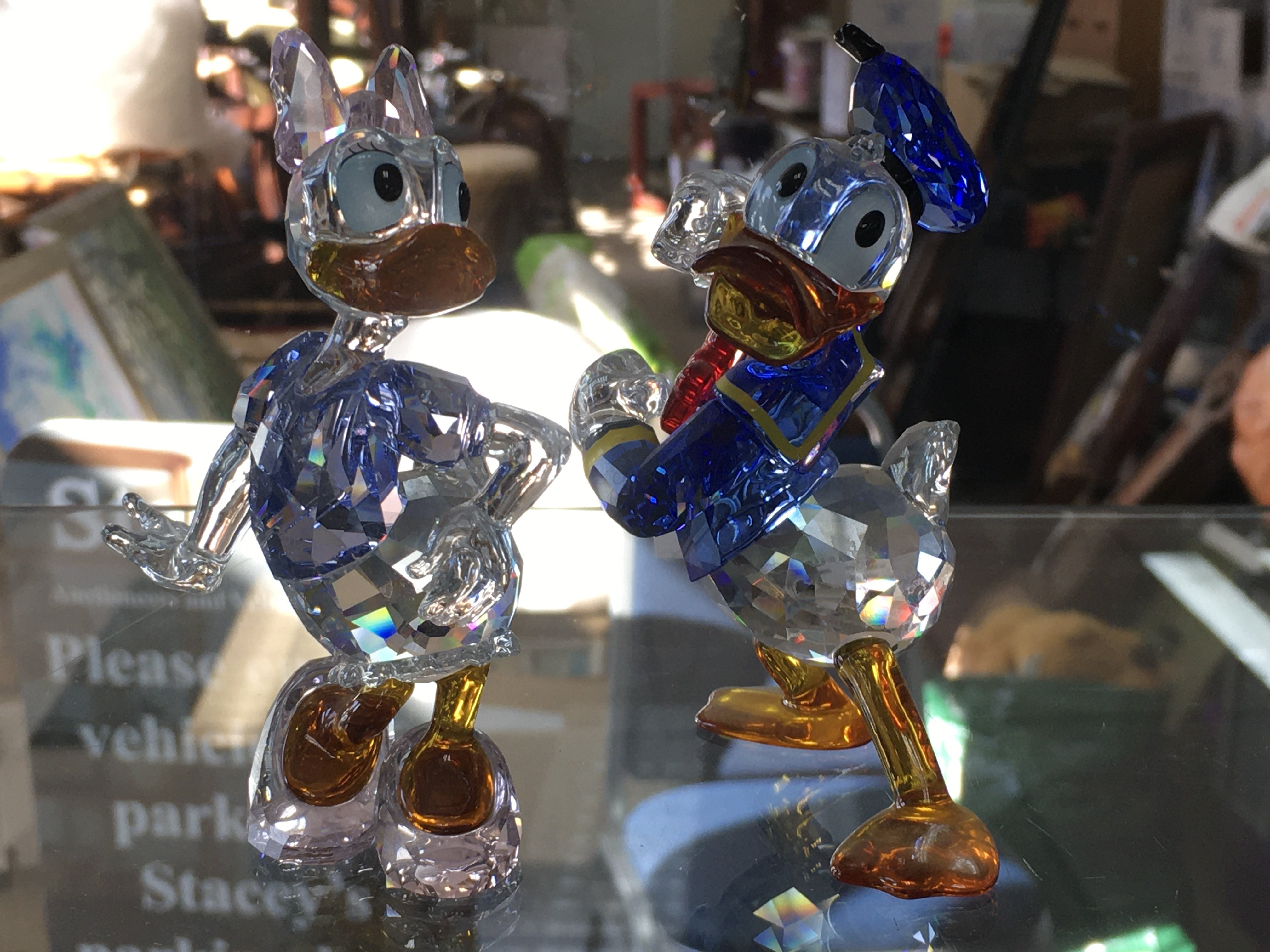 Two Swarovski Disney figures- Donald and Daisy Duck, boxed. No obvious damage or restoration