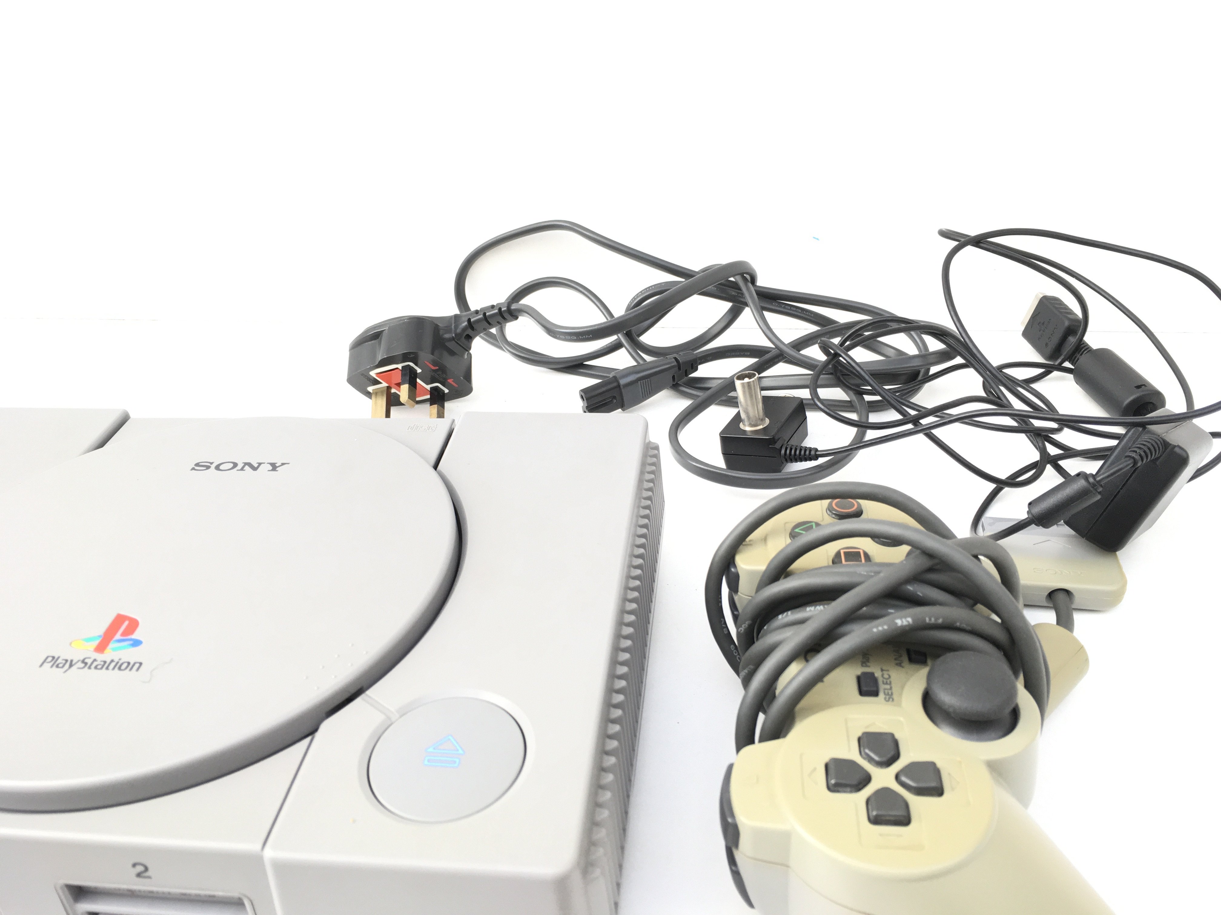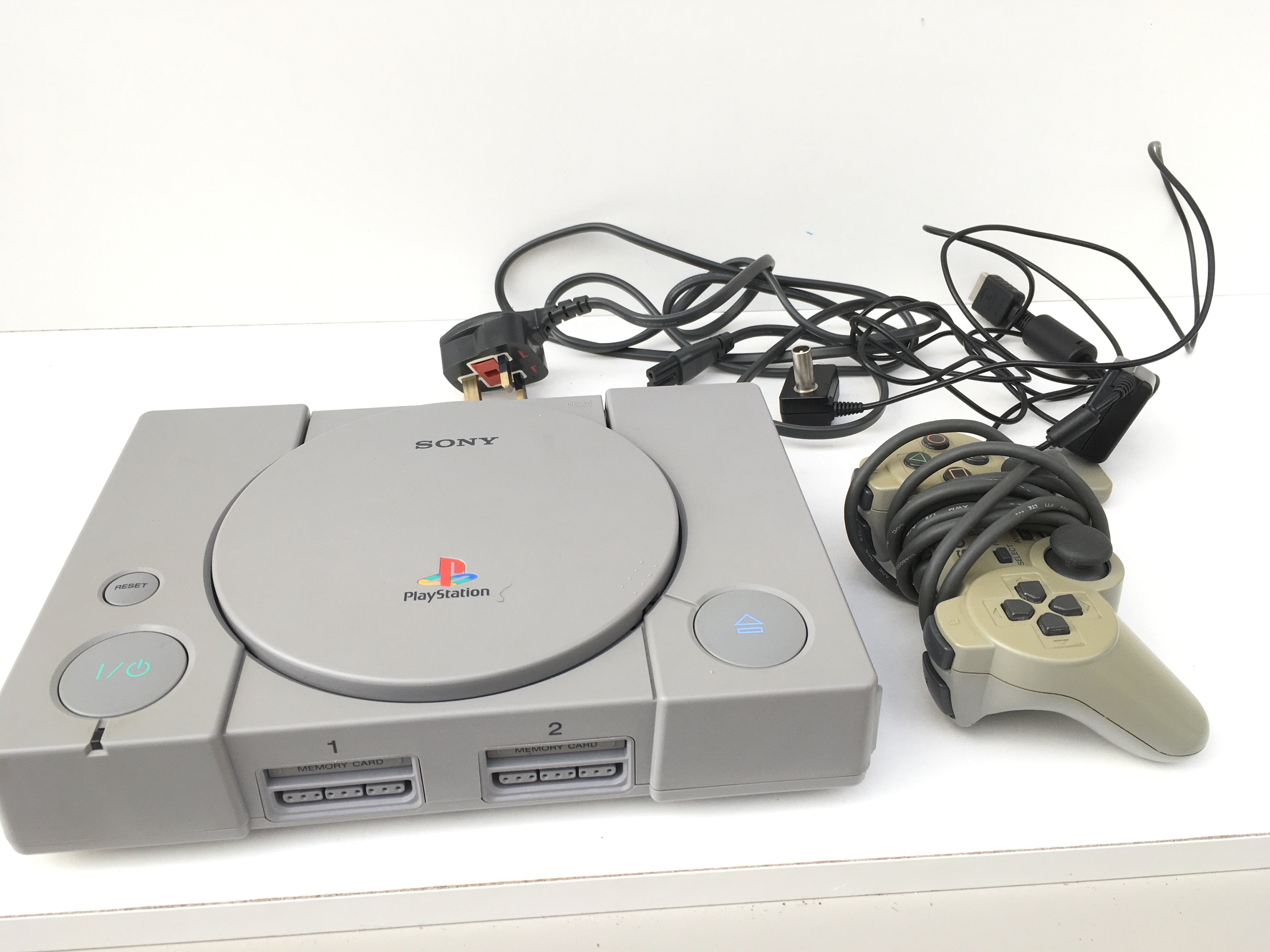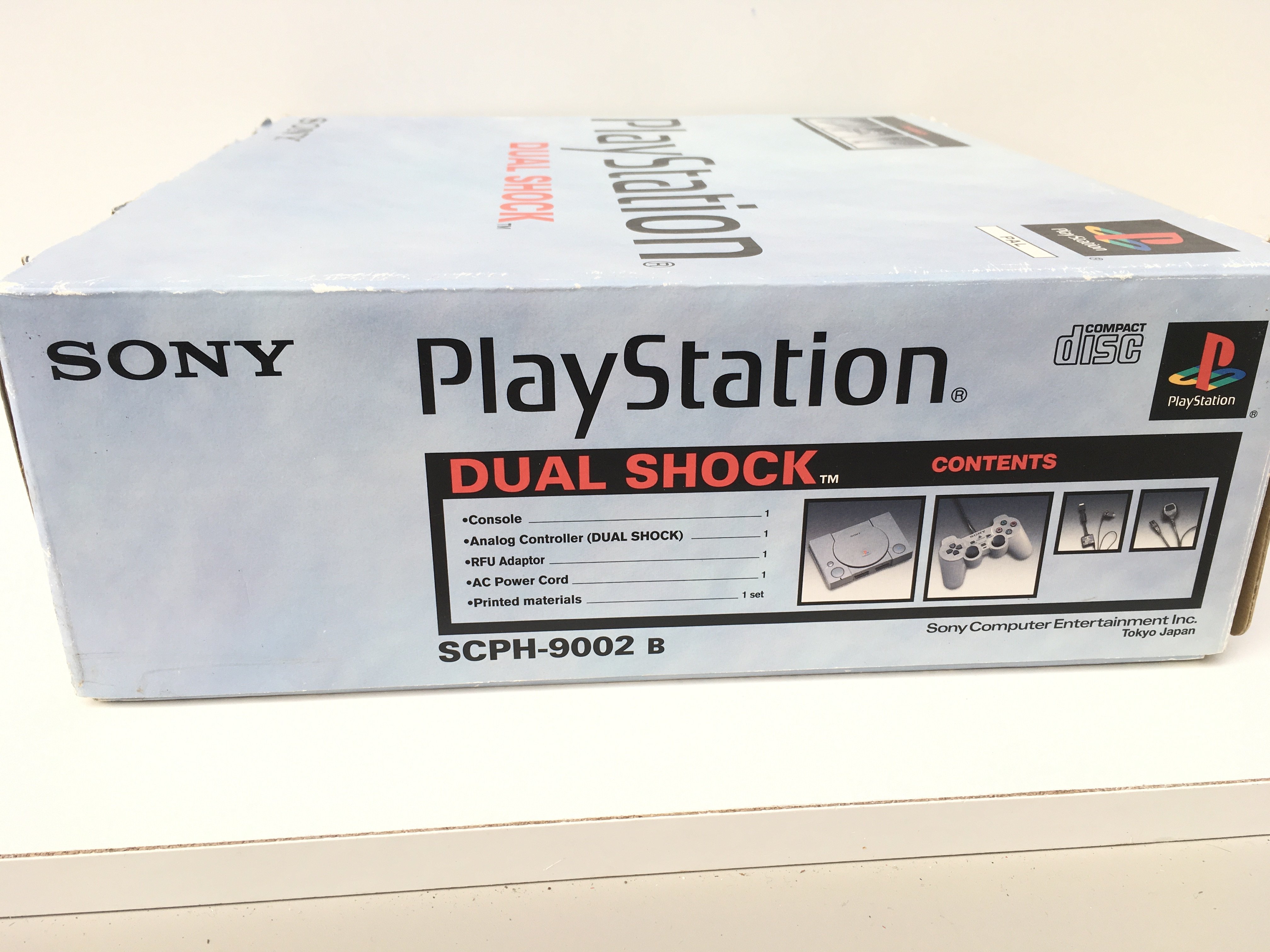 A boxed PlayStation Dual Shock console. Includes controller and cables. No reserve