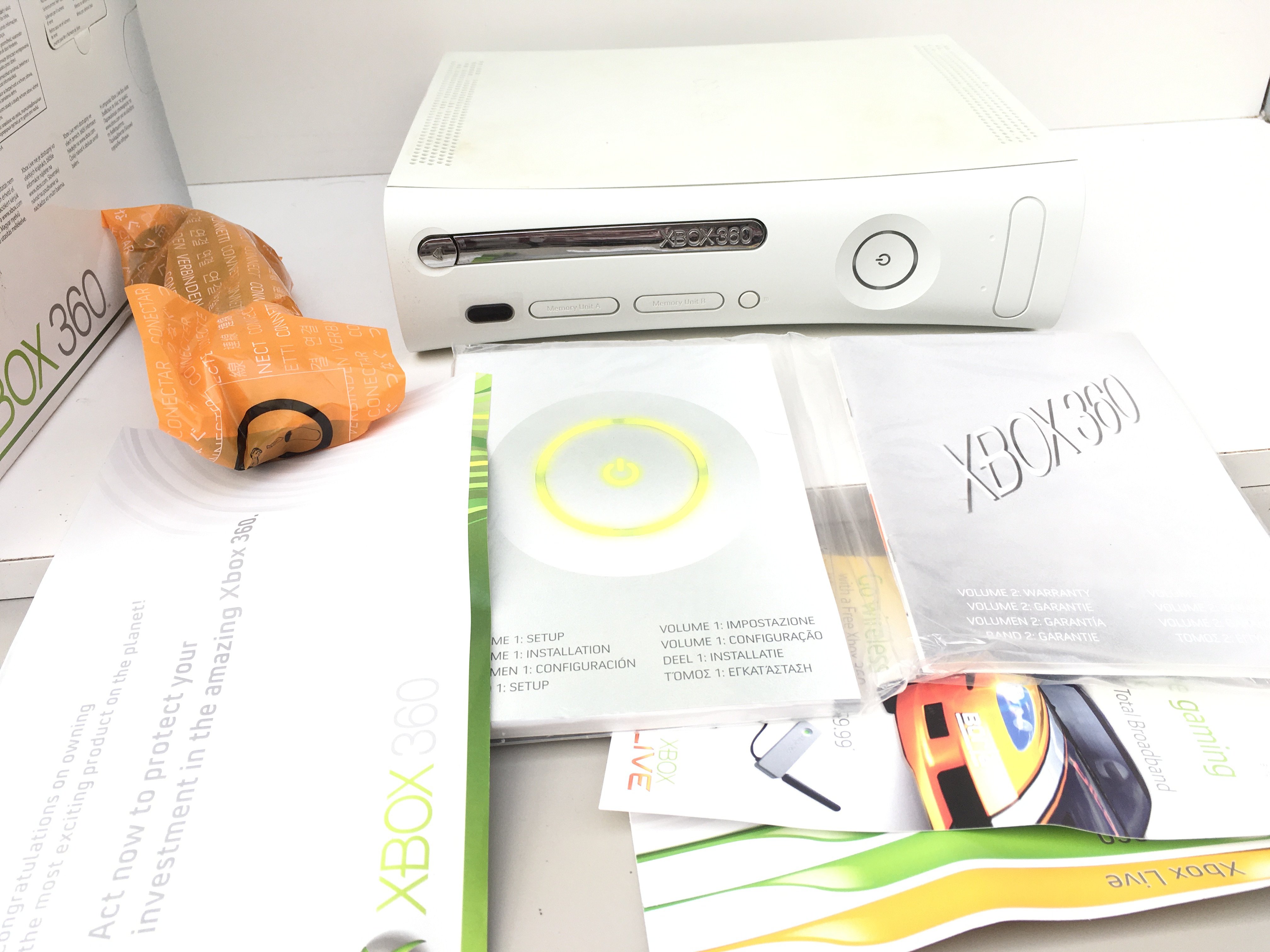 A boxed XBOX 360. Includes manuals and a cable. No reserve
