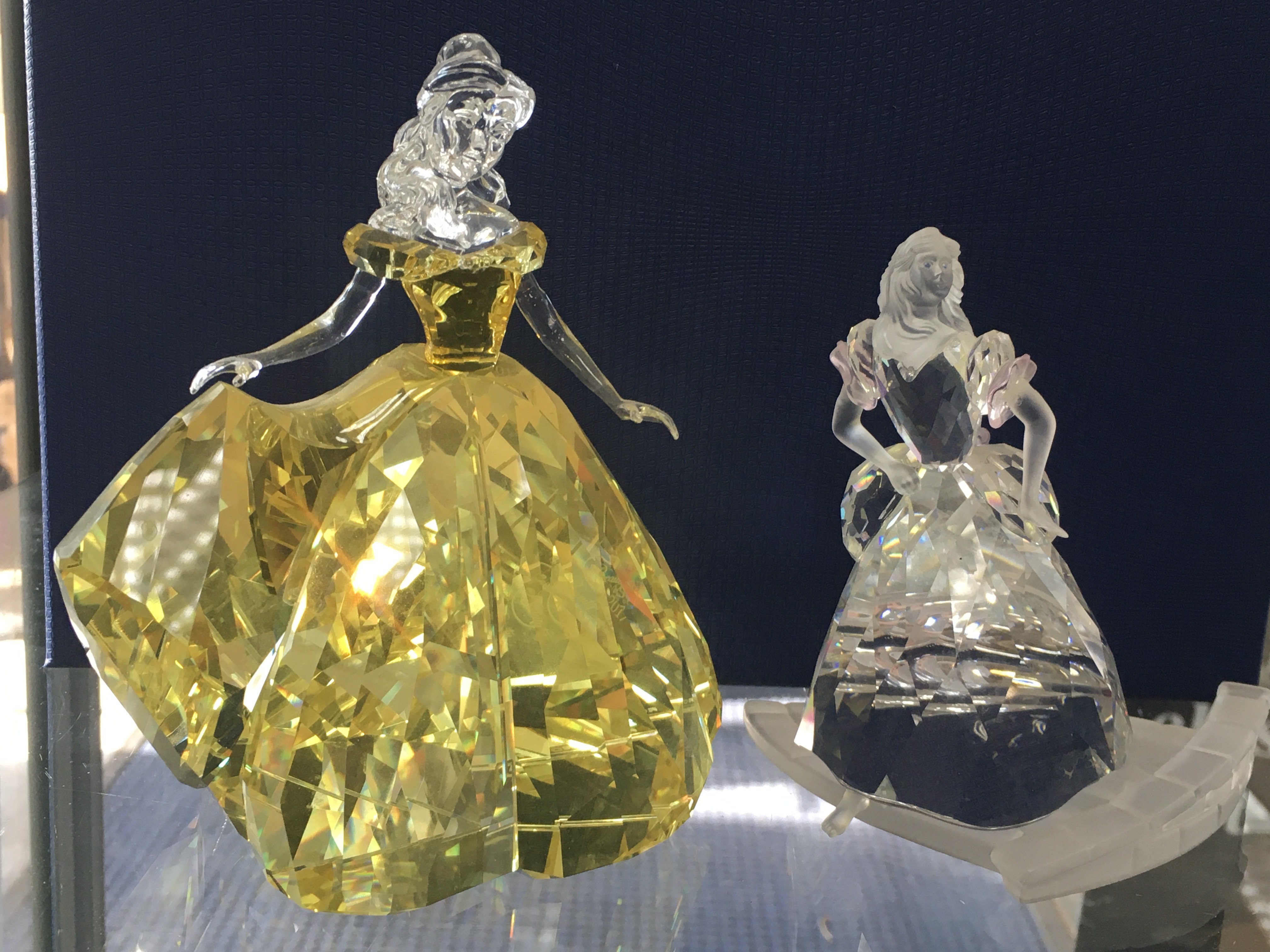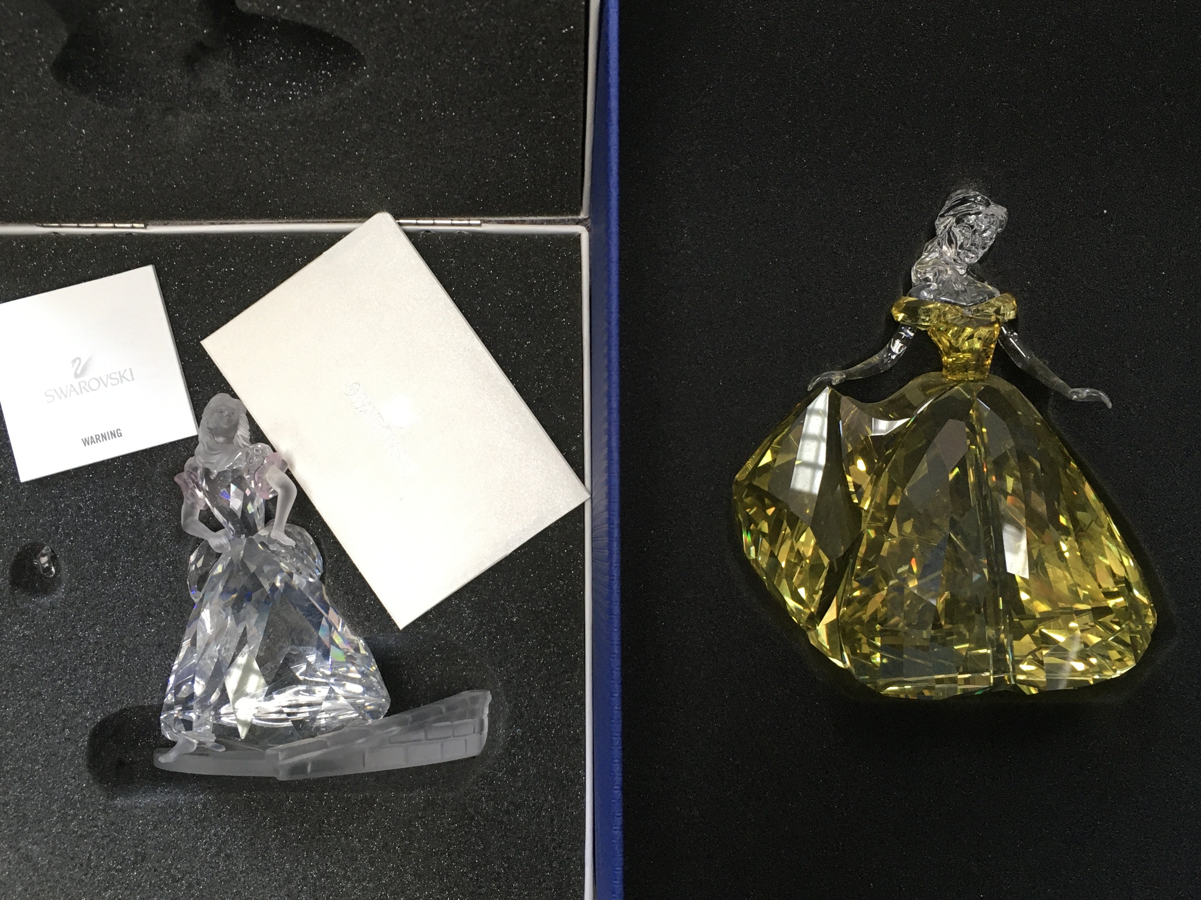Two boxed Swarovski Disney figures- Cinderella and Belle, together with a certificate of authenticity. No obvious damage or restoration