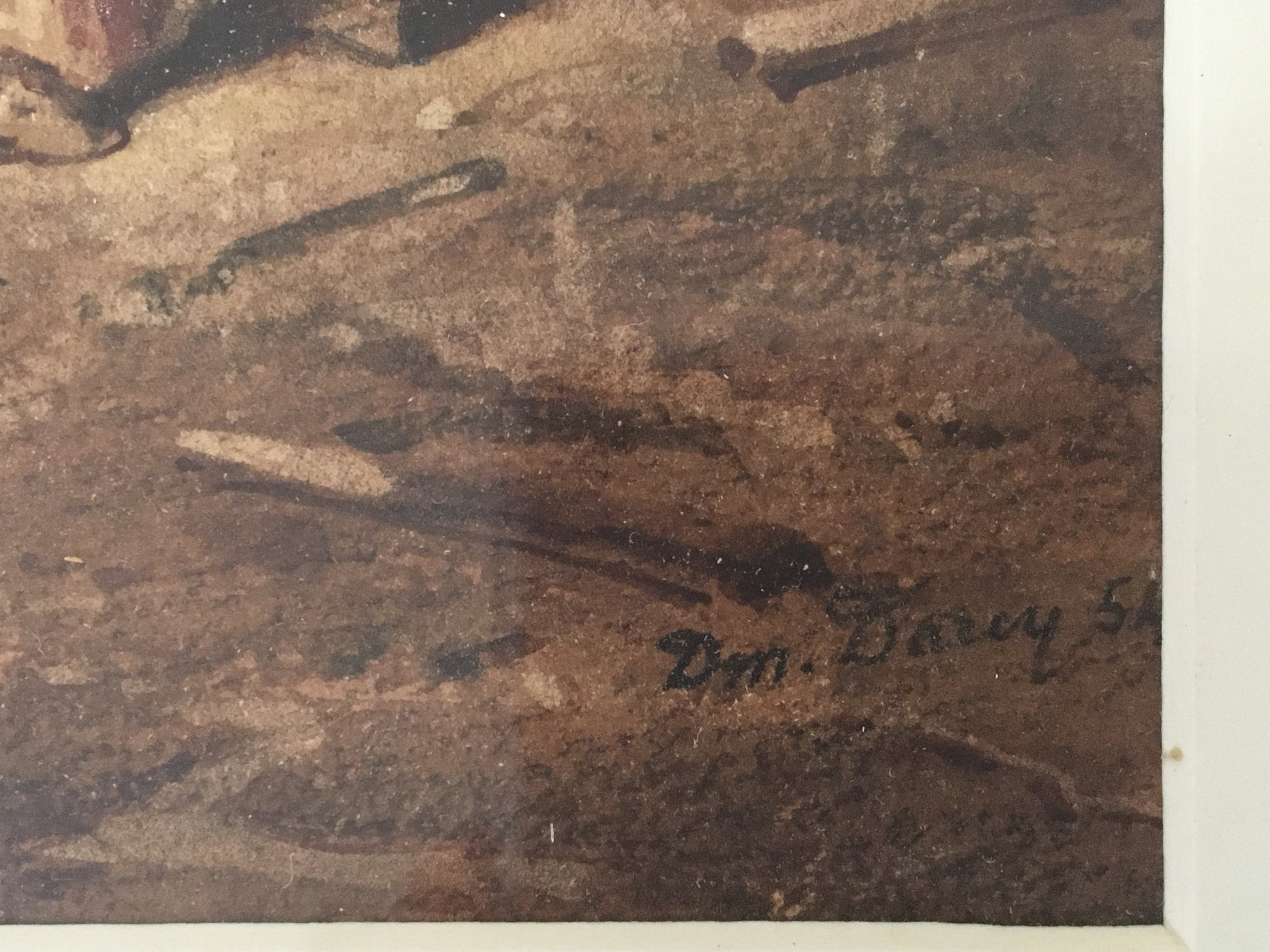 A 19th century later framed watercolour depicting figures by a doorway With a horse. Signed lower right. NO RESERVE