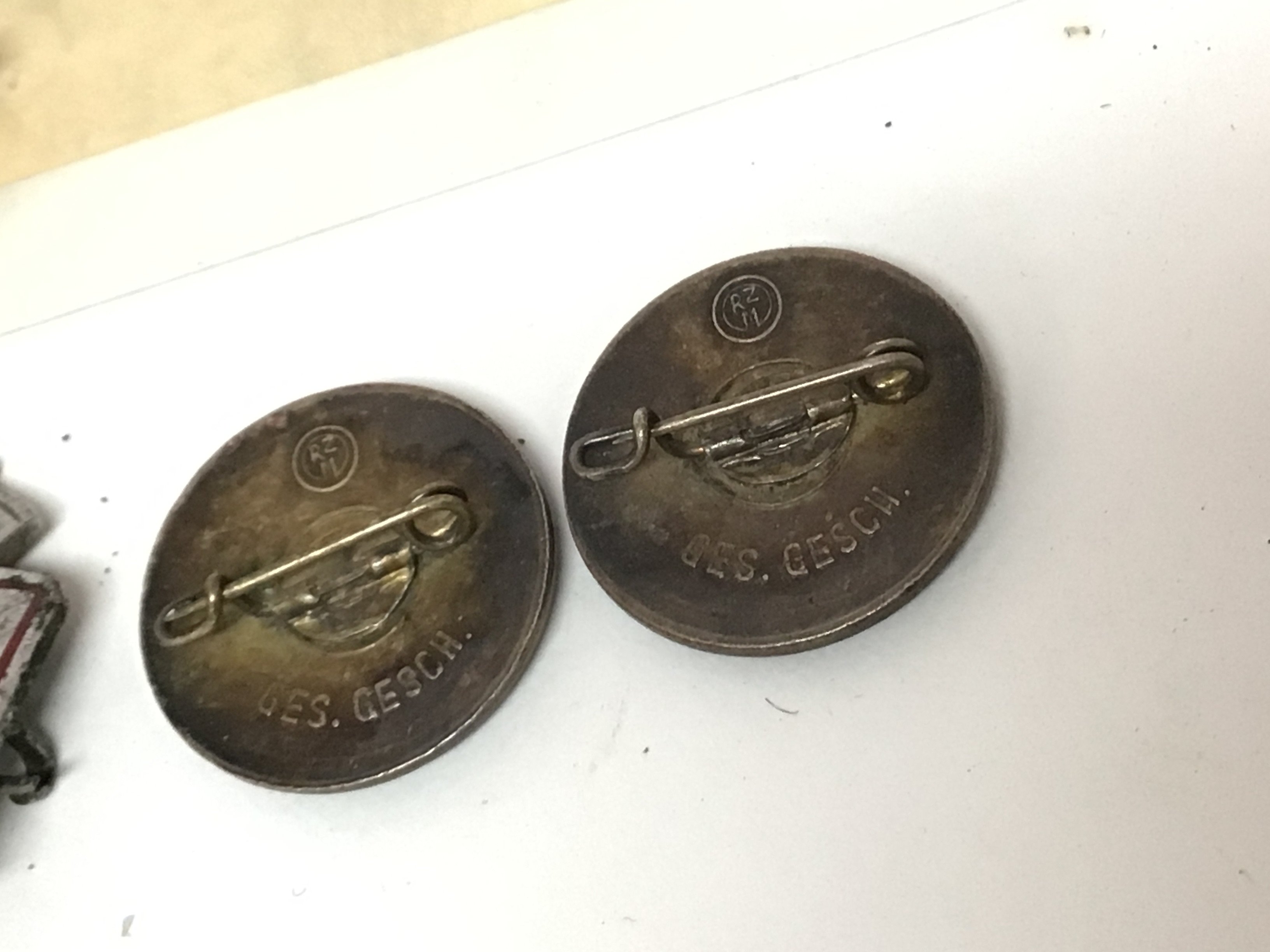 A I world war medal awarded to 153726 GNR A L Hounson RA with copy portrait photograph. Two German Third Reich Political party enamel badges one dated 1933 makers marks Rzm a Suffolk regiment badge and Civil Defence badge.