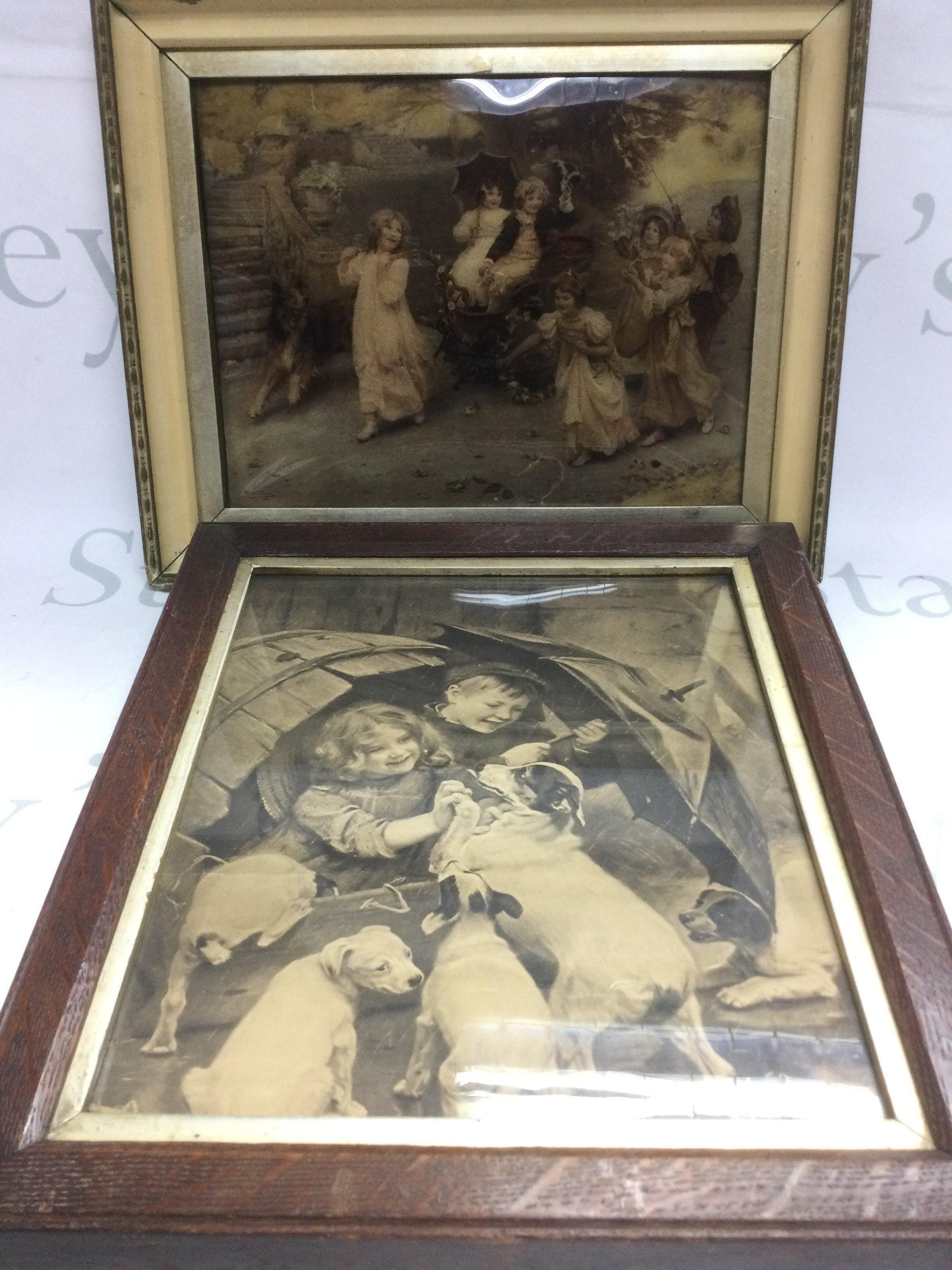 A framed crystalline picture of Victorian children at play plus two others (3). Shipping category D. NO RESERVE