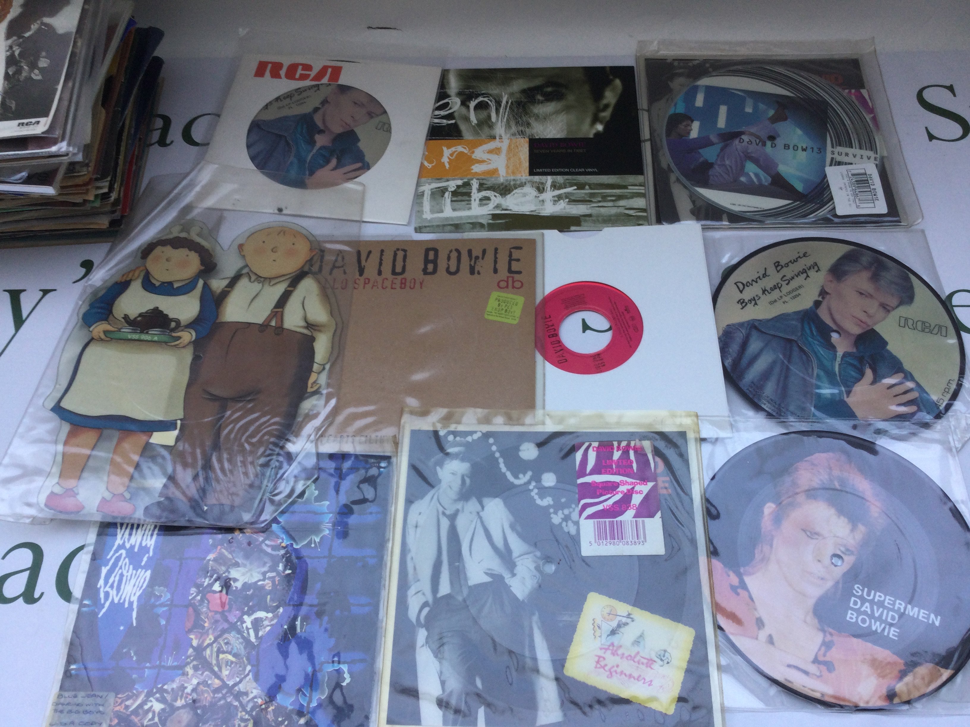 A collection of David Bowie 7" singles including foreign pressings, picture discs and coloured vinyl.