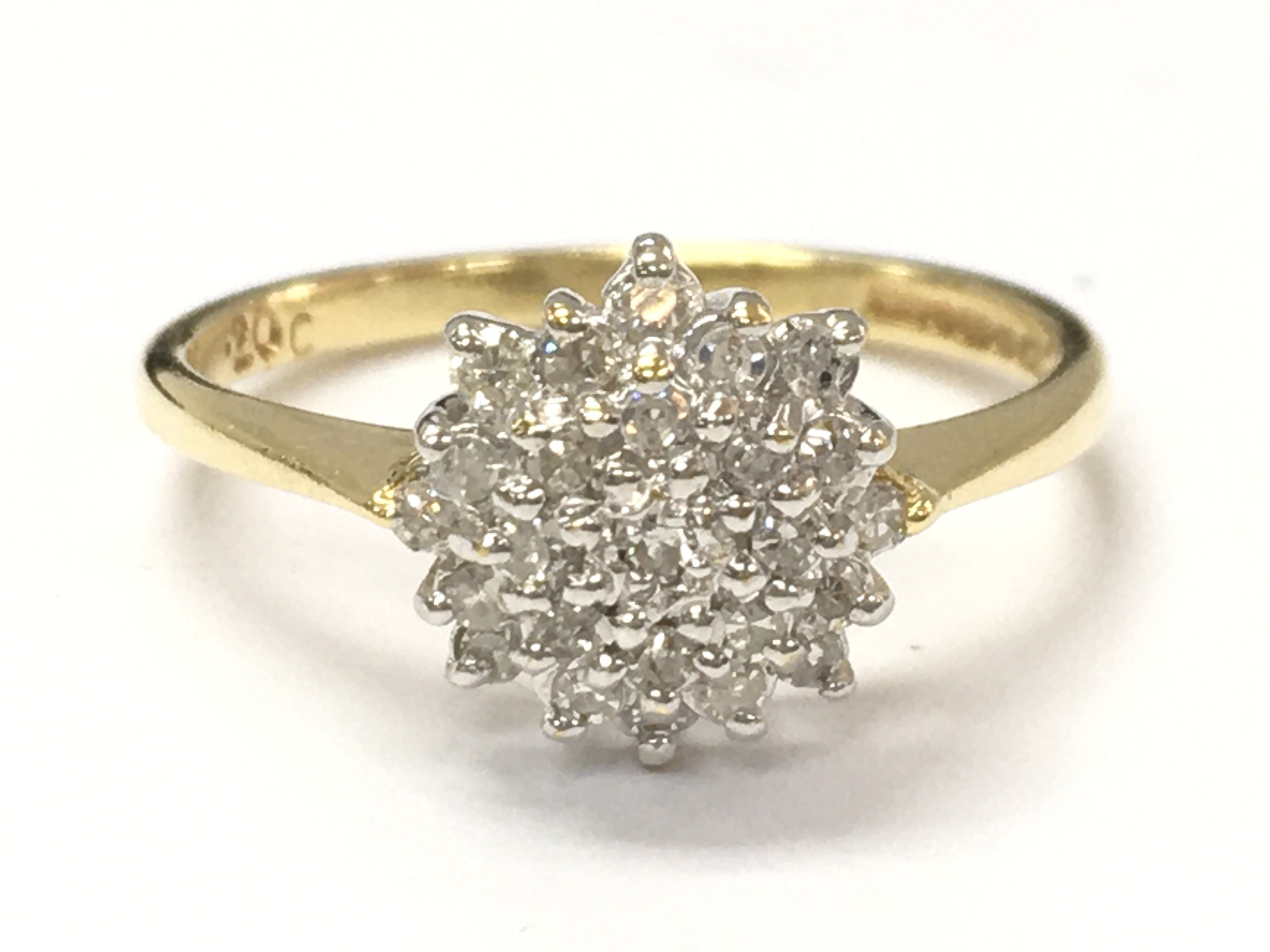 An 18ct gold diamond cluster ring , 3.3g. Size M. Postage category A
