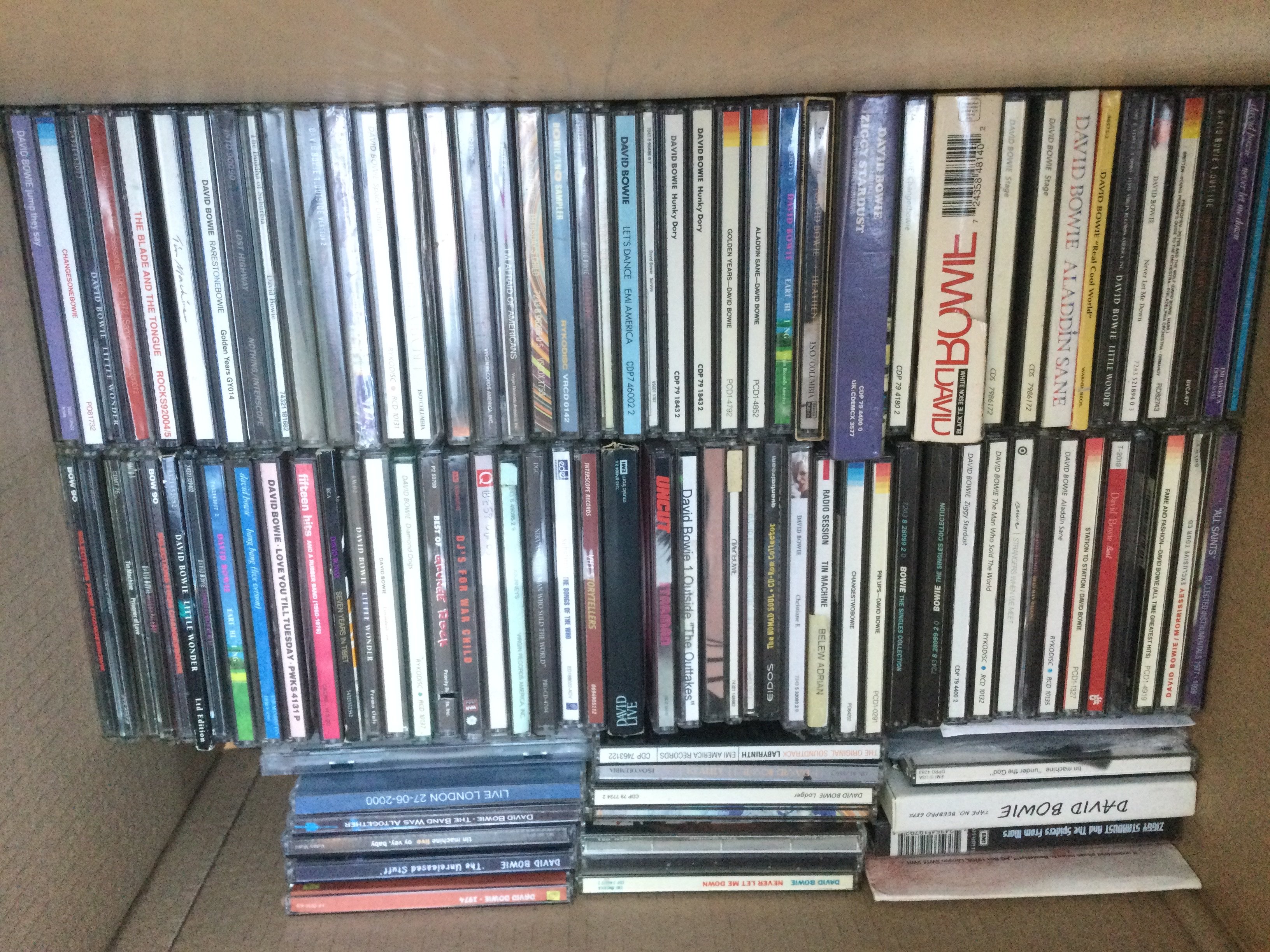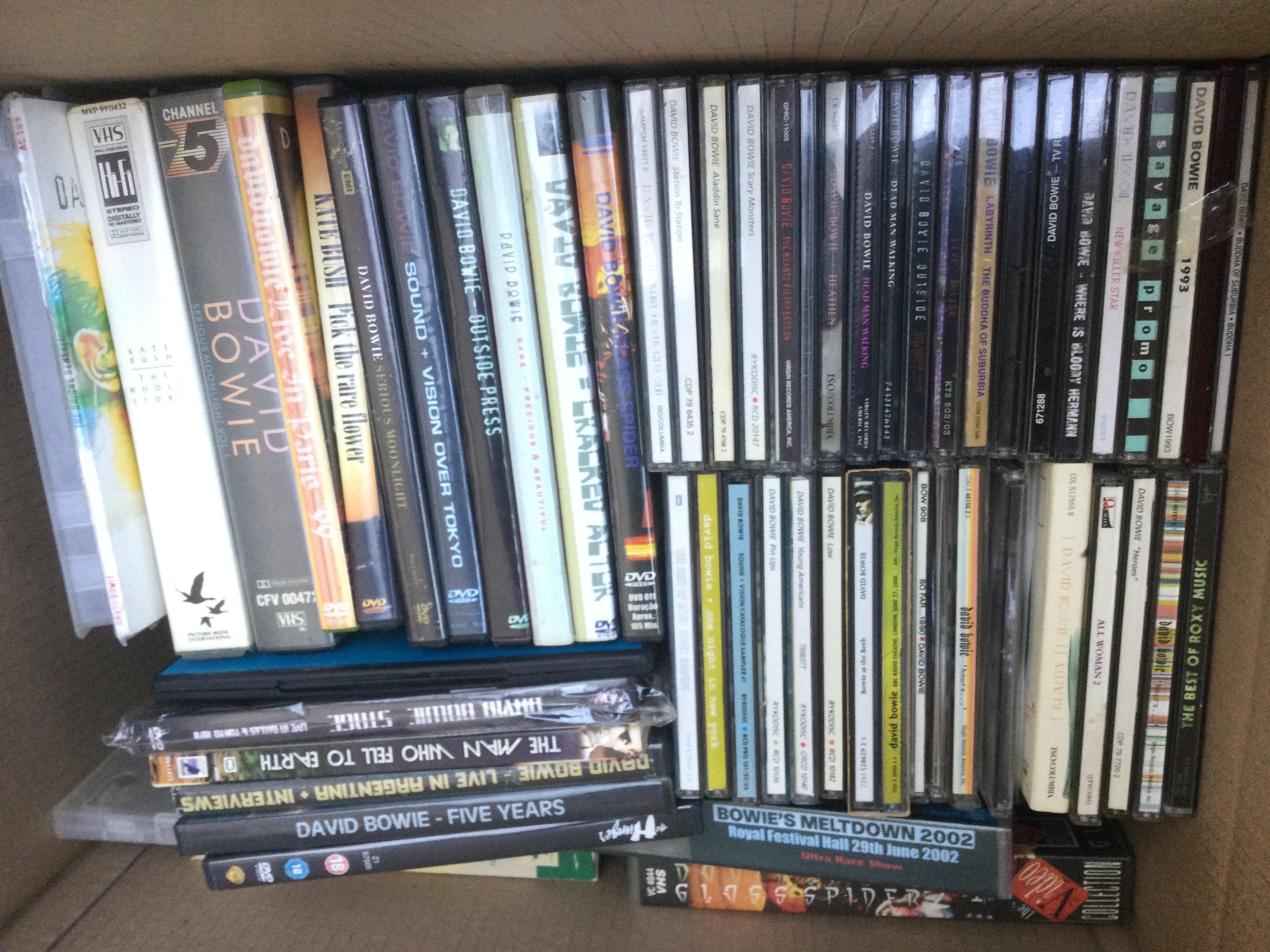 A box of mainly David Bowie CDs and DVDs including Japanese imports.