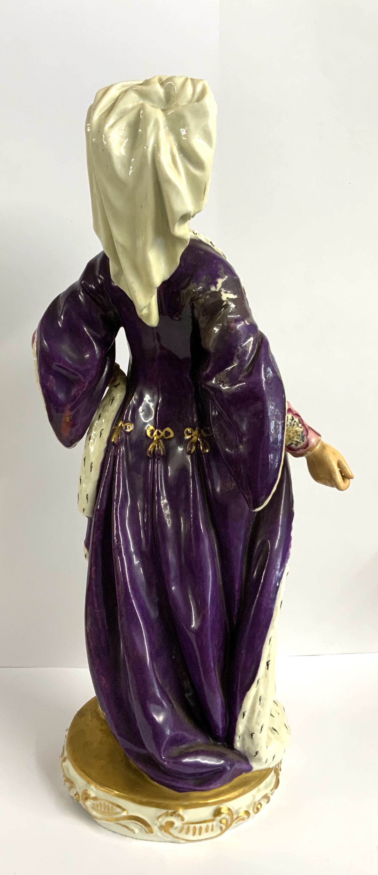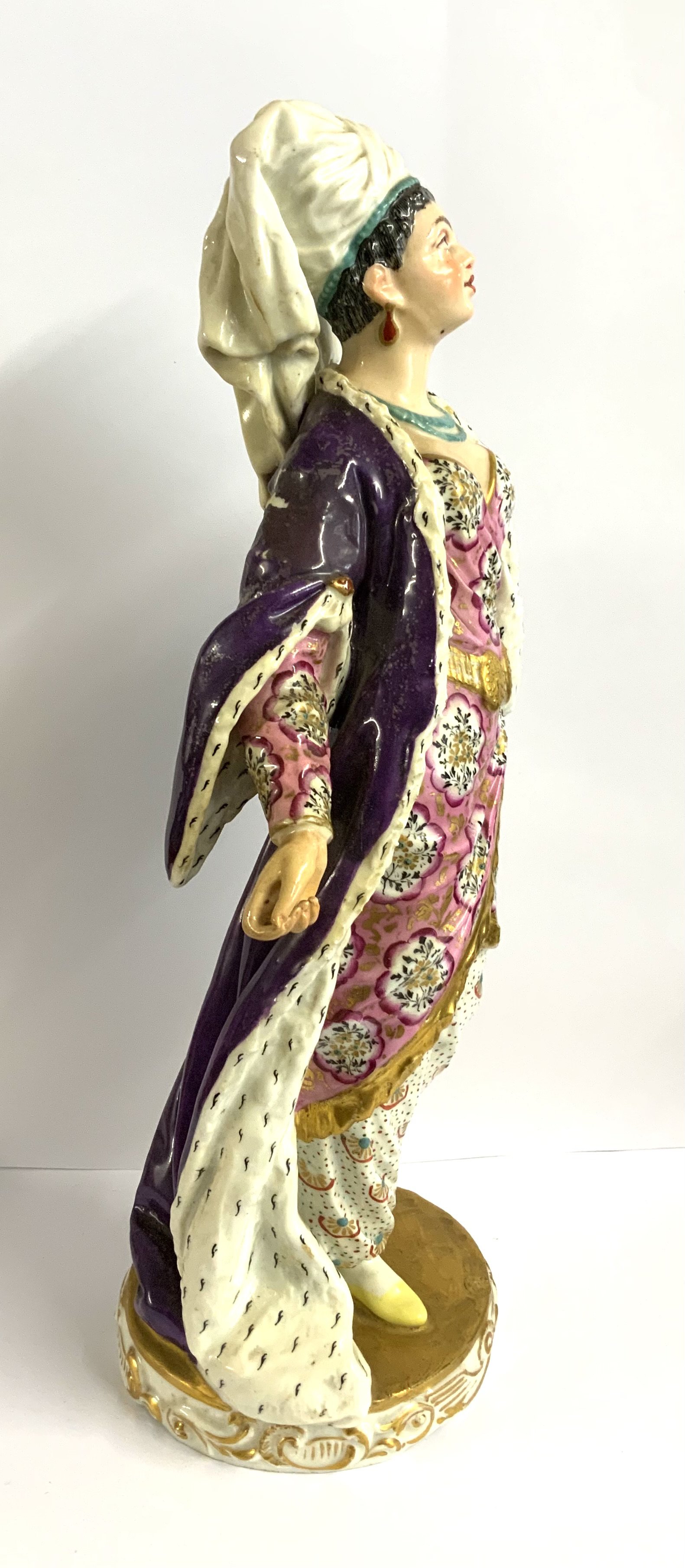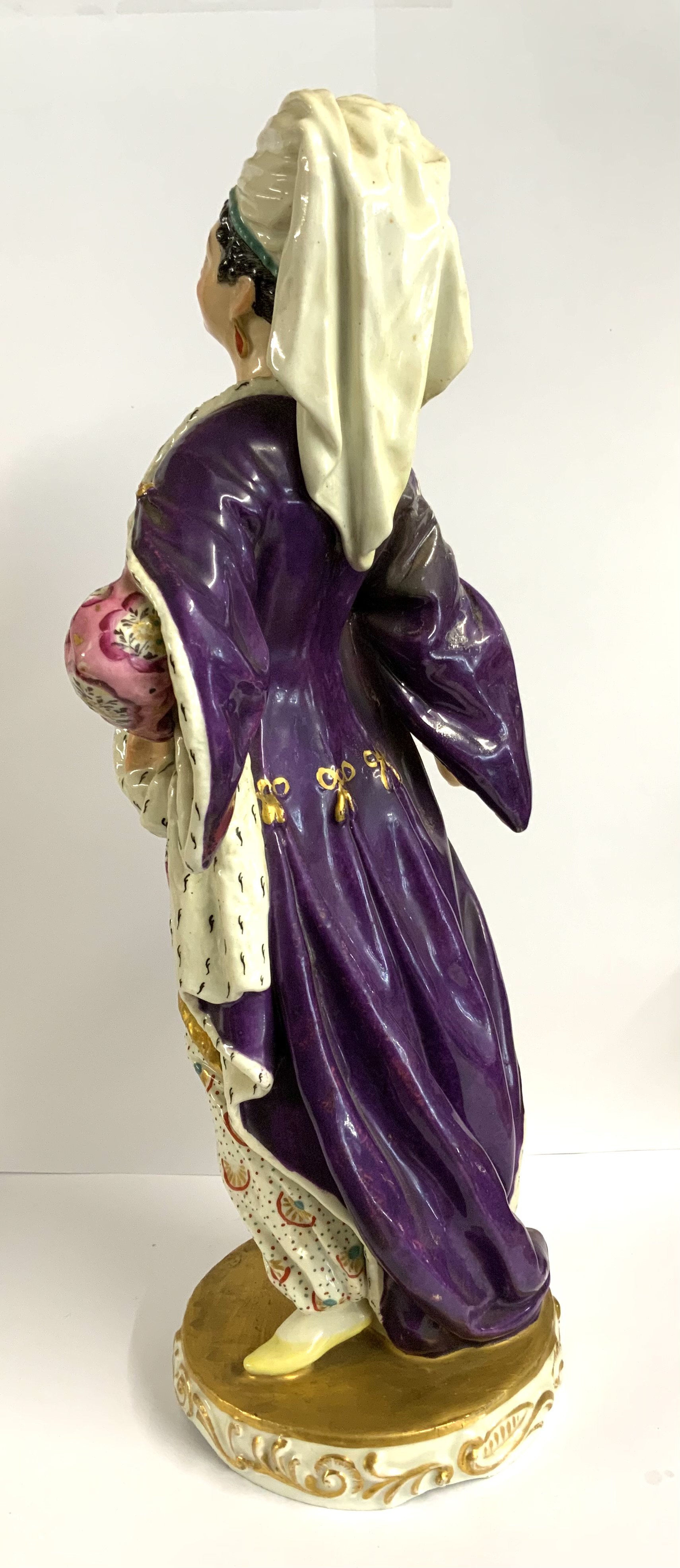 A rare large porcelain figure of an eastern lady with Derby porcelain marks, 34.5cm. (D) this figure is mentioned in by J.Twitchett p.71 in a group of 18. Dates 1830-1847. Neales 1985 Alma country house sale.