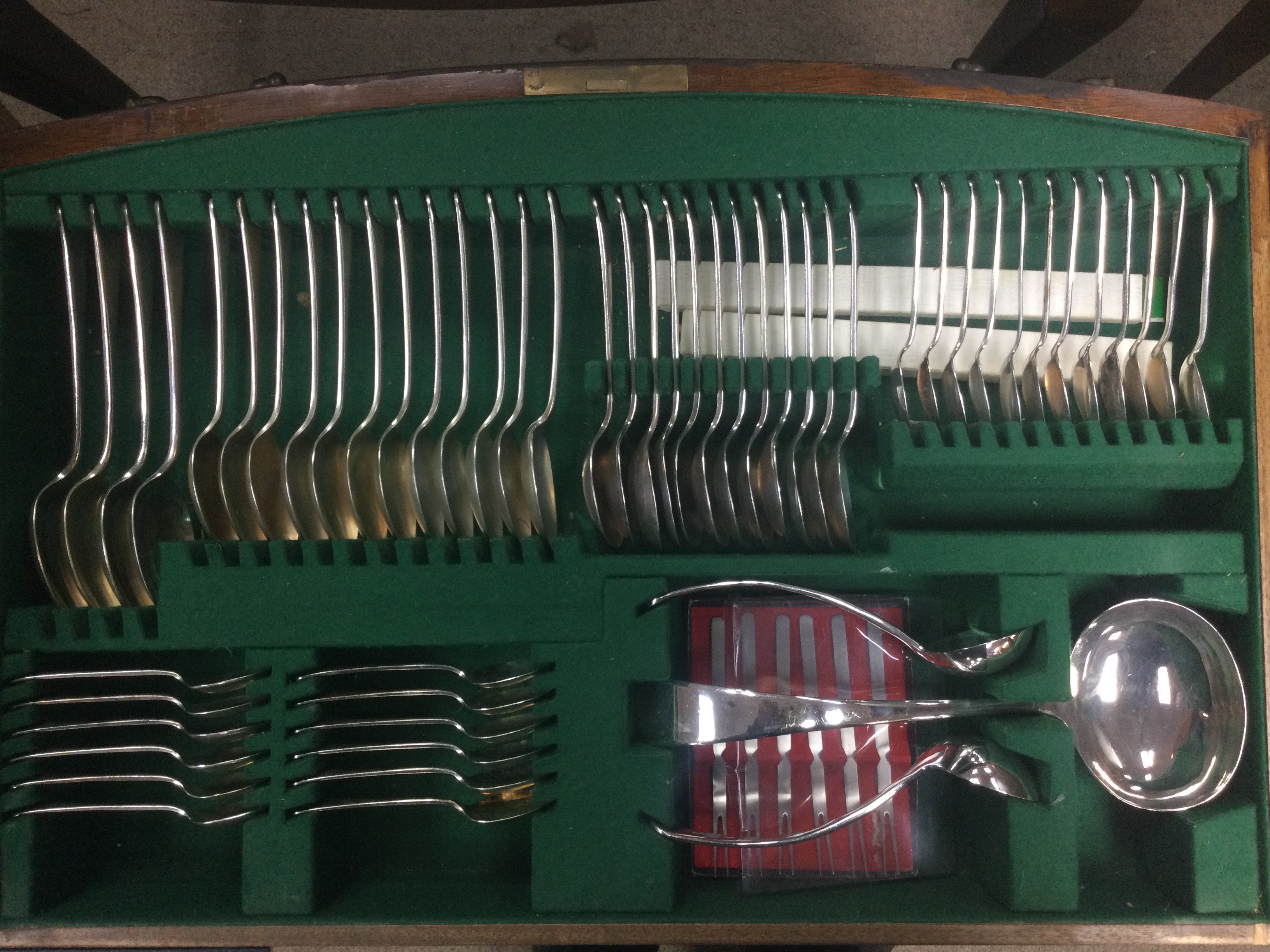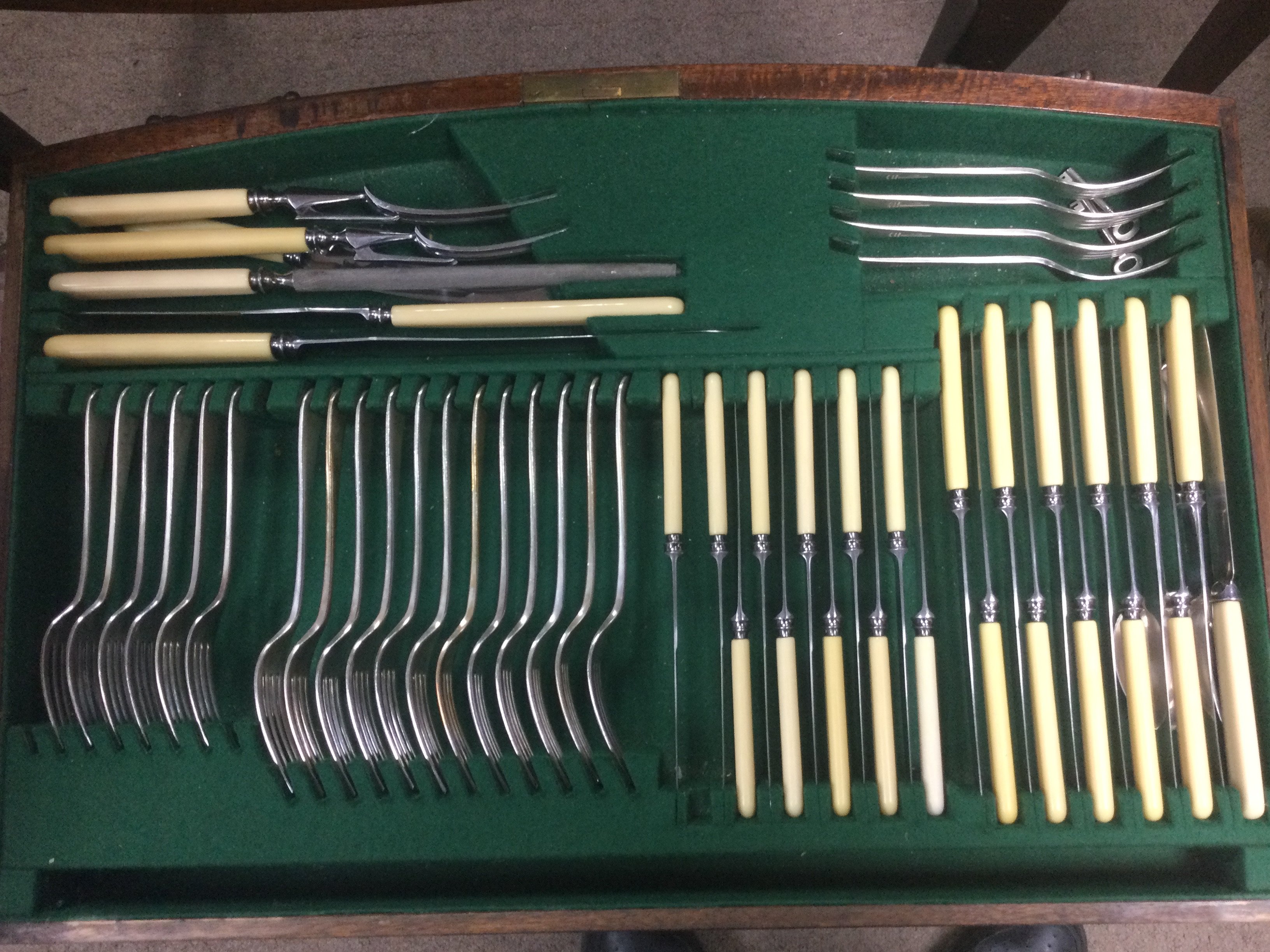A cutlery table including Sheffield plate cutlery. Dimensions 45x70x74cm