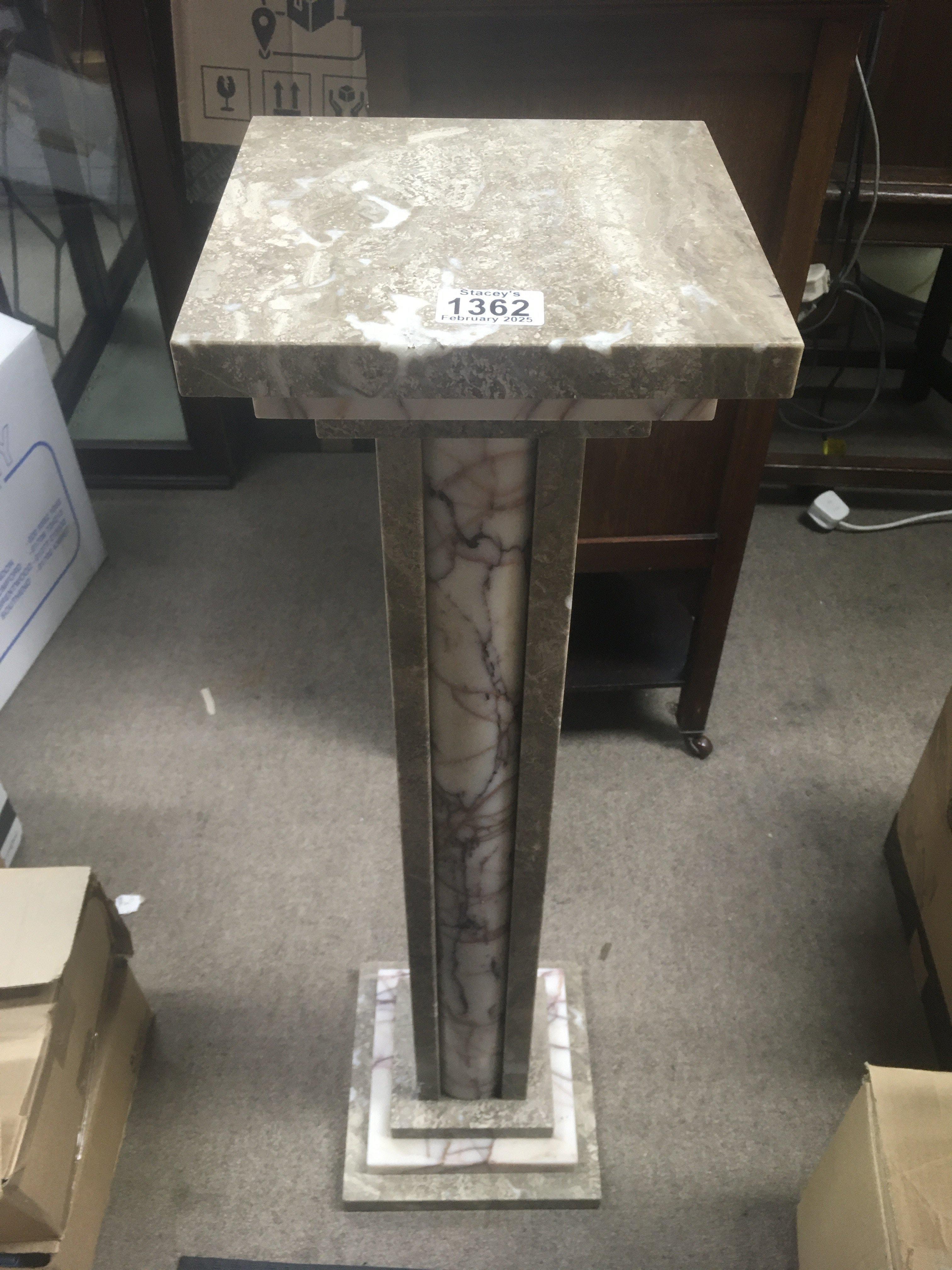 An Art Deco black and white marble pedestal. Approx 81 cm tall.