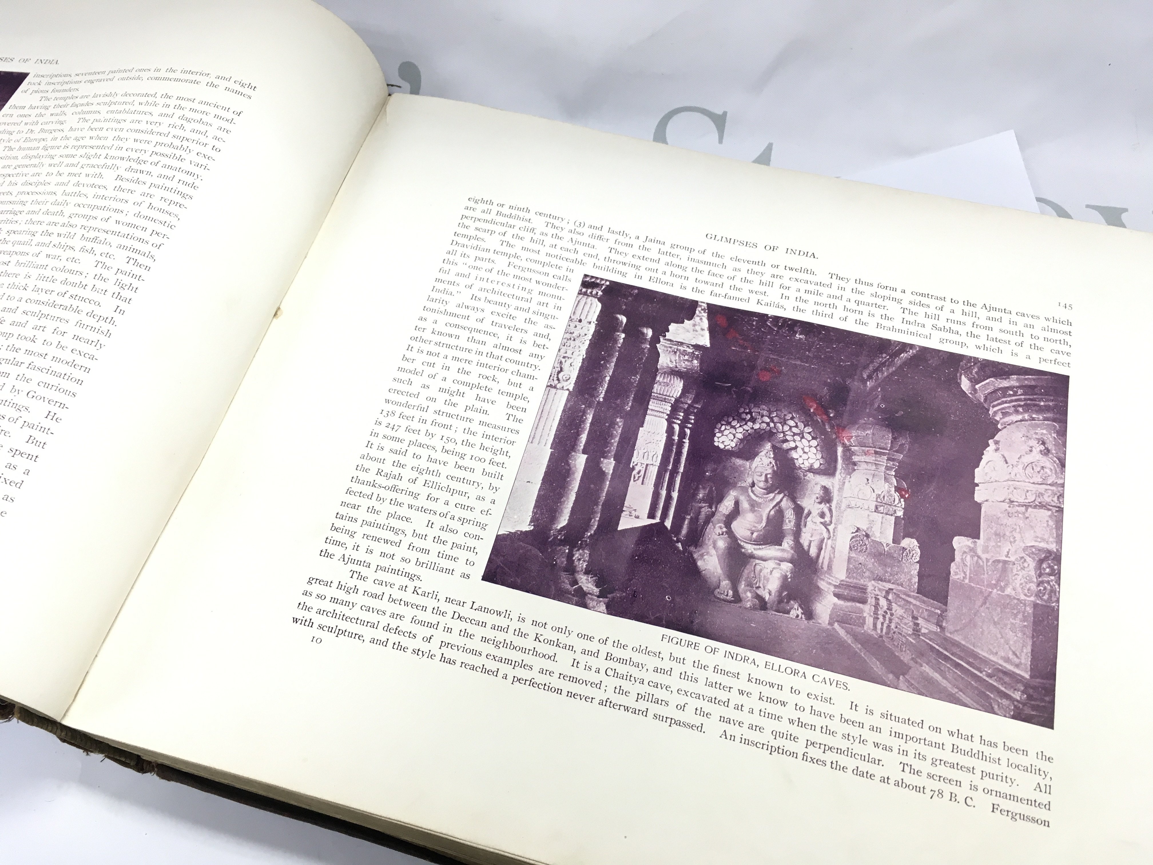 A vintage Glimpses of India book, a grand photographic history of the land of Antiquity, the vast Empire of the East with 500 superbly reproduced cameras views of her cities, temples, towers etc. made by Historical Publishing Company Published by C.B Burrows .postage category C. NO RESERVE