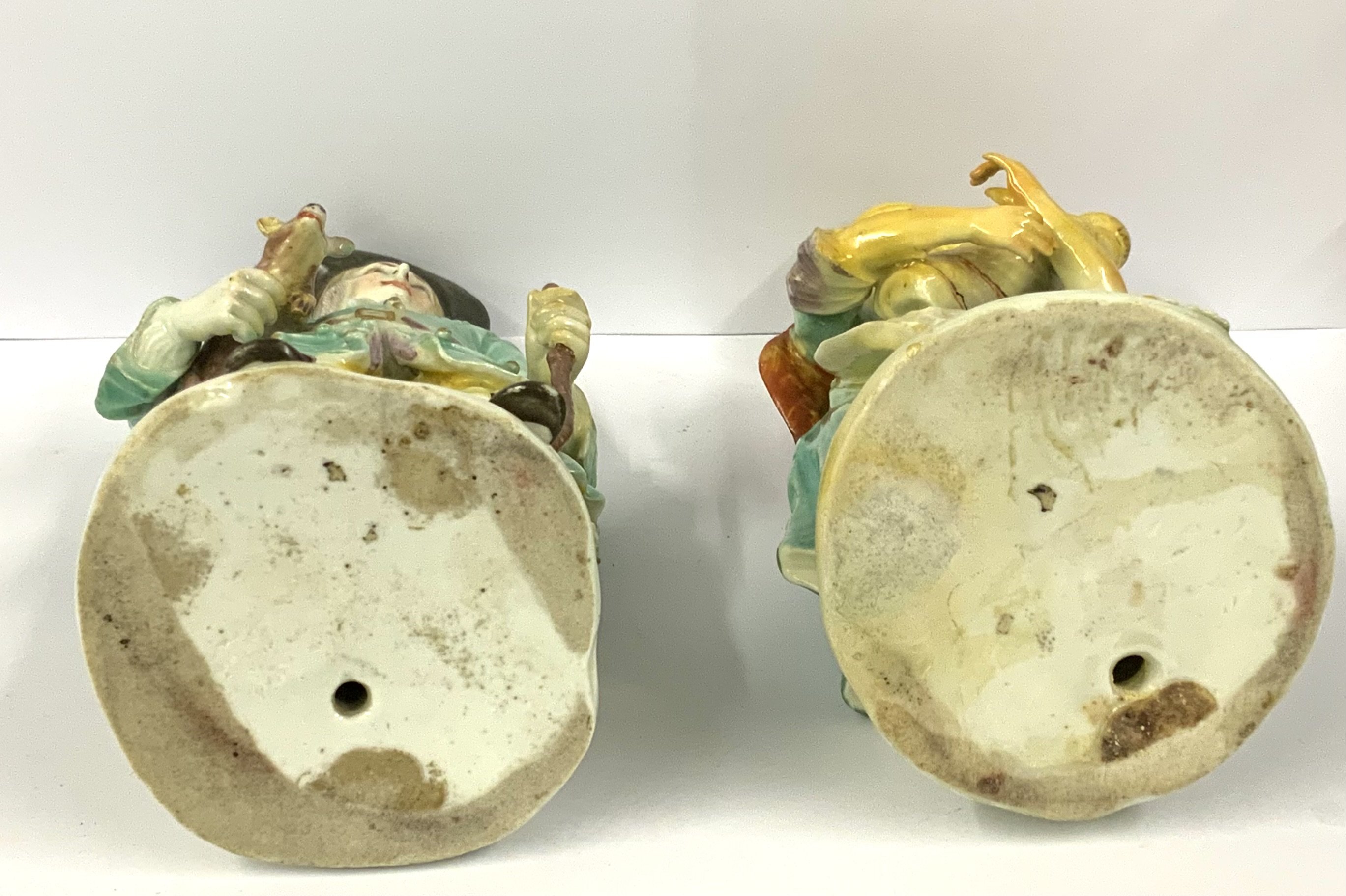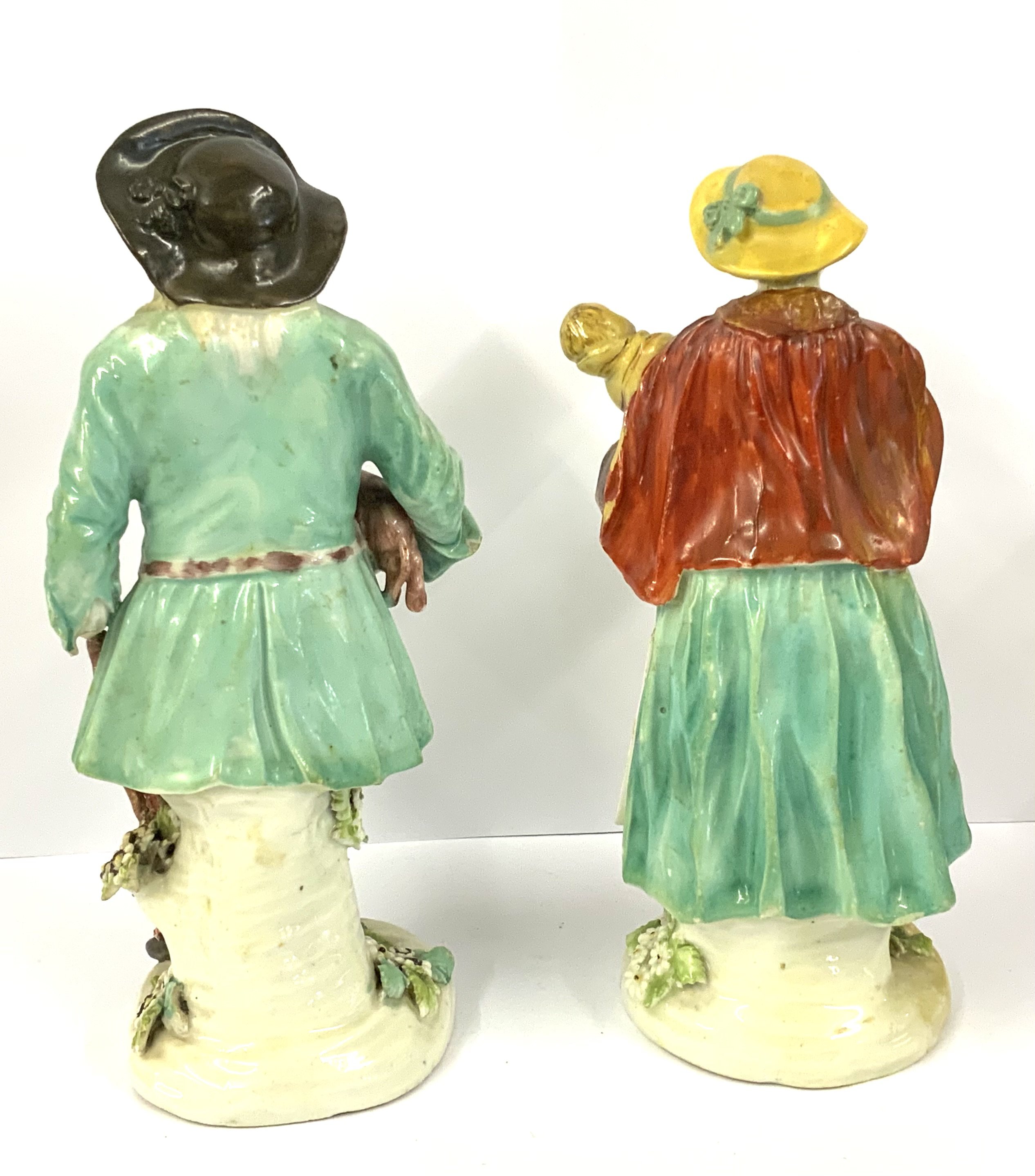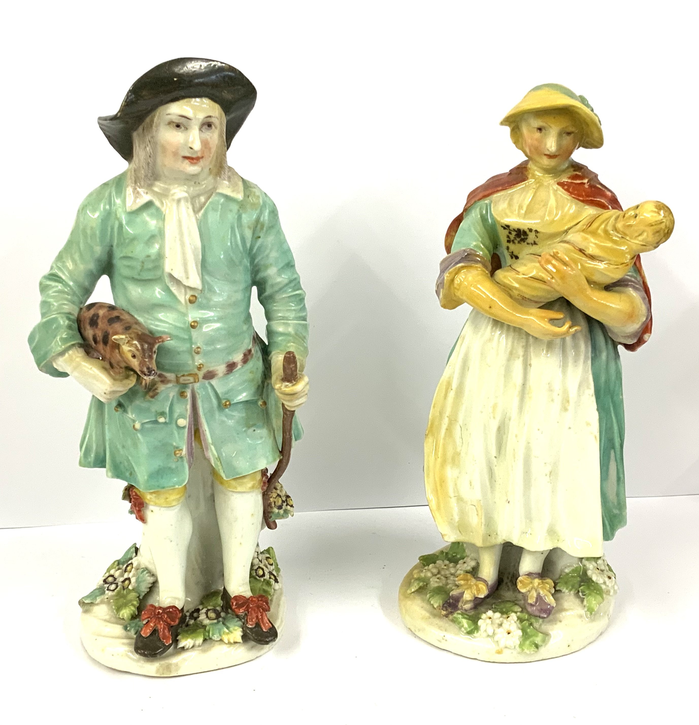 WITHDRAWN - (THESE ARE PART OF LOT 1146) A pair of Derby Tithe Pig figures, The farmer wearing holding a pig and walking stick his wife holding a baby. (D).